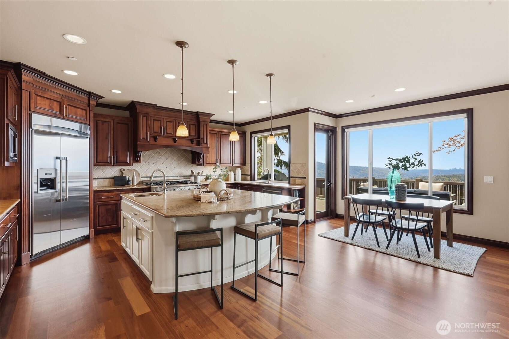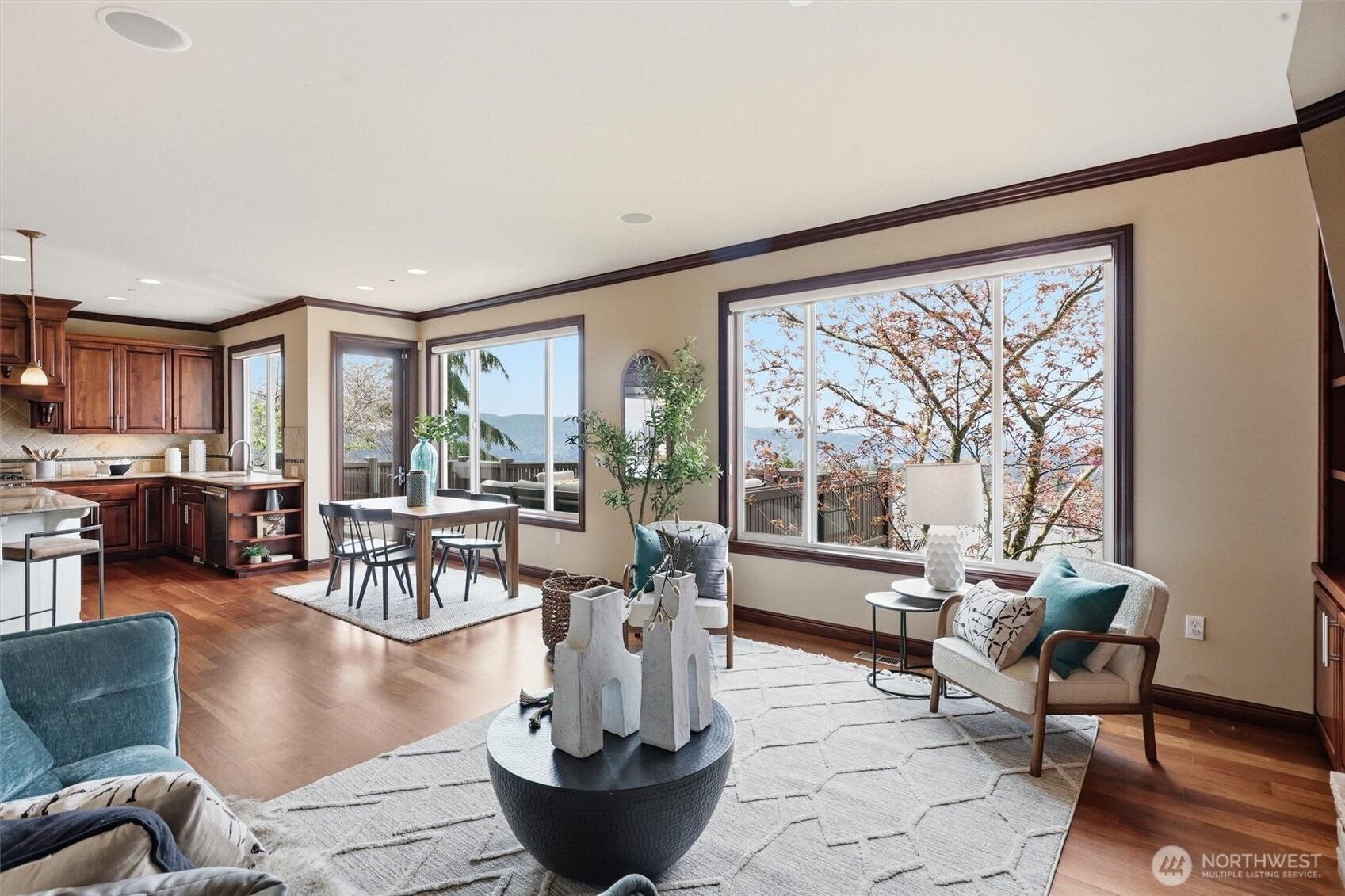 Stunning Buchan resale on one of the premier lots on Daphne Street, showcasing breathtaking mountain & panoramic views of Seattle and Bellevue. Thoughtfully updated throughout, this home blends luxury and comfort with new landscaping, new roof, fresh interior paint, new carpet, refinished hardwoods and storage galore. The upgraded interior features Thermador SS appliances, plantation shutters, Trane HVAC (2021), dual A/C units, and a tankless water heater. The spacious primary suite captures incredible views and includes two fully customized closet systems. Lower level offers a versatile media room with projector and a 100in screen, new LVP, with potential for a MIL suite, ideal for multi-generational living or extended guest stays. Sprinkler system and numerous additional upgrades complete the home. Located in the highly sought-after Issaquah School District. A rare opportunity to own a premier view property with flexibility and modern updates.
