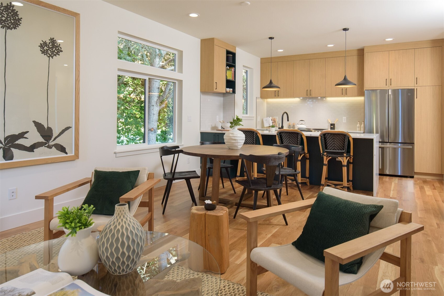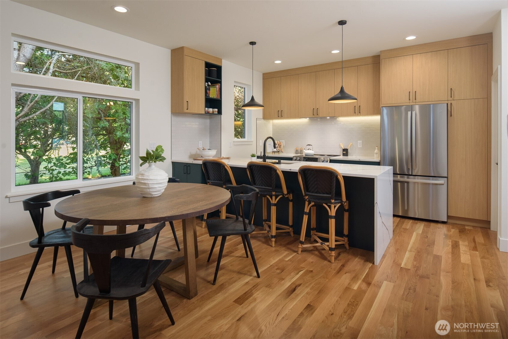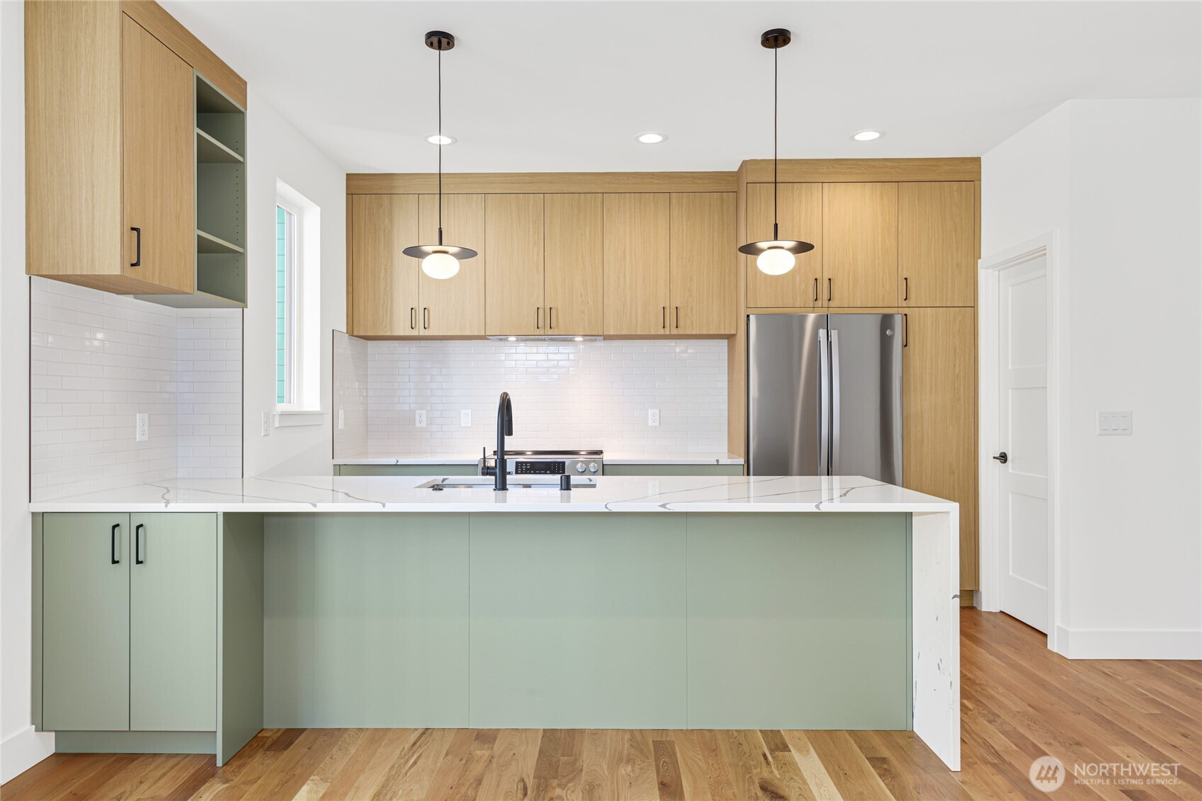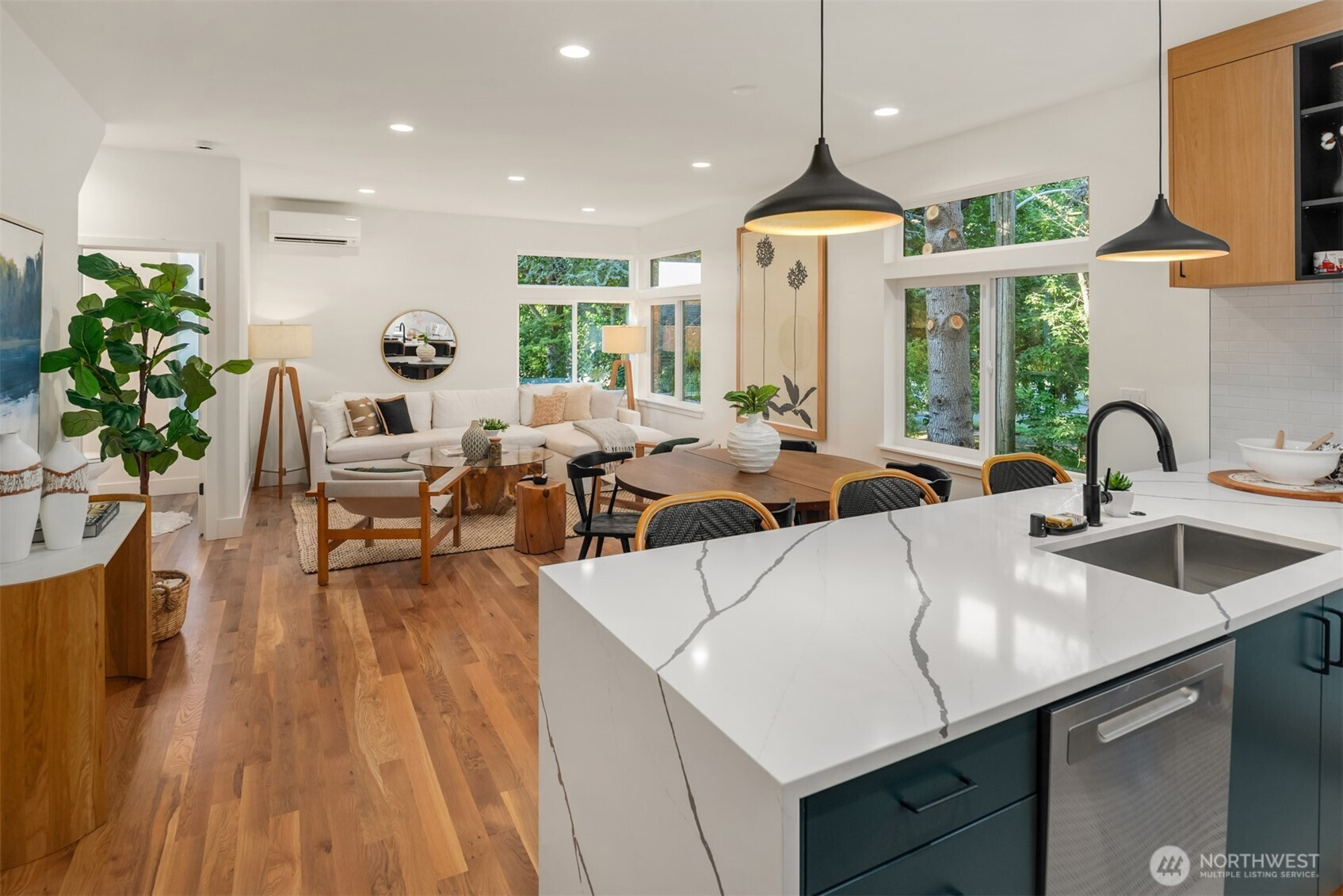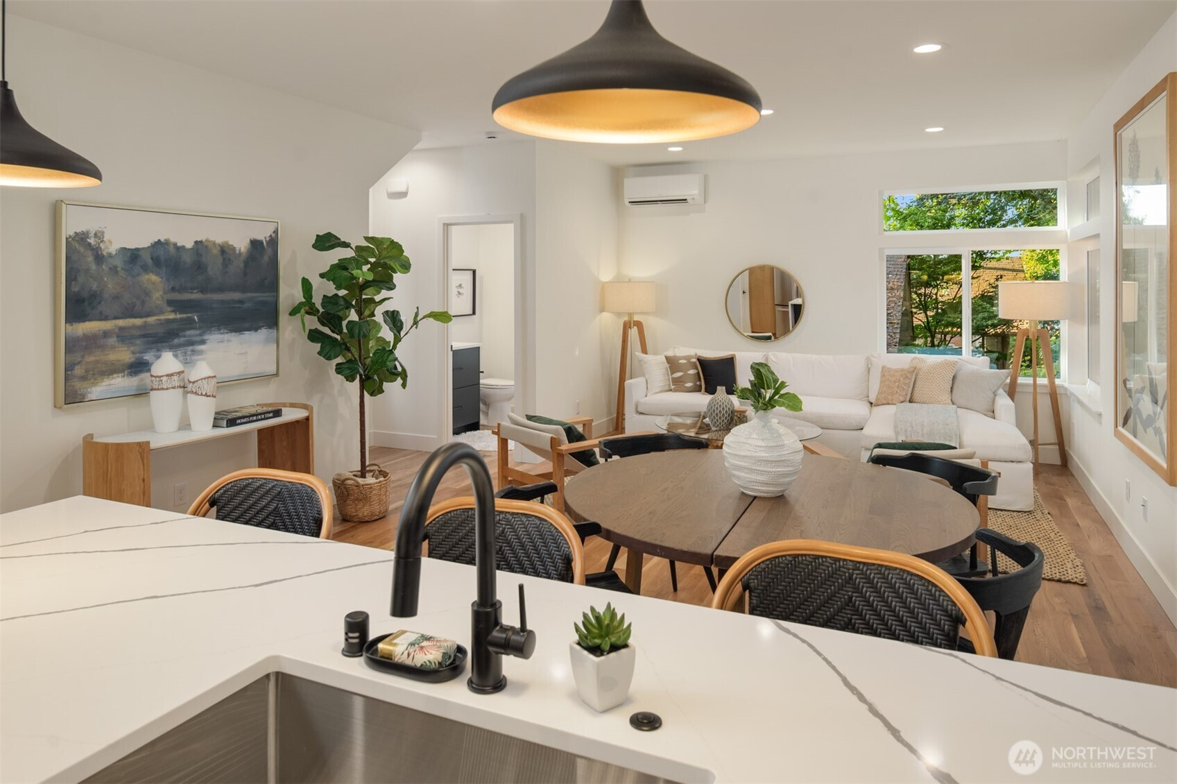 Welcome to Alki one of Seattle's most vibrant neighborhoods. Upper Left Living has built an exceptional new home paying attention to every detail. This home has it all - location, spacious rooms, amazing light, high end designer finishes, office area, fenced yard and private rooftop deck w/ Sound, Mtn & territorial views. The home features a luxury primary suite w/mini split A/C, luxury bathrm w/ designer tile, heated floors, double vanity, curb less shower with heated floors & walk-in closet. Spacious kitchen with all the chef's touches, under counter lighting, stainless appliances, walk-in pantry and prep island/eating bar. Main floor dining, powder rm, White Oak hard wds throughout & designated parking, E-car ready. No HOA dues.