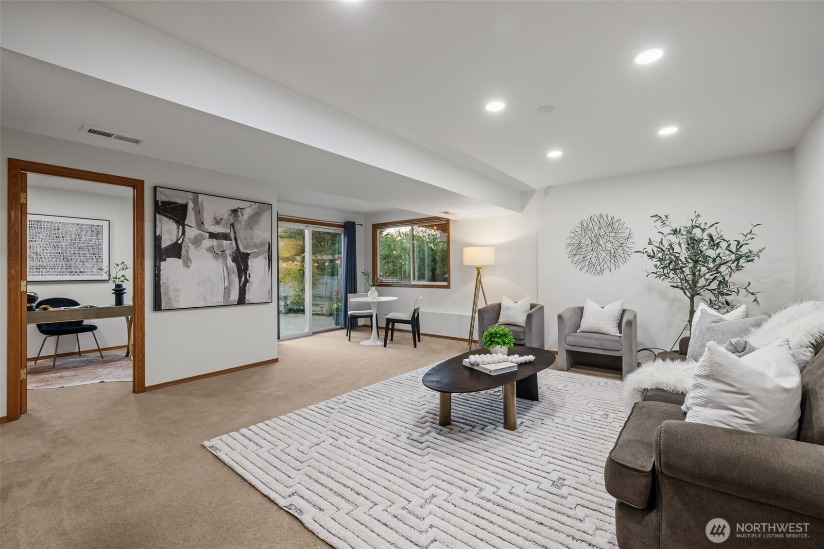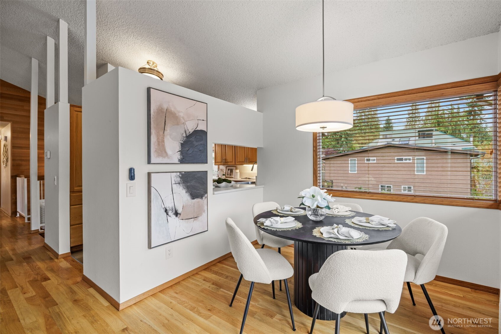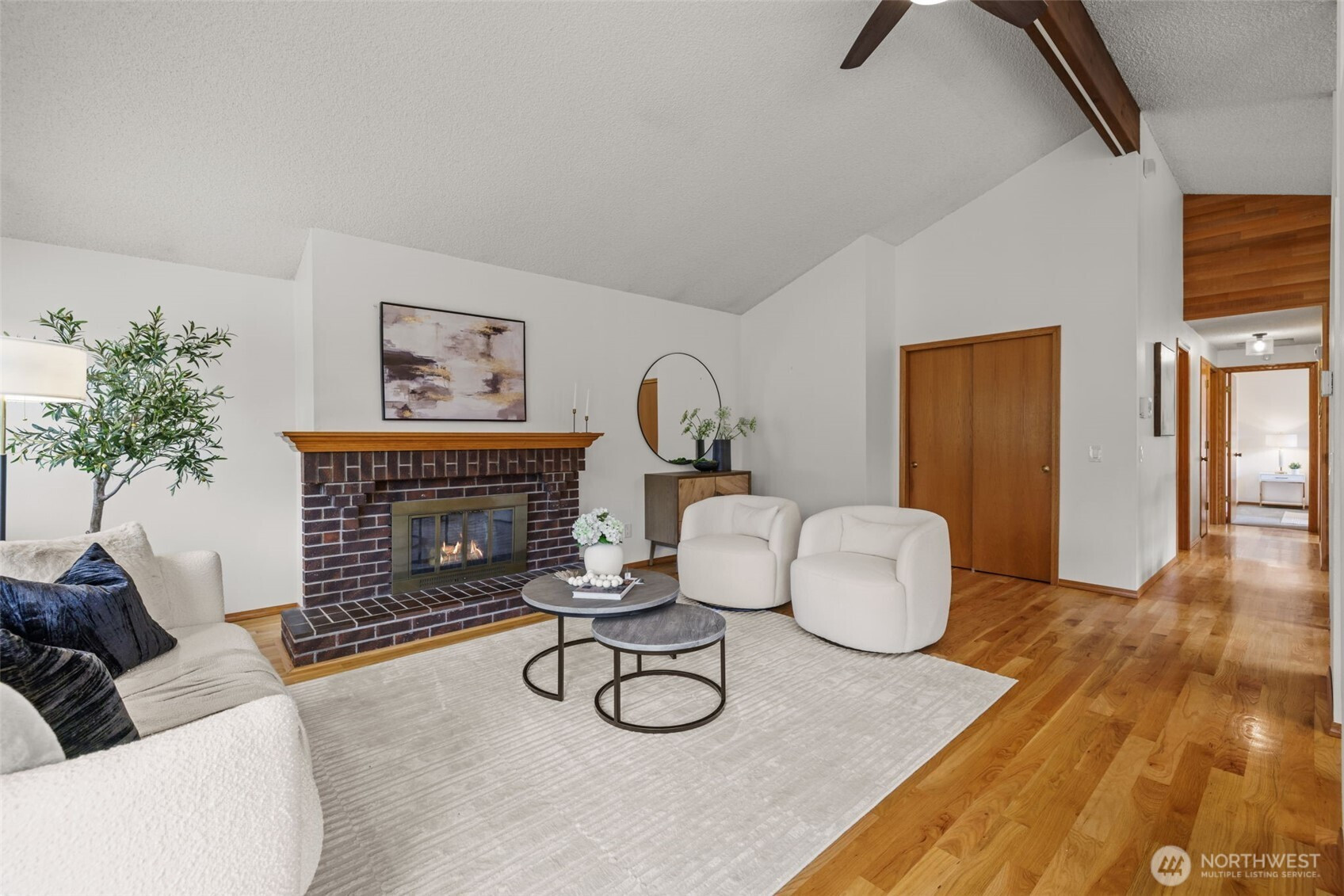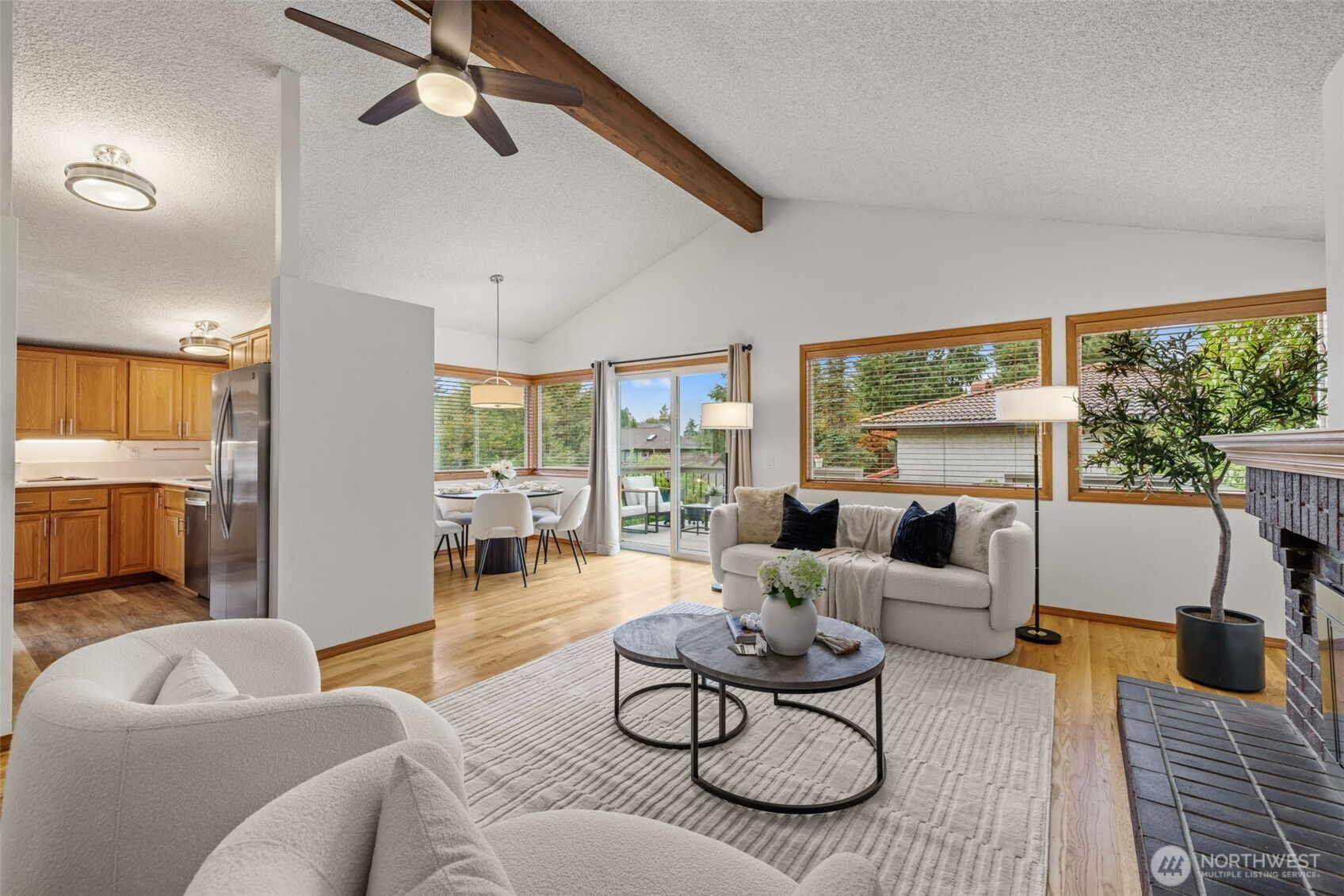 Located in coveted North Beach! This lovingly maintained home features an open layout w/ vaulted ceilings + exposed beams! Offering 3 bedrooms on the main floor & 4th bedroom located on the lower level. Spacious living & dining room area + wood burning fireplace! Kitchen includes eat-in nook surrounded by open light-filled windows open up to a large deck! Lower level welcomes a spacious bonus living room area + additional fireplace. Downstairs opens to a private large patio surrounded by mature landscaping, ideal to entertain large gatherings! Expansive lot w/ huge yard & driveway! Same owners for 45 years! This timeless beauty is a must see and is centrally located near Golden Gardens, coffee shops + amazing parks!