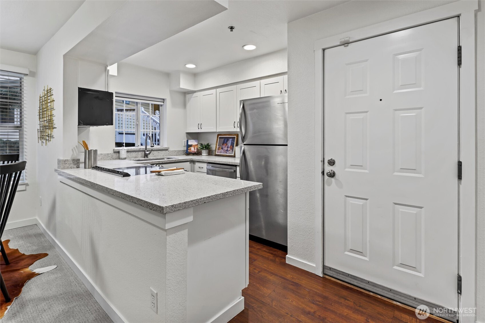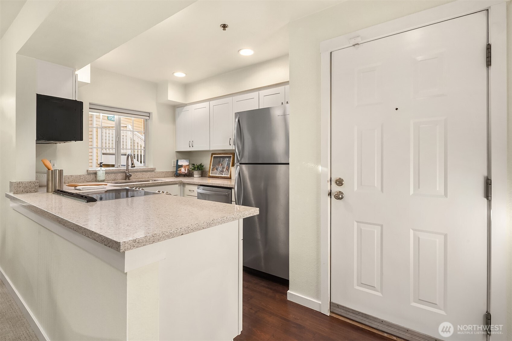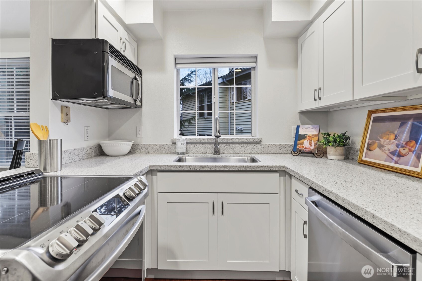 (503) 893-8874Sought-after Bellevue living at its finest in this thoughtfully designed 2bed, 2bath private end unit! Easy stair-free access + secure individual garage adjacent to front door. Inside, you’ll find tastefully updated BRs & kitchen w newer cabinets, quartz counters, induction range, new dishwasher & water heater. Enjoy a cozy wood-burning fireplace, full size W/D, newer carpets, & fresh paint. French doors lead to a private balcony overlooking lush PNW greenbelt, ideal for entertaining or peaceful moments at home. Mins to DT Bellevue, top-rated schools, Lake Washington Blvd, 405, i90, Light Rail station + metro. Outdoor lover’s dream—endless Mercer Slough trails and boardwalk just outside your door. Community clubhouse w gym + sauna!