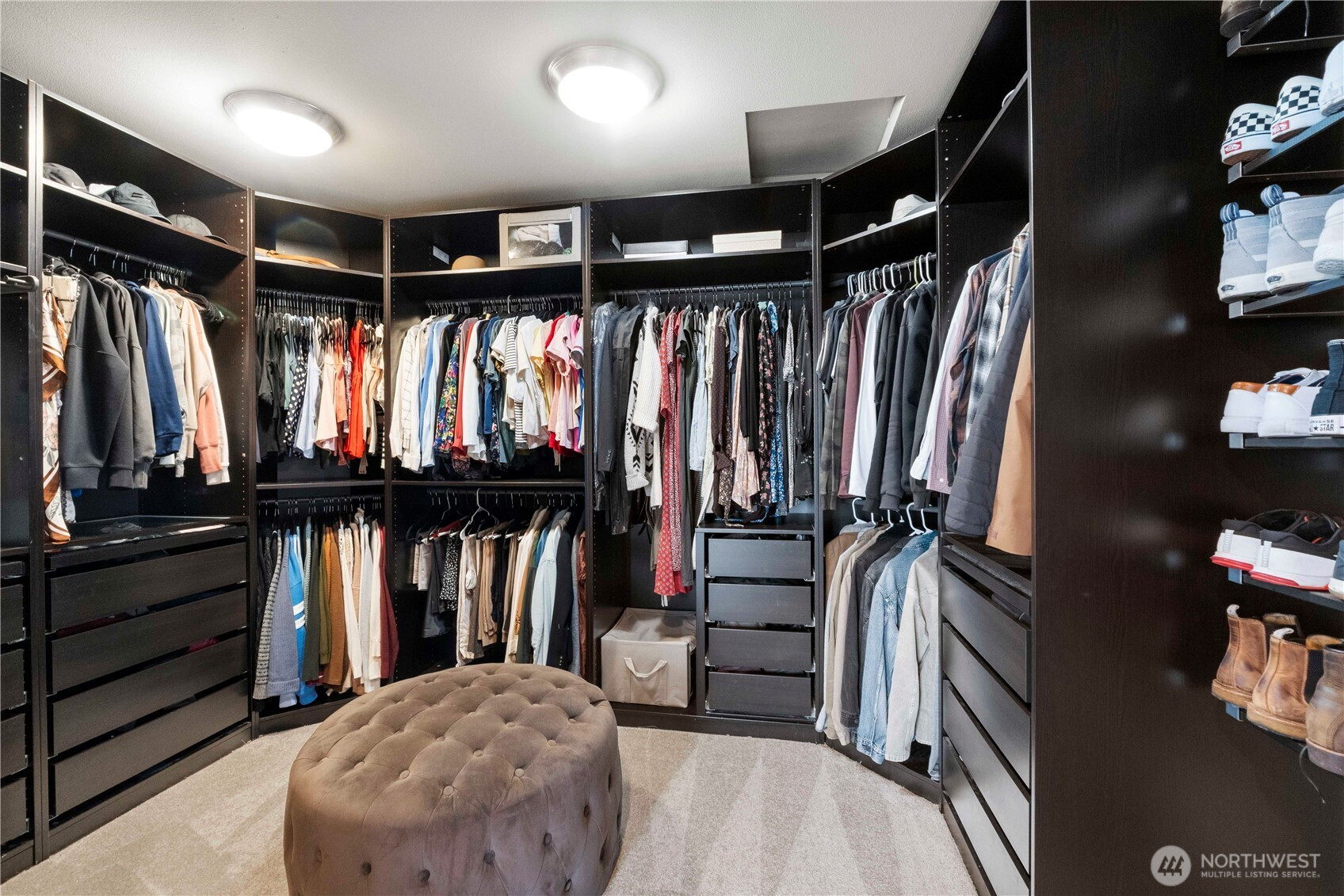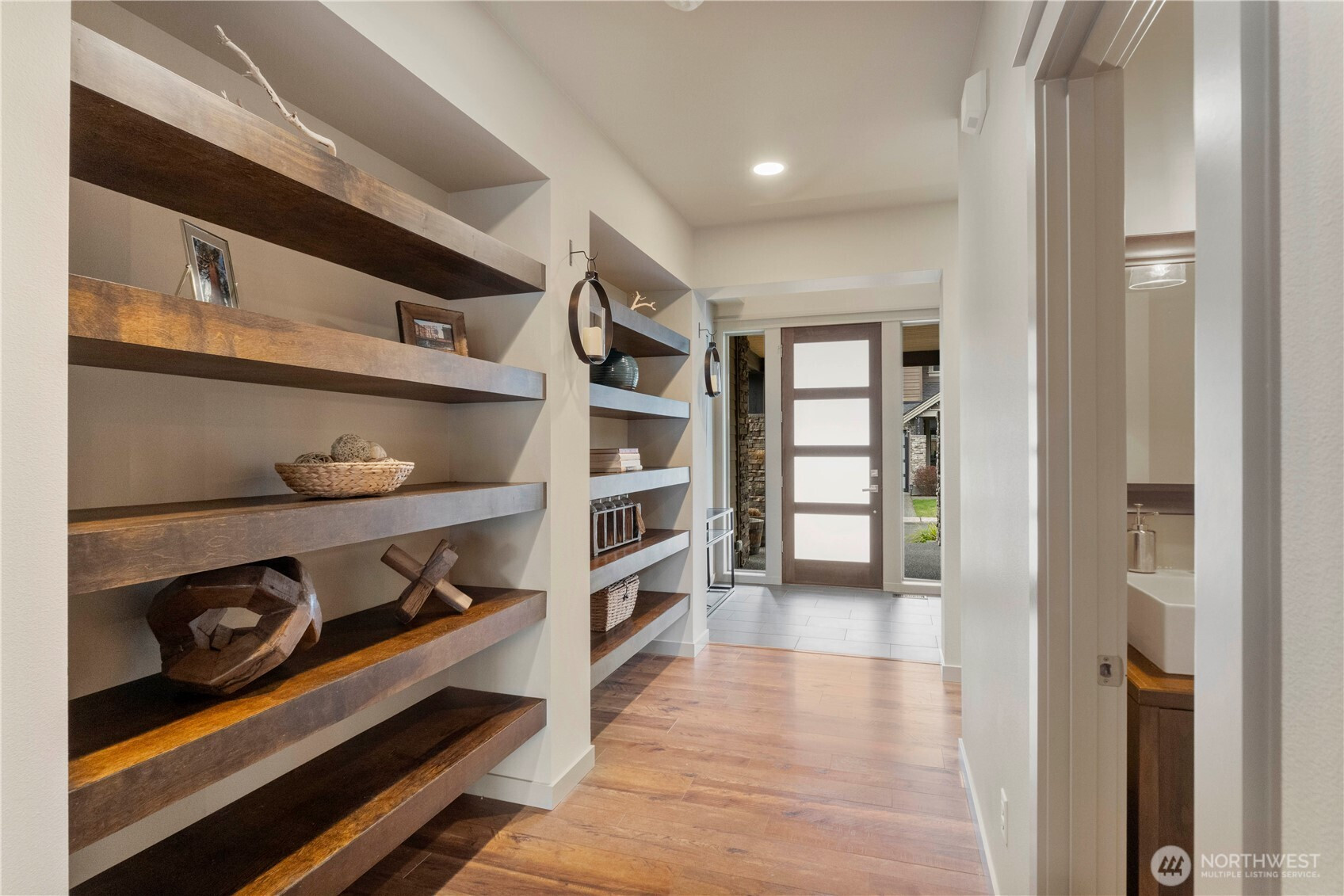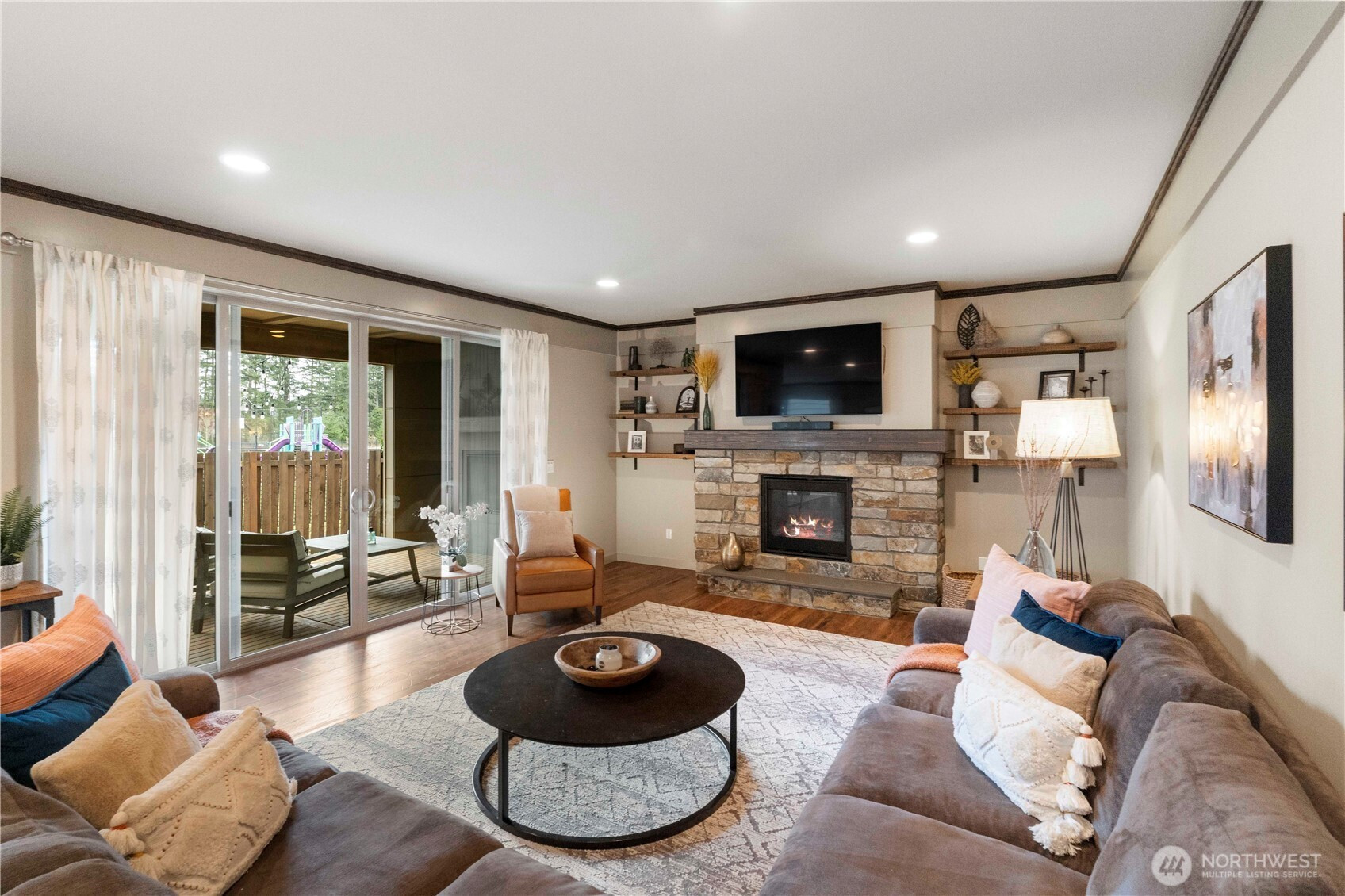 Discover refined living in the heart of Maple Valley with this breathtaking Northwest contemporary masterpiece offering over 3,500 square feet of thoughtfully curated space. Stone accents and soaring ceilings create a striking first impression, while LVP flooring flows seamlessly throughout. The chef’s kitchen is a showpiece, featuring rich two-tone wood cabinetry, gleaming quartz counters, stainless steel appliances, and an oversized island with eating bar—perfectly positioned beside the dining room and open-concept living area for effortless entertaining.Retreat to the luxurious primary suite with a spa-inspired ensuite boasting a separate soaking tub, oversized shower, and an expansive walk-in closet with custom organizational cabinetry. Three additional bedrooms and 2.5 beautifully appointed baths provide flexibility and comfort. A dedicated den showcases an impressive built-in shelving system with sliding barn doors, while the bonus room—currently a home theater—offers endless possibilities. Custom hallway shelving and air conditioning enhance everyday comfort. Step outside to a covered patio with an inviting outdoor fireplace overlooking a low-maintenance turf backyard—beautifully green year-round and designed for effortless enjoyment.