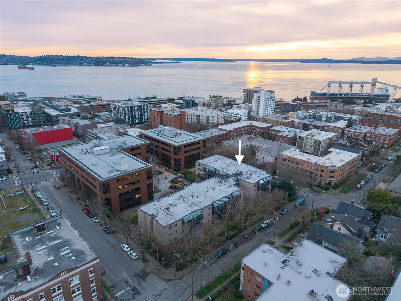 A sweet spot for urban living with a Walk Score of 94. Enjoy easy access to transit, urban trails, tennis courts, & the waterfront, all just steps from Seattle Center & Climate Pledge Arena. This light-filled one-bedroom unit overlooks a private courtyard garden & features an open layout with double sliding doors, granite kitchen counters, marble bath counters, stainless steel appliances, & is the only unit in the building with a built-in fireplace. Well maintained with a fresh feel, ready for your personal touch. Includes 1 secured parking spot. Storage unit on the same floor. Community amenities include gym, lounge/media room, bike storage, BBQ area, & pets are welcome. A rare blend of convenience, comfort, & location in Lower Queen Anne.