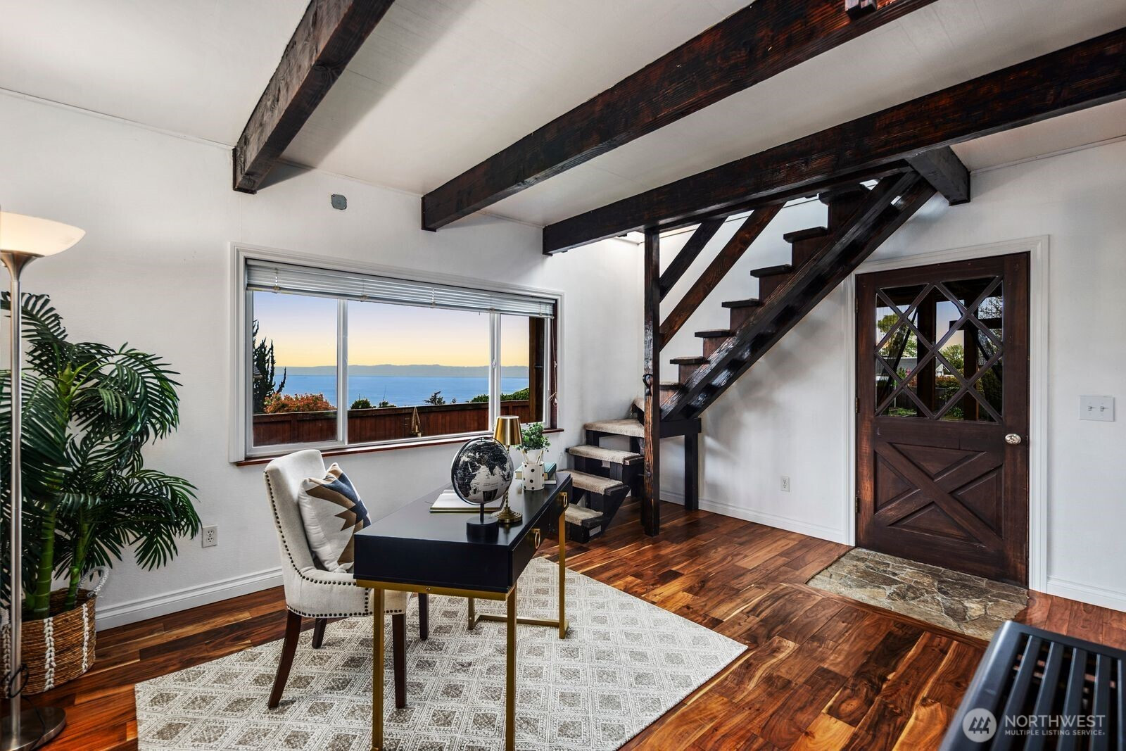 Enjoy your morning coffee on your personal deck just off the primary bedroom, then end the day watching the sun set over the horizon from your 3rd story deck high above it all. Inside, the whole main floor is perfectly facing the water view, creating a stunning backdrop for everyday living, quiet mornings, and unforgettable evenings with guests. Whether you are hosting holiday dinners, casual weekend get-togethers, or simply enjoying a peaceful night at home, this property offers the kind of setting and space that makes every moment feel elevated. The large family room adds even more room to gather, relax, watch the game, create a play space, or enjoy the kind of comfortable everyday hangout area you can rarely find. The crow's nest creates a one-of-a-kind retreat with a perspective that is hard to match, while the 3rd story deck becomes a natural extension of the home for entertaining, unwinding, and taking in the view. Behind the home, the workshop is ready for projects, hobbies, extra storage, or creative pursuits that need room to spread out. The 3 car garage adds even more flexibility for parking, storage, and daily convenience. This Des Moines property brings together luxury, versatility, and unforgettable water views in a way that feels both refined and welcoming.