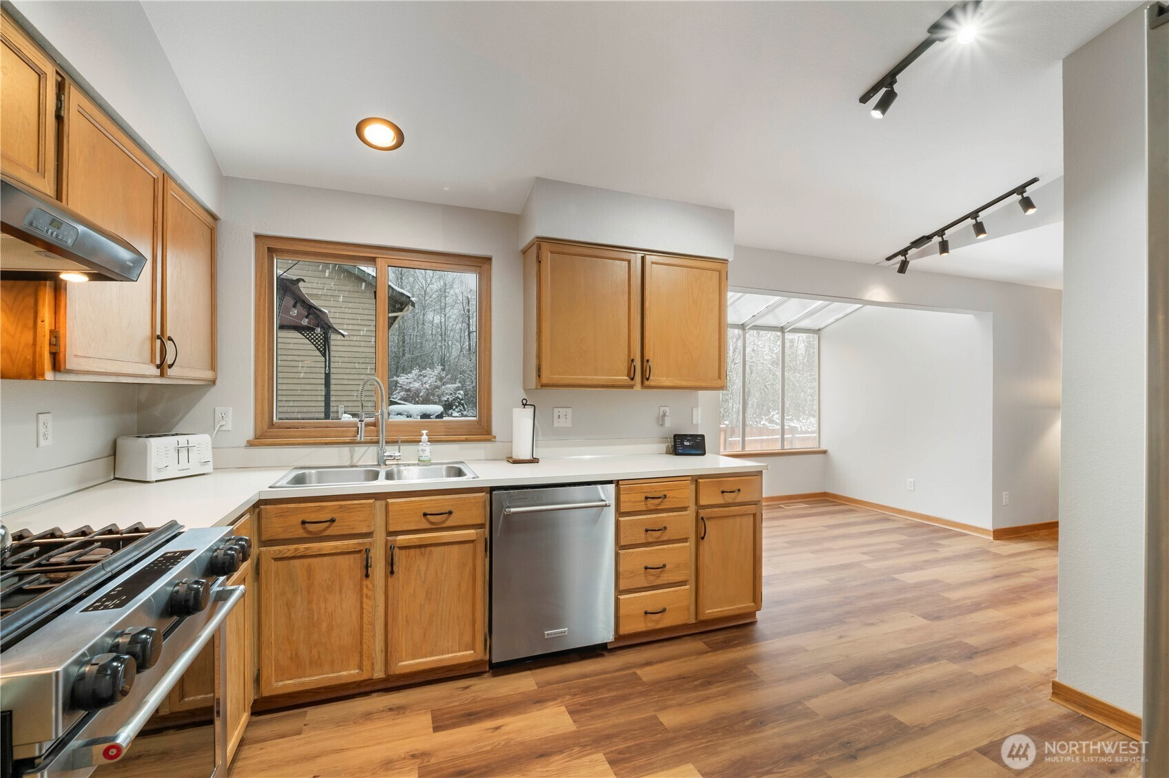 Beautifully refreshed with new flooring and fresh paint inside and out, this well-maintained 2-bedroom home offers the perfect blend of comfort and potential. The layout allows for a simple conversion to a third bedroom, making it ideal for evolving needs. A cozy wood-burning fireplace anchors the living room, while the large corner lot provides RV parking and outdoor deck space to enjoy. A new roof, newer water heater and furnace will put your mind at ease for years. Located just minutes from shopping, dining, and Highway 18, this home is ready for its next chapter.