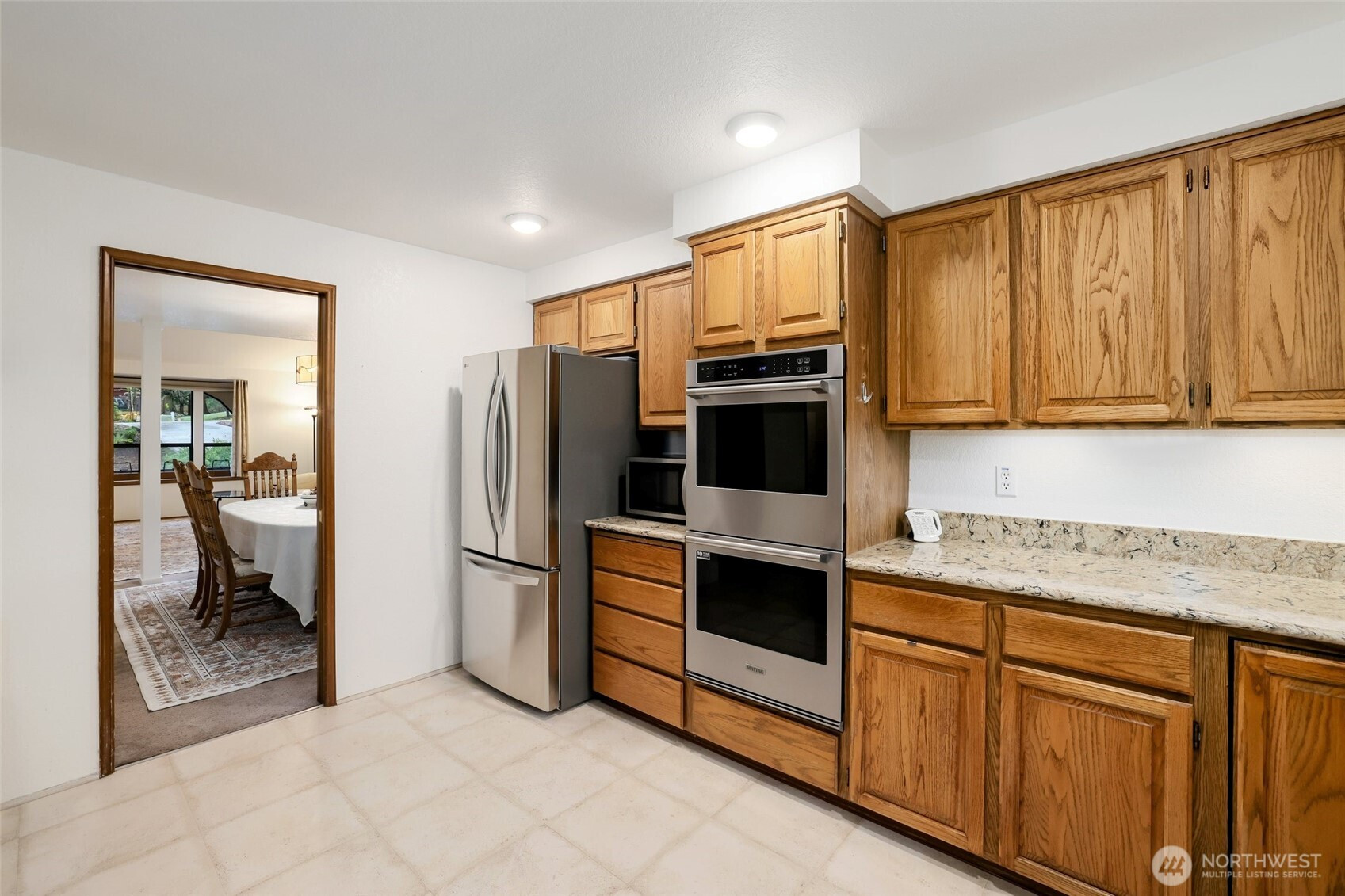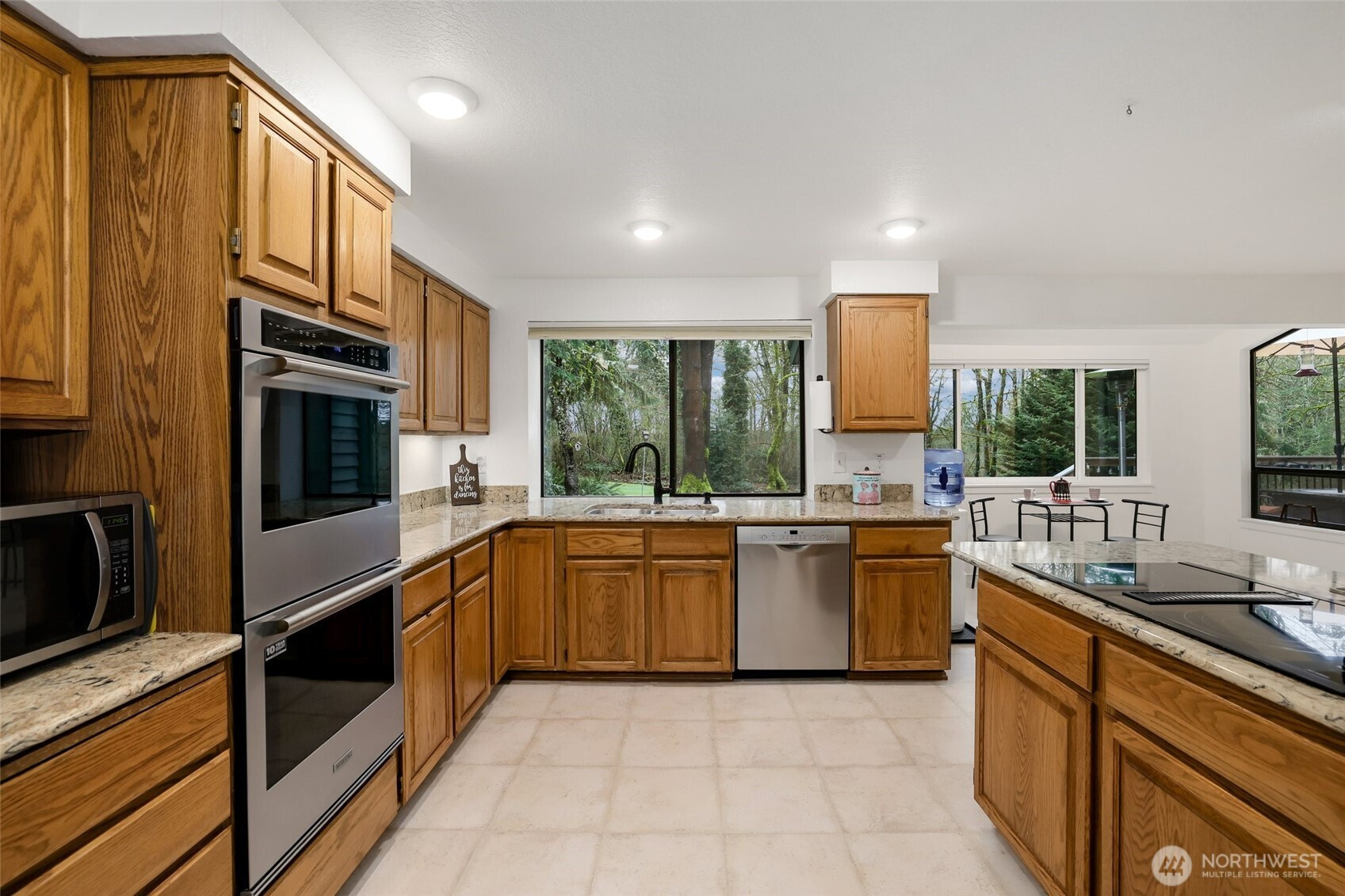 Discover this coveted Winterwood Estates home, where obvious pride of ownership meets a serene rural feel. Nestled on a lush, shy-acre lot, this 2,670sqft residence offers tranquility and backs up to a true greenbelt for ultimate privacy. The heart of the home is the updated kitchen, featuring elegant quartz counters, and modern appliances. Entertain with ease in the formal living and dining areas, or relax in the family room centered around a cozy gas fireplace. Vaulted ceilings and large windows frame peaceful views of greenery from every room. The thoughtful layout includes a desirable main floor bedroom and 3/4 bath, ideal for guests, in-law, or a home office. Upstairs, find a spacious primary suite with an en-suite and a dedicated sitting area. Outdoor living is perfected on the deck overlooking an expansive, park like backyard that invites wildlife and exploration. This property is rounded out with a 3-car garage and an additional storage shed. Located in the Kent School District and minutes from nearby retail & amenities, it's the perfect blend of community and privacy. Mortgage savings may be available for buyers of this listing.