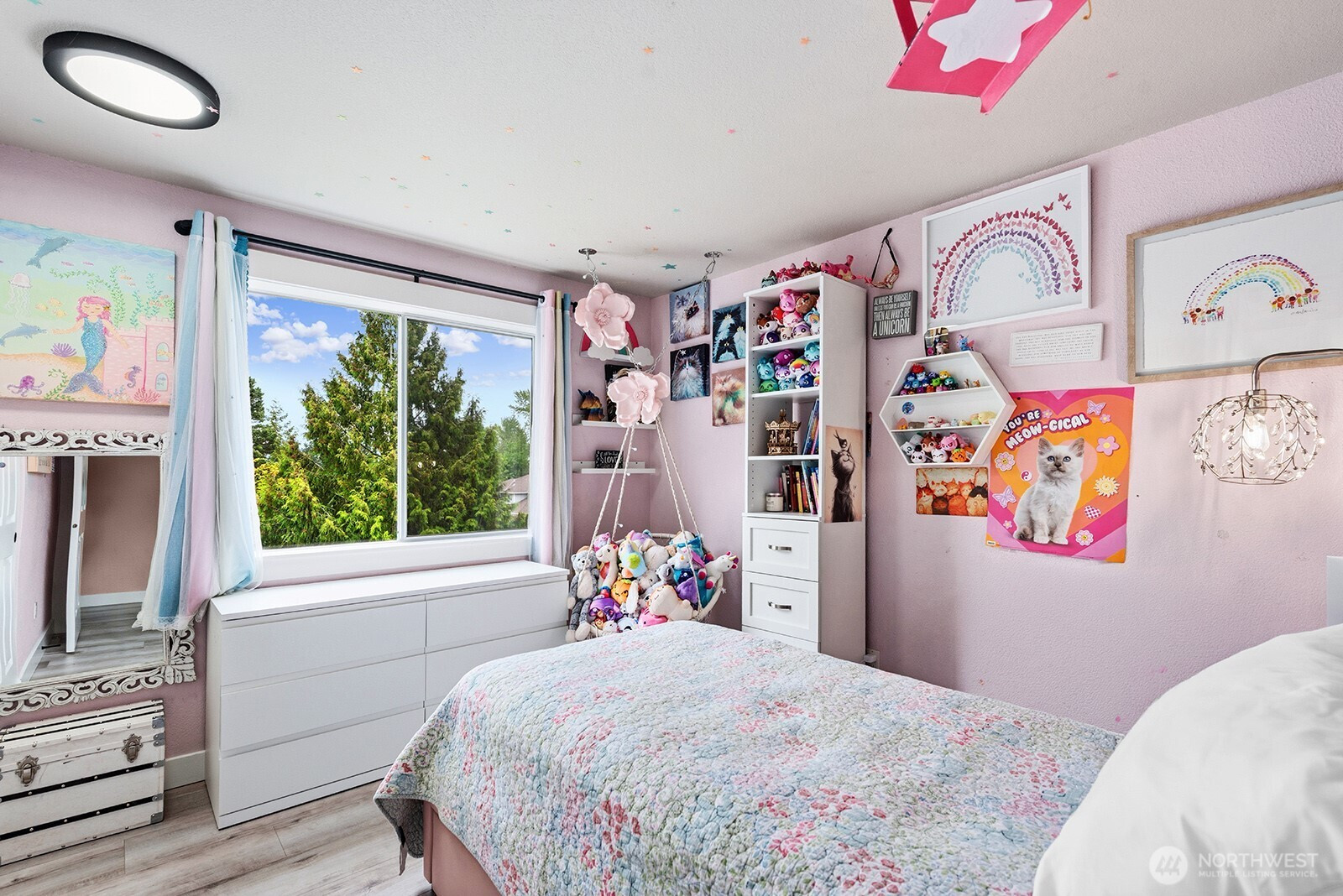 Sun-soaked 4-bedroom, 2.5-bath home in Shaunessy — beautifully refreshed and move-in ready. Bright, airy living spaces feature newer hard-surface flooring and tile throughout, plus a refinished deck ideal for morning coffee or evening entertaining. The standout is the generous corner lot with room on the side for an RV or boat, offering rare outdoor flexibility, privacy, and potential for gardening, play areas, or future expansion. Comfortable, well-laid-out bedrooms, updated baths, and abundant natural light make daily living a pleasure. Enjoy a peaceful neighborhood setting while staying conveniently connected — roughly 25 minutes to Seattle, 30 minutes to Tacoma, and close to light rail access for easy commuting. A perfect blend of modern updates, sun-drenched rooms, and exceptional lot space. Ownder is related to listing agent.