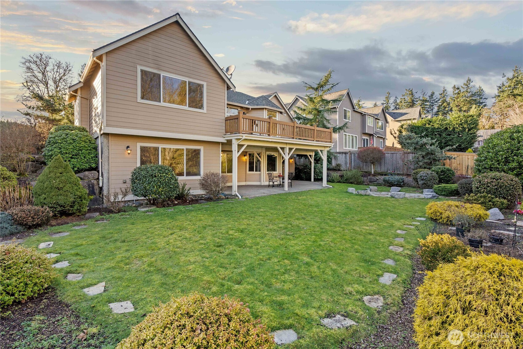 Built by respected Norris Homes from the Executive Collection, this elegant and spacious “Bethany” luxury home sits in the private, nine-home Star Hills Estates community in desirable north Auburn. The HOA maintains a private street and greenbelts on both sides, creating a peaceful, park-like setting next to the well-kept Shaugnessy neighborhood. Prime commuter location with easy access to I-5, SR-167, SR-18, Star Lake Station, shopping, dining, and Lake Fenwick Park.This 4,260 sq ft executive home features an open, light-filled floor plan with 10’ ceilings, hardwood floors, crown molding, wainscoting, and wood-wrapped windows. The main level offers expansive picture windows with greenbelt views, a large entertainment deck, impressive primary suite, and private den/office — ideal for remote work. The daylight lower level includes three large bedrooms, full bath, bonus/media room, second office/den, patio access, and mostly 9’ ceilings — great for guests, multigenerational living, or flex space.Move-in ready with major upgrades: Hunter Douglas blinds (2026)in most main floor windows, carpet (2025), interior paint (2025), newer cooktop, Samsung washer/dryer, A/C and high-efficiency furnace (2022), CertainTeed roof (2021, transferable warranty), and backup generator.Set on a professionally landscaped 14,653 sq ft greenbelt lot with year-round color — a rare blend of privacy, space, and convenience.