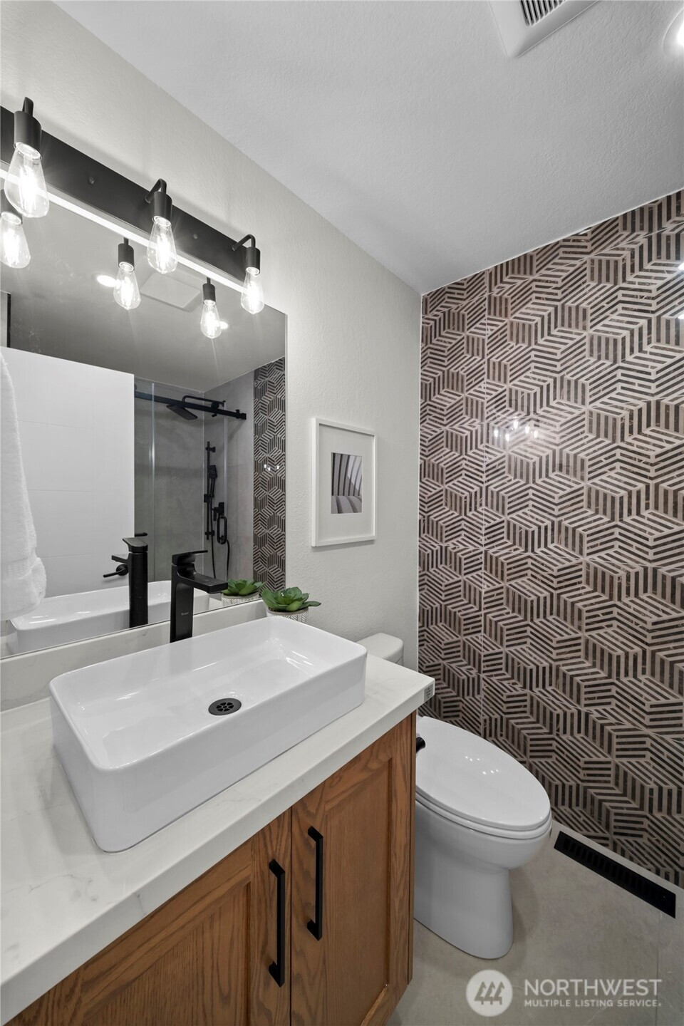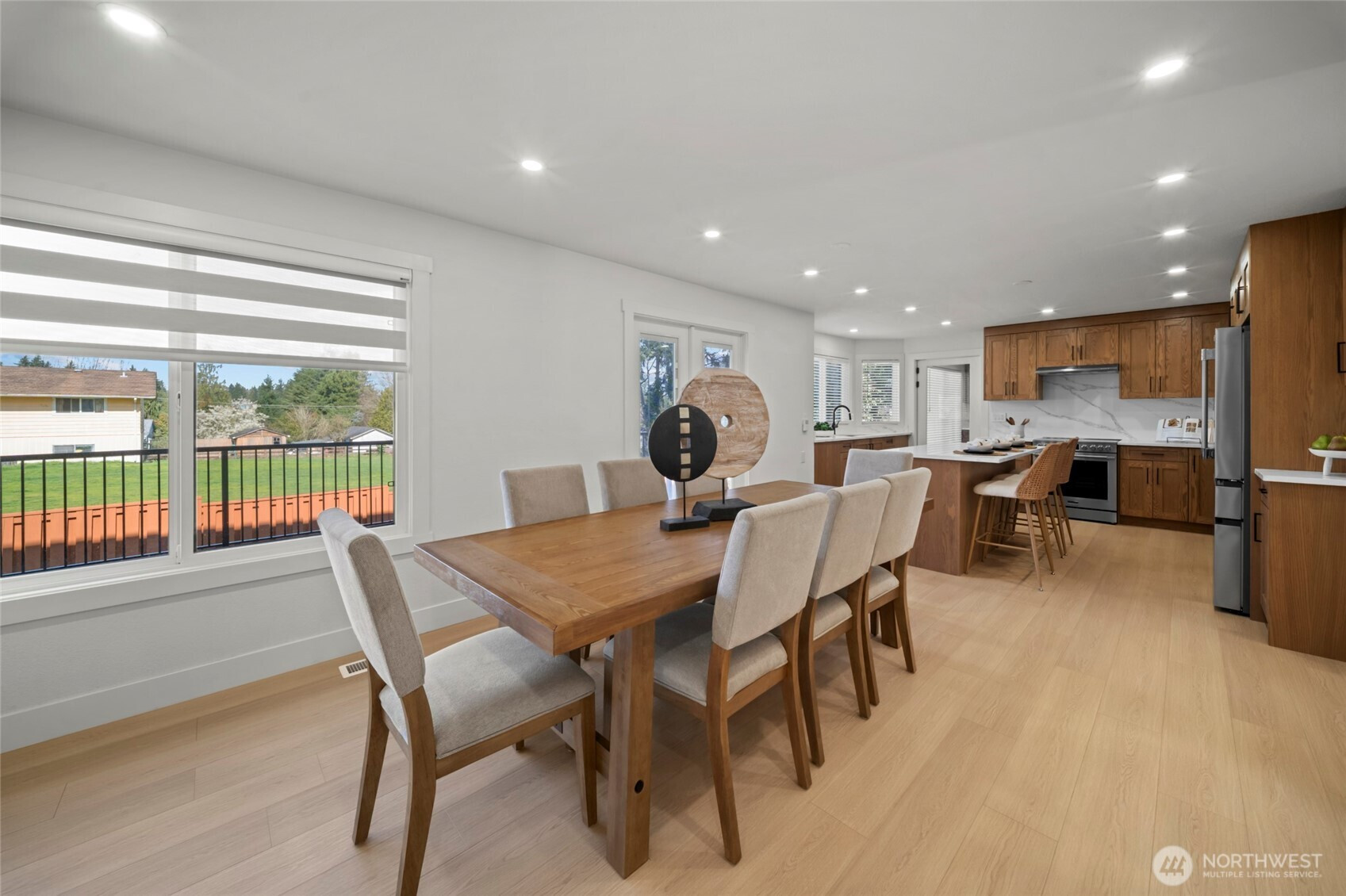 Fully renovated in 2026, this versatile and luxurious home offers 5 bedrooms, 5 bathrooms, and 2,770 sq ft of thoughtfully designed living space. Featuring two spacious primary suites plus an additional en-suite bedroom, this home provides exceptional flexibility for multi-generational living or guests. The modern open-concept layout showcases two beautifully designed kitchens, including a dedicated spice kitchen, both equipped with new stainless steel appliances, quartz countertops, and custom cabinetry. Enjoy seamless indoor-outdoor living with a brand new patio deck, perfect for entertaining. The interior features durable laminate flooring throughout the main living areas and comfortable carpeted bedrooms. Situated on a generous 9,295 sq ft cul-de-sac lot, the property also offers potential to build a Detached Accessory Dwelling Unit (DADU) for additional living space or rental income. The paver driveway provides extra parking and great curb appeal. Conveniently located within walking distance to Star Lake and the Light Rail transit, offering easy commuting options. A rare combination of space, modern upgrades, and flexible living in a prime Auburn location