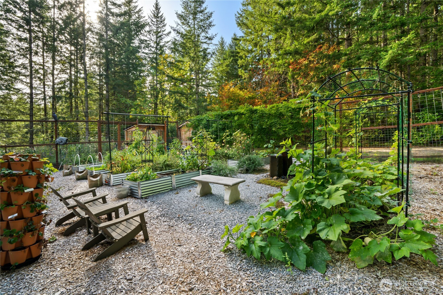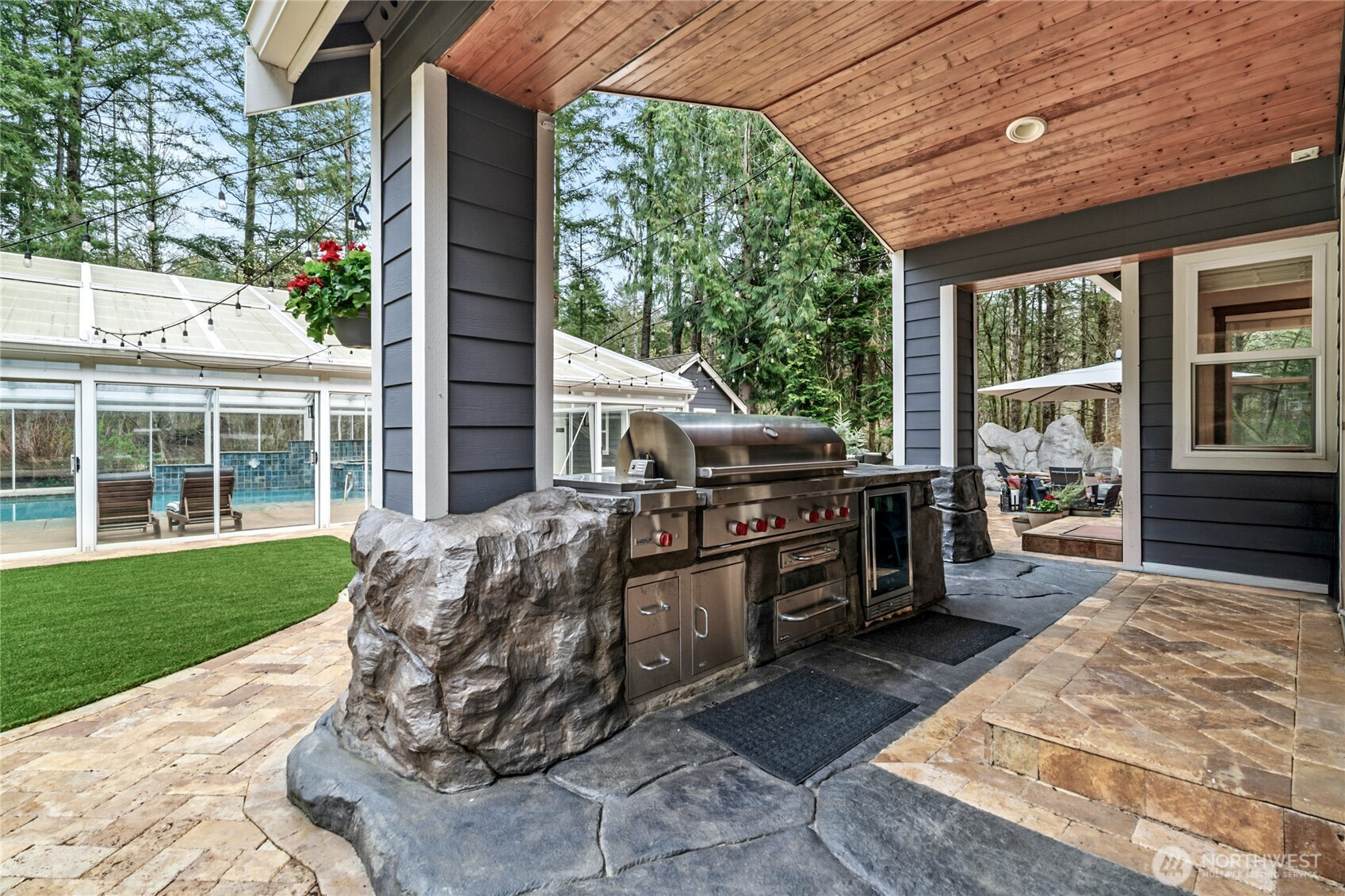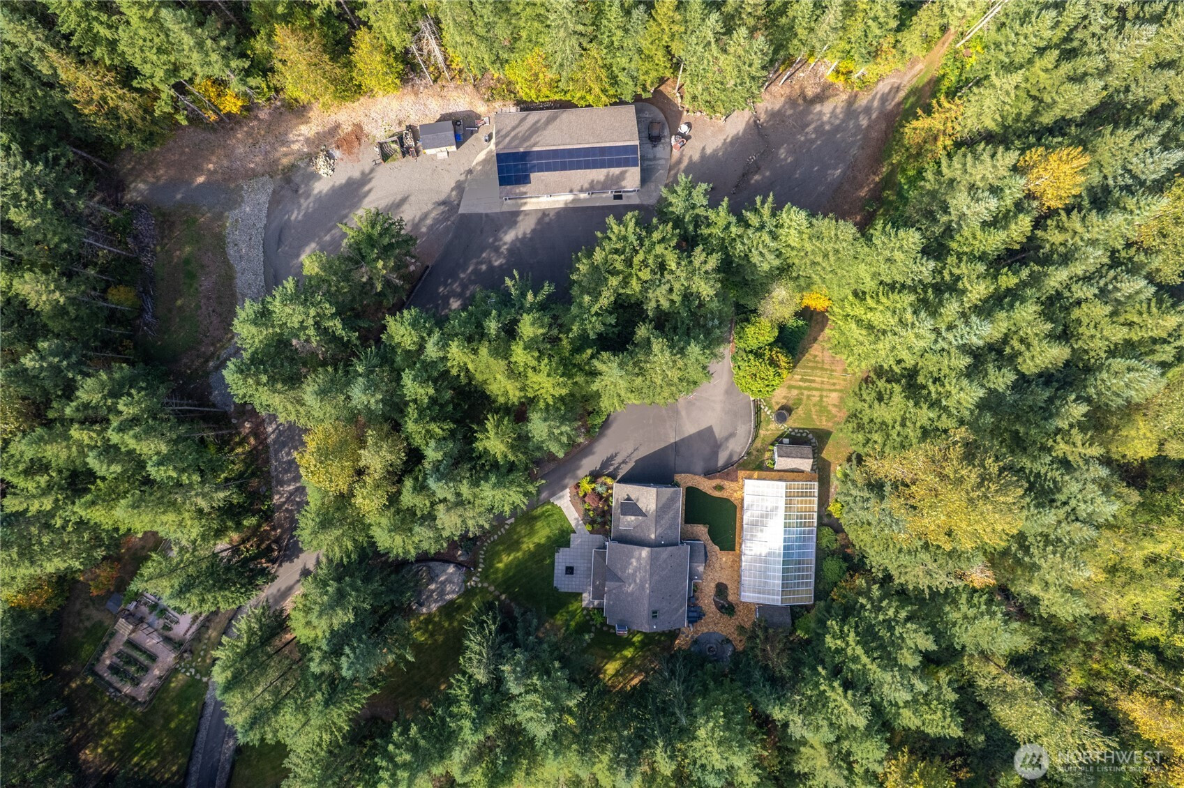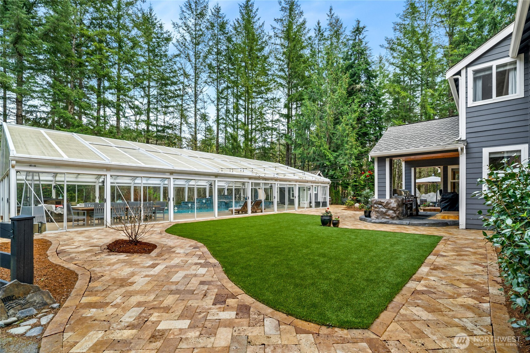 Beyond a private gate, tucked among just ten homes and a canopy of mature evergreens, something rare begins—just five minutes from Maple Valley’s Four Corners. Not just a home—but a fully realized lifestyle compound, with more than $860,000 invested since 2021. A glass-enclosed pool pavilion with slide and hot tub. A 40x70 shop with solar panels powering most of the home. An outdoor Wolf kitchen beneath a cedar-plank ceiling. Space for RV guests w/50Amp & H20 hookups. Grounds that would take years to recreate. All of it already built. Already waiting. Inside, the home balances scale with intention. The family room gathers around a three-sided fireplace, creating a space that feels connected and central. The Wolf and Sub-Zero kitchen is the kind serious cooks pause for. The primary suite reflects a recent $115,000 renovation—freestanding soaking tub set before a floor-to-ceiling herringbone marble fireplace, dual rain heads, and warm wood cabinetry. A main-level bedroom or office with attached ¾ bath, plus an additional powder room, adds flexibility for guests or multigenerational living. The shop redefines what’s possible—entertaining space, office, storage & additional 877 SqFt of living quarters. Outside, a fully fenced 4,000 sq ft garden with greenhouse, espalier fruit trees, and heirloom roses reflects years of cultivation. Solar, generator, UV well filtration, owned propane. Tahoma Schools. There are no true comps for a property like this—because there isn’t another one.