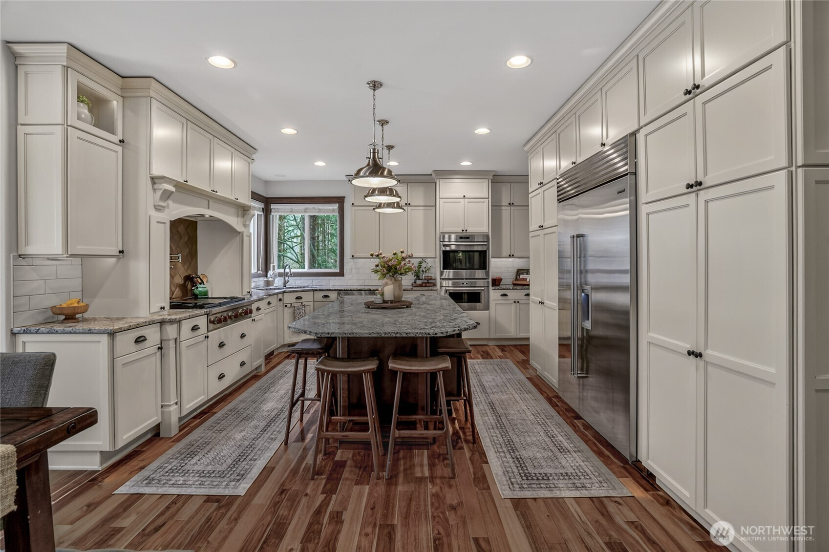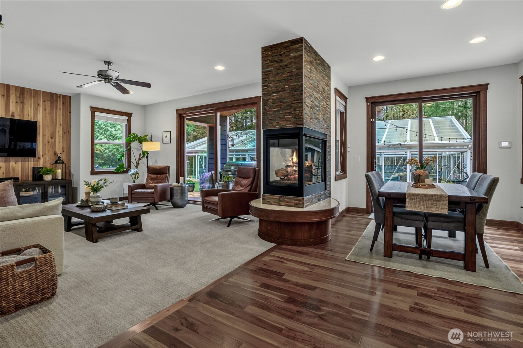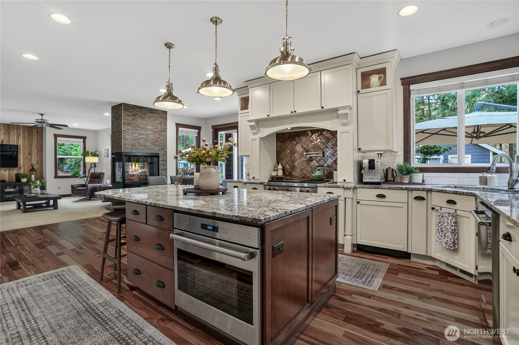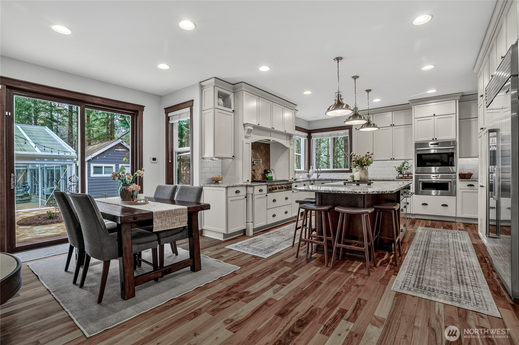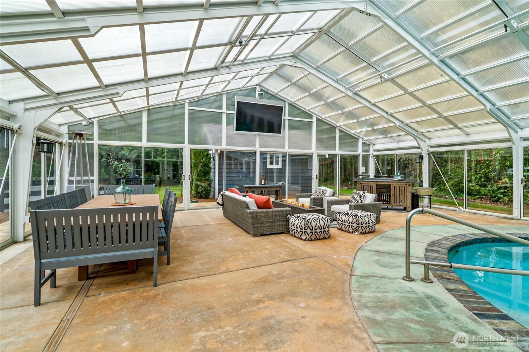 Beyond a private gate, tucked among just ten homes and a canopy of mature evergreens, something rare begins—just five minutes from Maple Valley’s Four Corners. Not just a home—but a fully realized lifestyle compound, with more than $860,000 invested since 2021. A glass-enclosed pool pavilion with slide and hot tub. A 40x70 shop with solar panels powering most of the home. An outdoor Wolf kitchen beneath a cedar-plank ceiling. Space for RV guests w/50Amp & H20 hookups. Grounds that would take years to recreate. All of it already built. Already waiting. Inside, the home balances scale with intention. The family room gathers around a three-sided fireplace, creating a space that feels connected and central. The Wolf and Sub-Zero kitchen is the kind serious cooks pause for. The primary suite reflects a recent $115,000 renovation—freestanding soaking tub set before a floor-to-ceiling herringbone marble fireplace, dual rain heads, and warm wood cabinetry. A main-level bedroom or office with attached ¾ bath, plus an additional powder room, adds flexibility for guests or multigenerational living. The shop redefines what’s possible—entertaining space, office, storage & additional 877 SqFt of living quarters. Outside, a fully fenced 4,000 sq ft garden with greenhouse, espalier fruit trees, and heirloom roses reflects years of cultivation. Solar, generator, UV well filtration, owned propane. Tahoma Schools. There are no true comps for a property like this—because there isn’t another one.