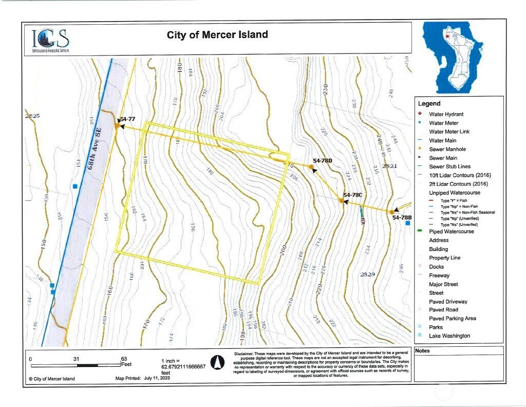A rare find! Great view lot provides a setting with views of Lake Washington, Downtown Seattle, and the Olympic Mountains. This is the perfect Northend location to build your dream home. Bring your builder or architect and let the fun begin as you create your new retreat. Access is from 68th Ave SE. The dimensions are 90 ft. long along 68th Ave SE and 100 ft. going up the hill, with 100 ft. to the east. There is a good area for building on the south half of the lot. First time on the market in 60 years. Easy to access to the lot and only a short distance from East Seattle Waterfront Parks.