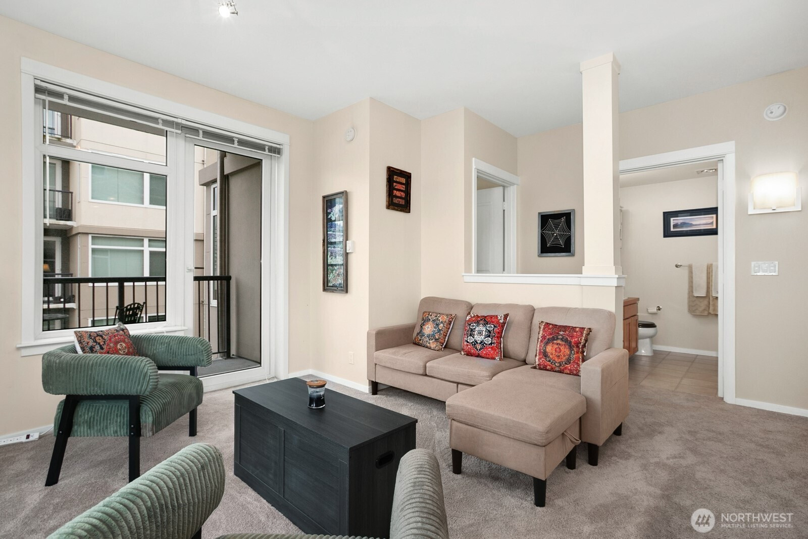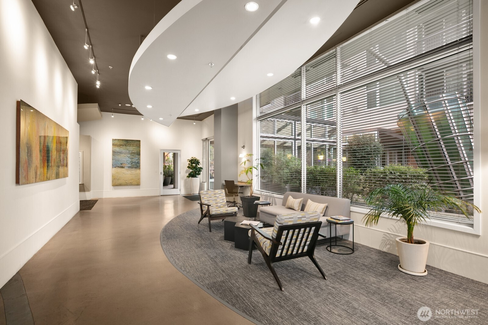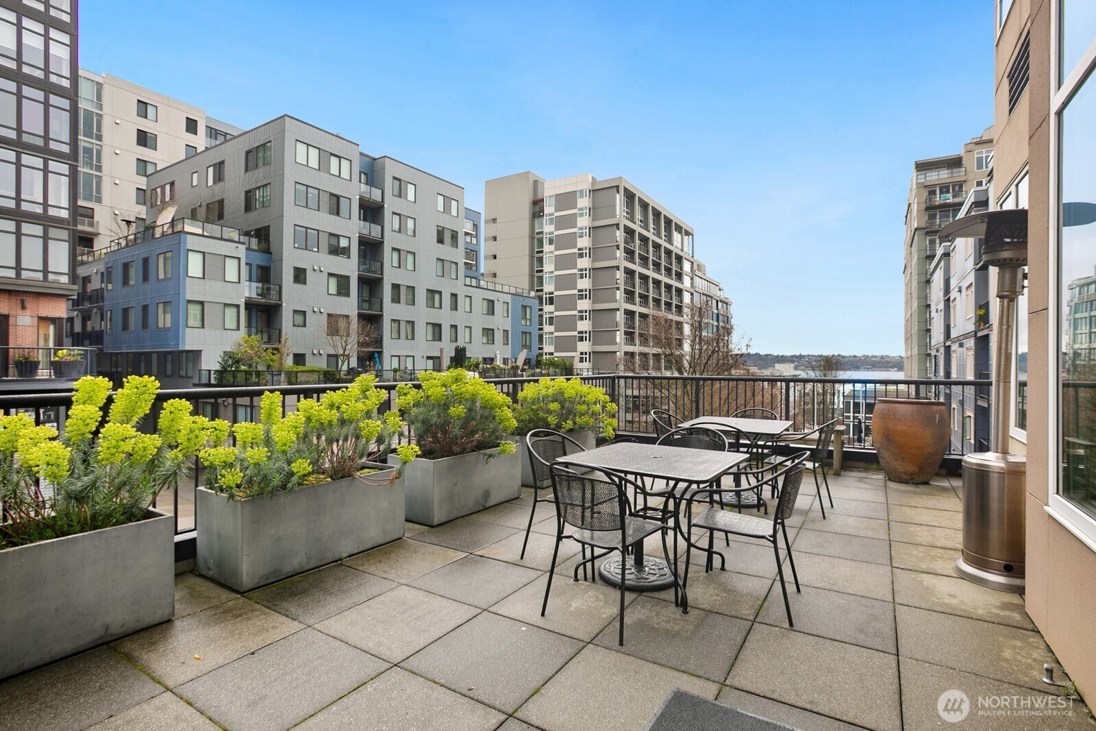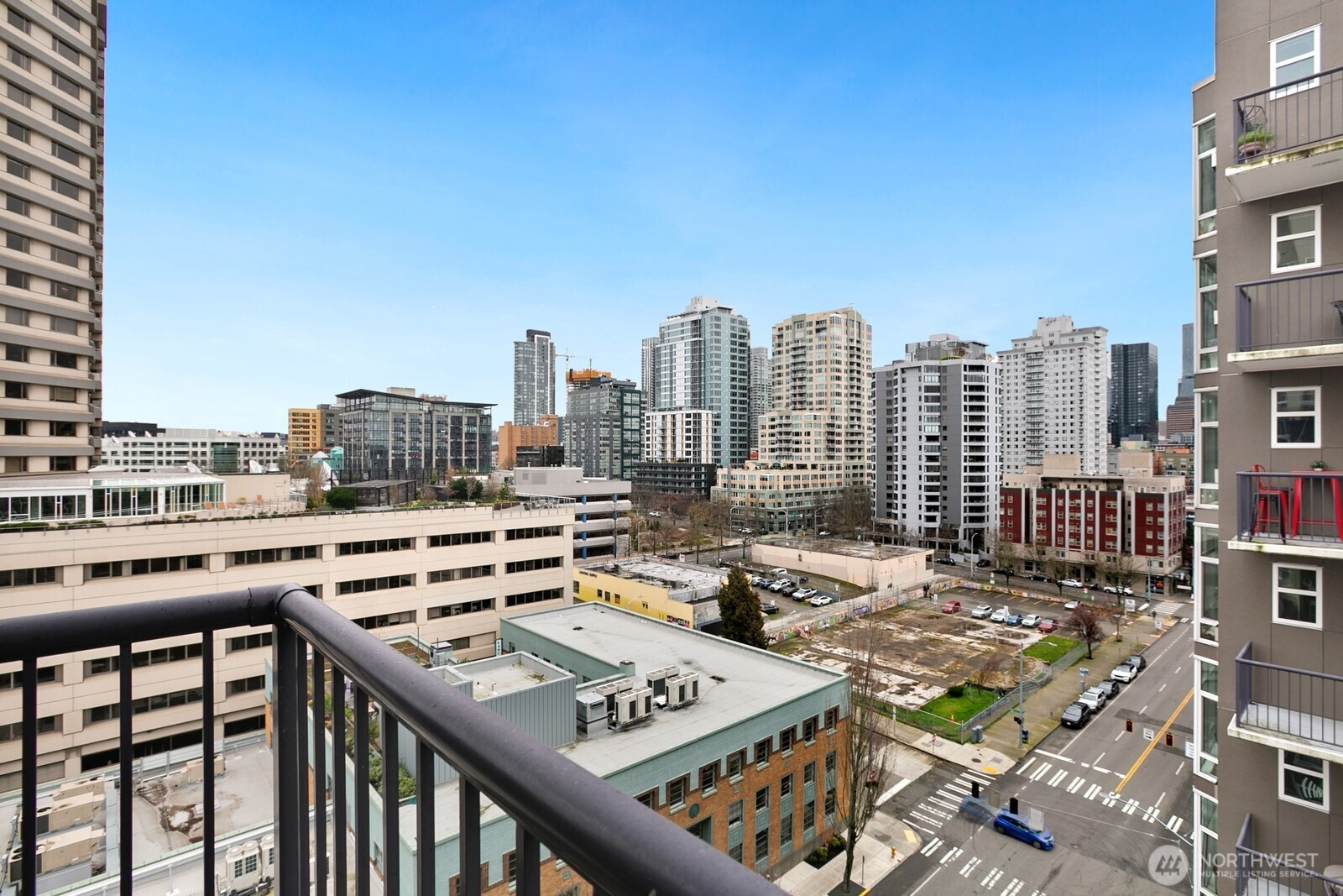 Light-filled corner residence at The Ellington with a layout that truly stands out—not your typical boxy condo. The thoughtfully designed floor plan, soaring 9-foot ceilings, and expansive windows create an open, airy feel that lives larger than expected. The spacious kitchen offers bar seating, gas cooking, and abundant storage, flowing seamlessly into the generous living area, complete with a cozy gas fireplace and access to a south-facing deck with lovely city views. Enjoy full-service amenities including 24-hour concierge, guest suites, fitness center, spa, club room, and conference space. Well-run HOA with reasonable dues and no rental cap. Pet-friendly (2 pets per home), washer and dryer included. Rare to find large parking spot, easily fits an SUV, storage included. All just steps to Sculpture Park, Pike Place Market, Seattle Center, and the downtown core.