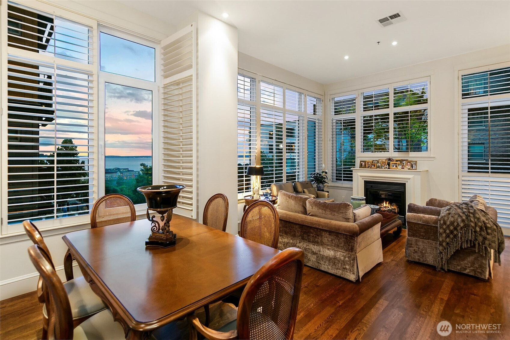 Stunning 2 bedroom NW corner Water View Condo perfectly perched above Elliot Bay, mins to Iconic Sculpture Park & Space Needle. Ideal location, just 2blocks to the waterfront. You'll feel like a tourist, enjoy dining at Edgewater hotel, Kraken games or concerts at Climate Pledge, fresh food from Pike Place market. Near Bainbridge ferry- Ez walks to stadiums. Friends will always want to visit you for the weekend, especially with 2 guest suites. Enjoy neighbor grab & go deli, nail salon & coffee shop. A well run boutique condo community, The Ellington offers owners lounge, gym & roof deck. A great lock and leave lux condo near Queen Anne and downtown. This location is one of Seattle's best kept secrets, I call it the "Elliot Bay neighborhood". Step into a "Broadmoor/Madison Park style home" at just the right size! Located on arguably the best side of the building home offering soaring 11-foot ceilings that amplify the sense of space and light. Curated finishes throughout, including herringbone-patterned hardwood flooring ,custom French inspired kitchen with solid wood cabinetry. Elegant oversized-Double French arched doors leading to the primary suite with stunning hardware, cedar-lined closet raised, 8-foot interior doors, and a bath design that is so pretty! Custom wood plantation shutters & enhanced custom lighting throughout, creating an atmosphere of timeless luxury & comfort + A/C, 2pk, 1 storage,24/7 concierge.