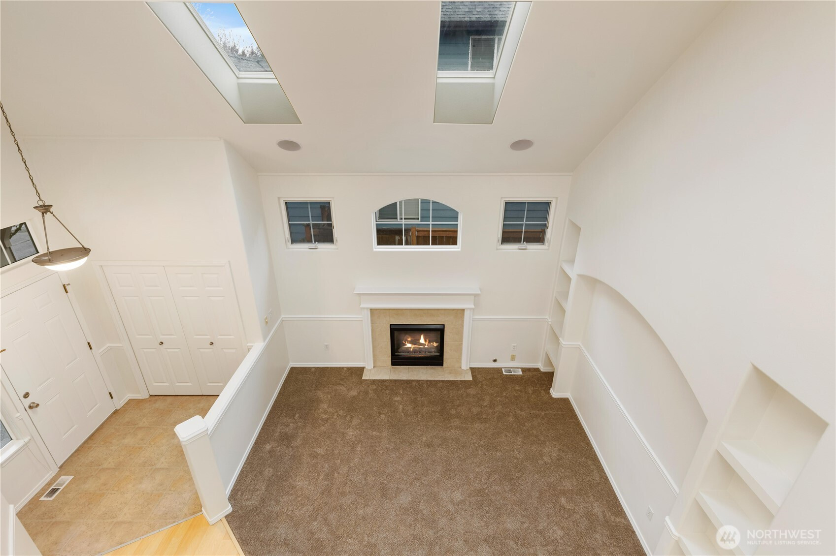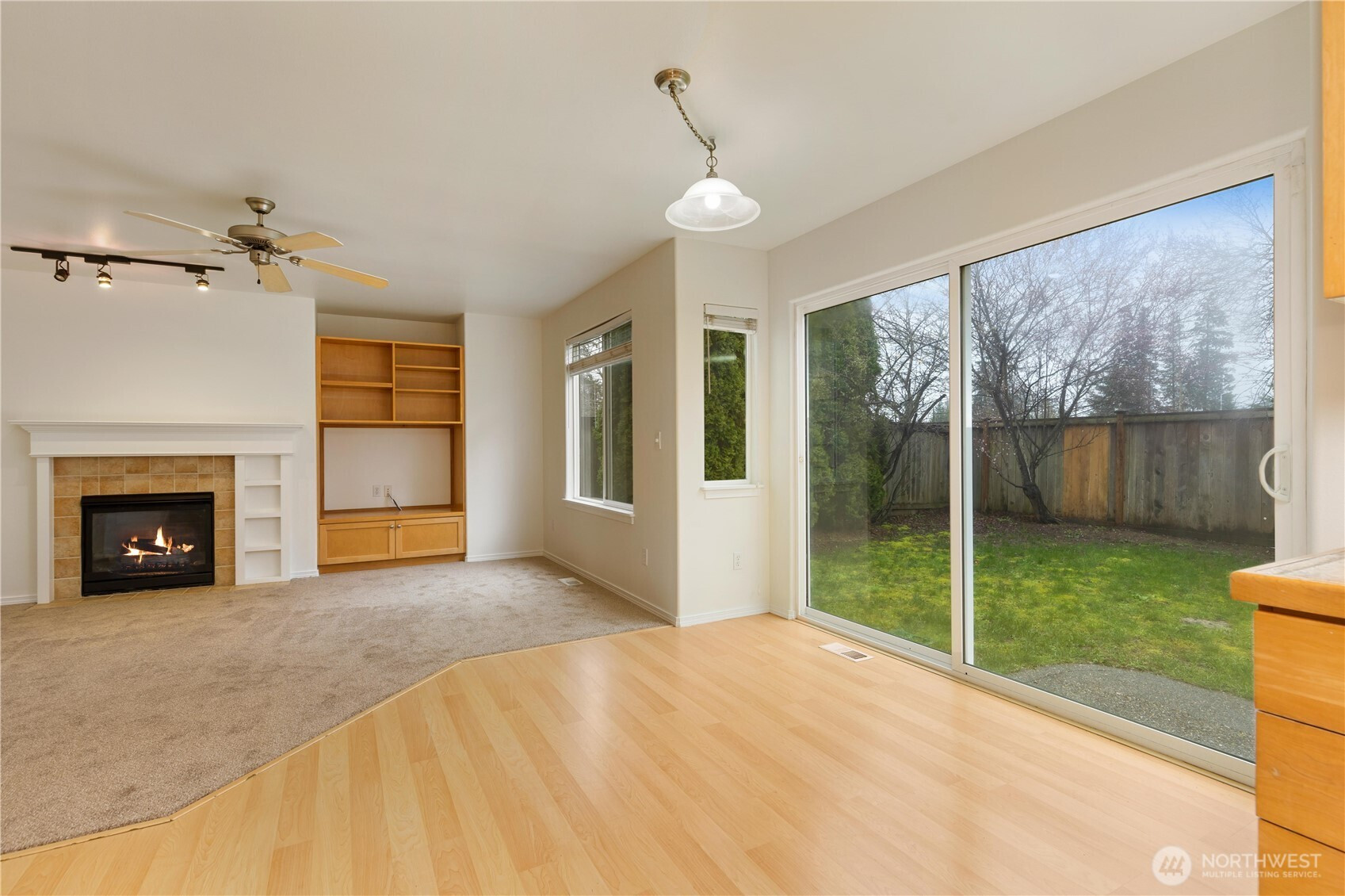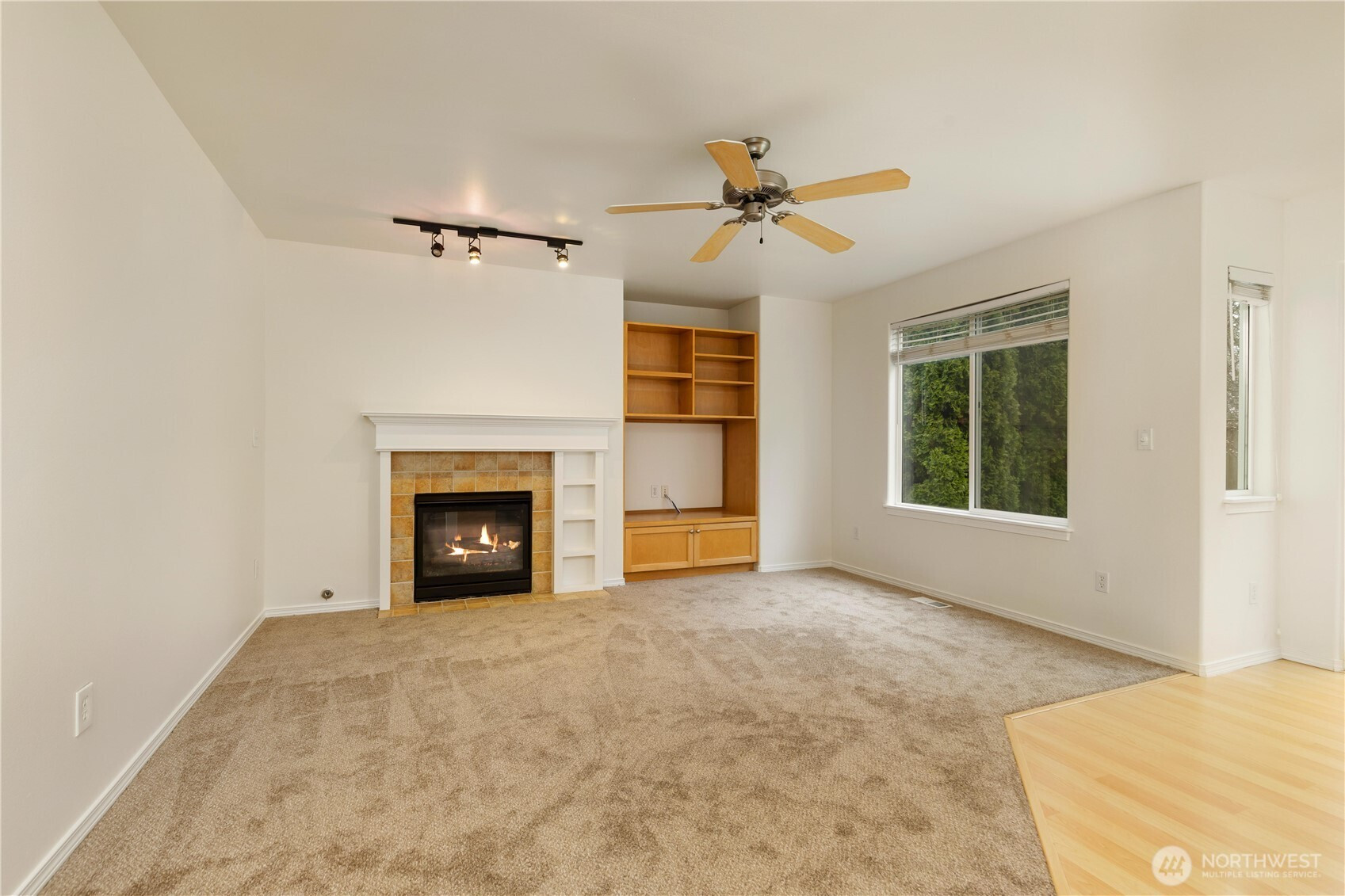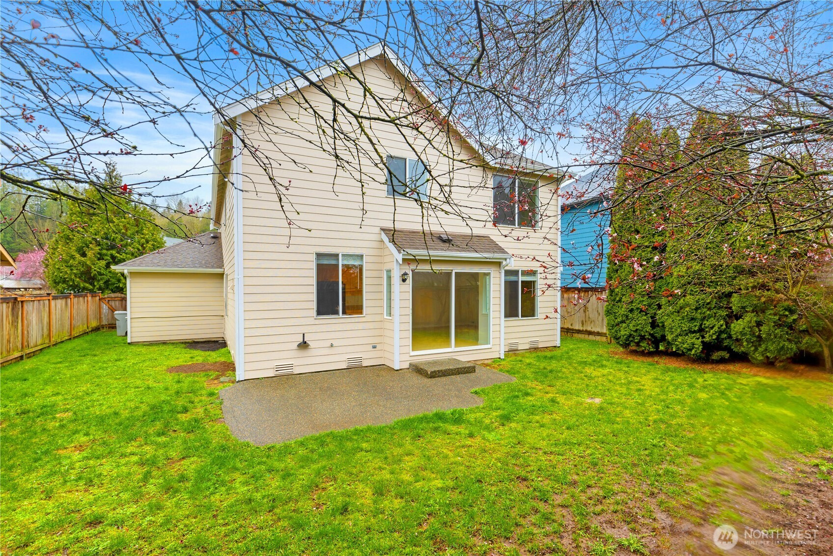 Welcome to this beautiful, well-maintained two-story home nestled in the desirable Hunter Oaks community. Thoughtfully designed for comfortable everyday living, the main level features a bright and inviting family room with vaulted ceilings, skylights that fill the space with natural light, built-in shelving, and a cozy fireplace. A separate living room with its own fireplace offers additional space to relax or entertain. The kitchen features a walk-in pantry and plenty of workspace for meal preparation and hosting. A formal dining room, powder bath, and dedicated laundry room complete the main floor. Upstairs, you'll find a versatile bonus space, the spacious primary suite with a five-piece ensuite bath, and two additional bedrooms and a full bathroom. Step outside to enjoy the fully fenced backyard with patio—perfect for outdoor dining, relaxing, or entertaining—along with the added convenience of a three-car garage offering plenty of storage and parking.