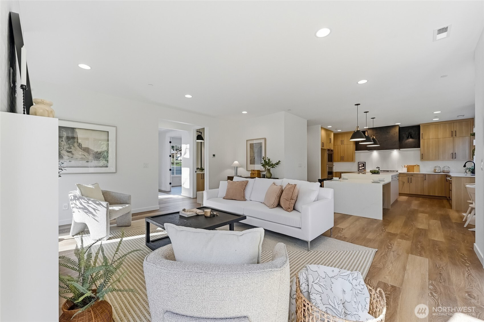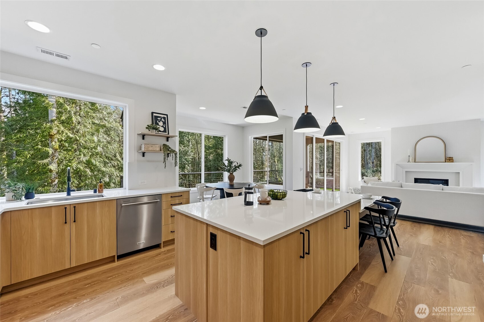 L O C A T I O N...quick access to MPV Highway, but tucked off in a private-cul-de-sac, you'll find this sprawling, landscaped, totally useable 2 + acre treasure. Home has a beckoning covered entry that opens to generous open rooms. First floor den, a kitchen large enough for big crowds & a kitchen island for miles. T ons of cabinetry & pantry. Stunning appliances. Big eating area, up-to-the-minute design choices throughout grab your attention. Great room setting makes you want to linger w/plenty of seating area, fireplace & walls of windows to let the light in. The big sliders open to a super-sized deck with space for large pieces of furniture. You'll capture close up views of the Zen type landscaped setting here. Upstairs, you'll enjoy 4 bedrooms (the primary that spreads out, with closet space for you && your many accessories). 3 other good sized bedrooms & a spacious auxiliary full bath. There's a loft area too. Laundry room w/sink & cabinets. Big garage & room for a shop or sports court, gardening & entertaining. Park your RV too. LIKE TO BIKE..this is the spot - take the path on the property that joins Henry's Ridge bike trail, tucked in the lush landscaping behind you. All the latest Curtis Lang Wows, stellar building materials, artistry & building standards. Mere minutes to 4 corners for shopping, restaurants, medical services & heartbeat of Maple Valley. The setting offers serentiy, elbow room, RV parking. No HOA, independancy w/well and septic. Take a look
