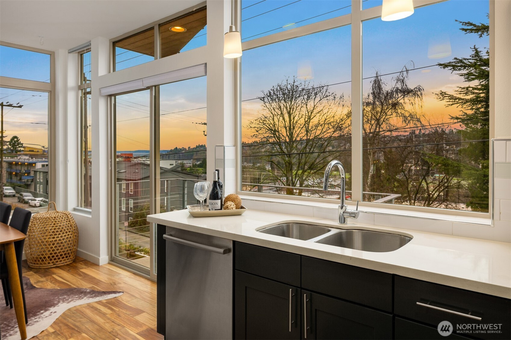 Set above a quiet Queen Anne street, this refined residence captures expansive, ever-changing views from multiple levels, spanning Puget Sound, the city skyline, and the Olympic Mountains. Southwest exposure fills the open living spaces with natural light, creating a warm, sophisticated setting for both everyday living and entertaining. Thoughtfully designed outdoor areas extend the living experience, including a private deck off the living room and a rooftop deck ideal for enjoying sunsets over Smith Cove. The primary suite is a serene retreat with oversized windows, a spa-inspired bath, and a generous walk-in closet. Premium features include a gas range, air conditioning, covered parking, and additional storage. Moments to Whole Foods, Interbay Golf Course, Queen Anne amenities, Ballard, and a seamless commute to South Lake Union and Downtown Seattle.
