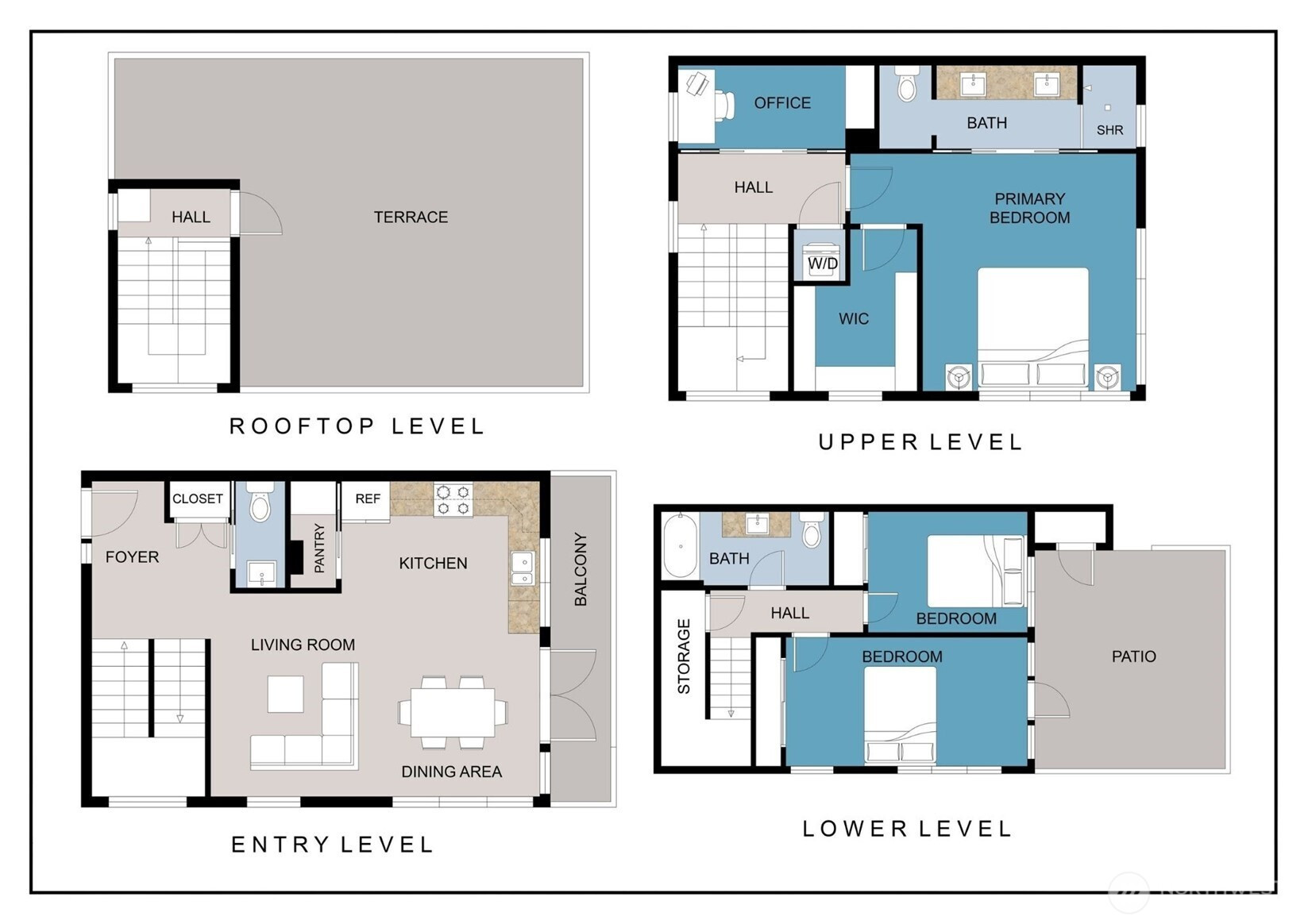 (503) 893-8874Tucked on a quiet, tree-lined street, this 3BD/2.5BA townhome offers sunny SW exposure with Sound, city, and mountain views. Enjoy watching cruise ships sail in from your bright, open kitchen with chef-inspired appliances, flowing seamlessly to the living room and patio for indoor–outdoor living. The rooftop deck is perfect for BBQs and sunsets. The window-wrapped primary suite with ensuite bath and den occupies the top floor, while two lower-level bedrooms provide flexibility for guests, office, or gym. Abundant street parking and quick access to Whole Foods, Interbay Golf, Queen Anne, Ballard, and downtown. A must see!