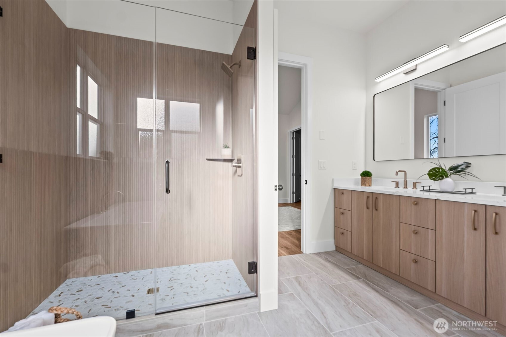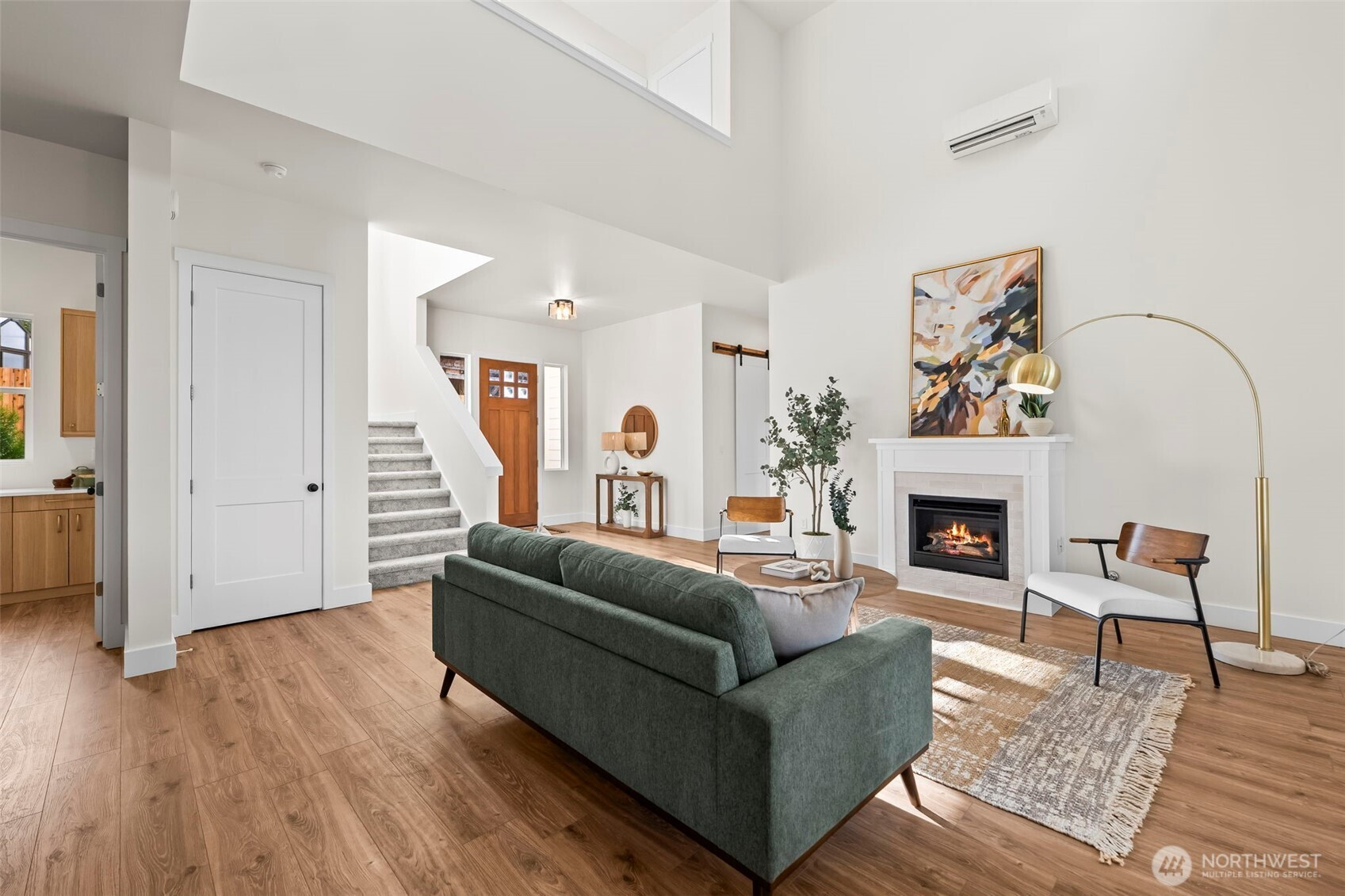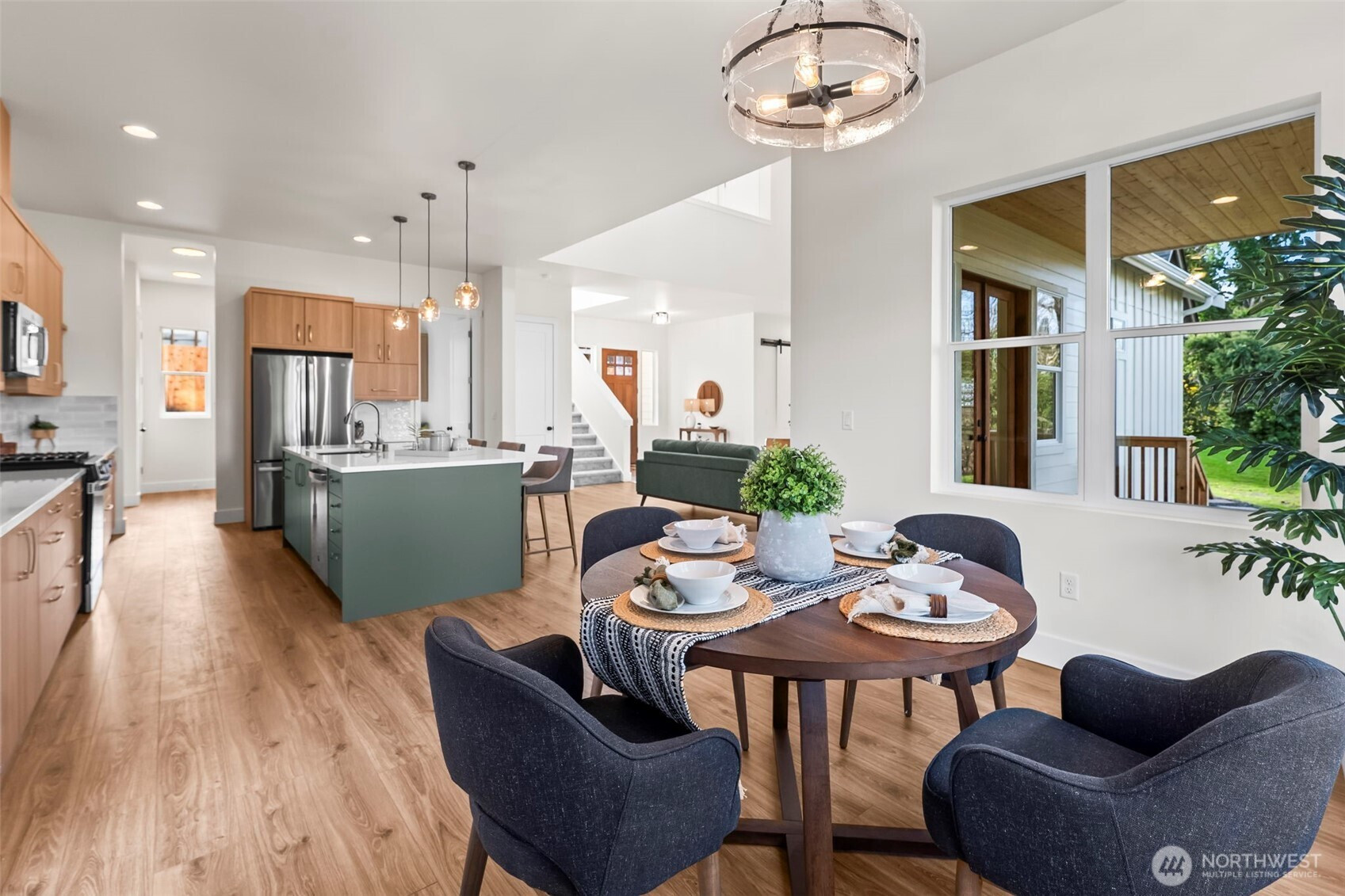 Stunning New Construction 4 bed 3 bath home on .78 acres in Enumclaw. Nestled in an established neighborhood, you'll experience privacy & a peaceful territorial view, unlike most new construction developments. Stylish board & batten exterior, w/ 2 car garage & a tall single bay detached garage. Step inside & experience the impressive great room with soaring ceilings, LVP flooring & solid wood doors. Kitchen features quartz counters, SS appliances, ample cabinetry & a large pantry. Main floor primary suite w/ gorgeous 5 piece bath & spacious closet, also dedicated office & full bath. 3 bedrooms & full bath upstairs. Cozy gas fireplace, plus efficient mini-split heat pumps in every room! Enjoy the beauty & low maintenance of new construction!
