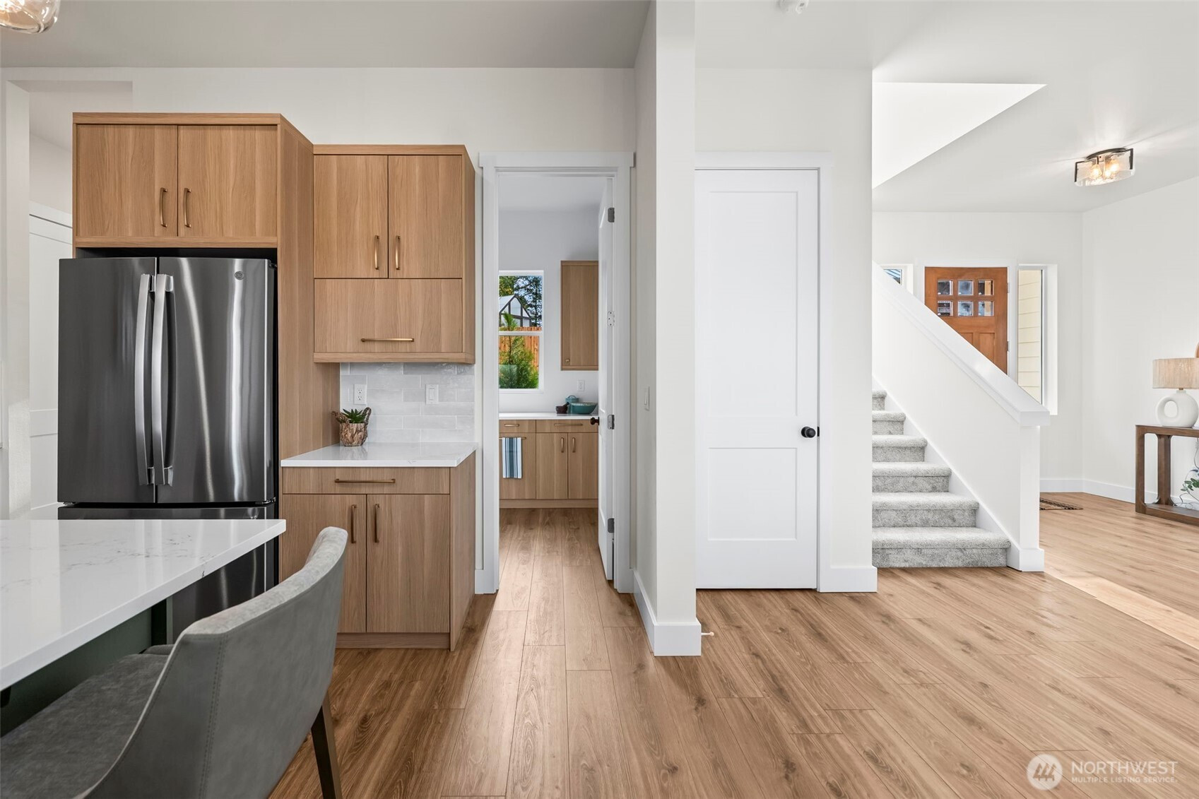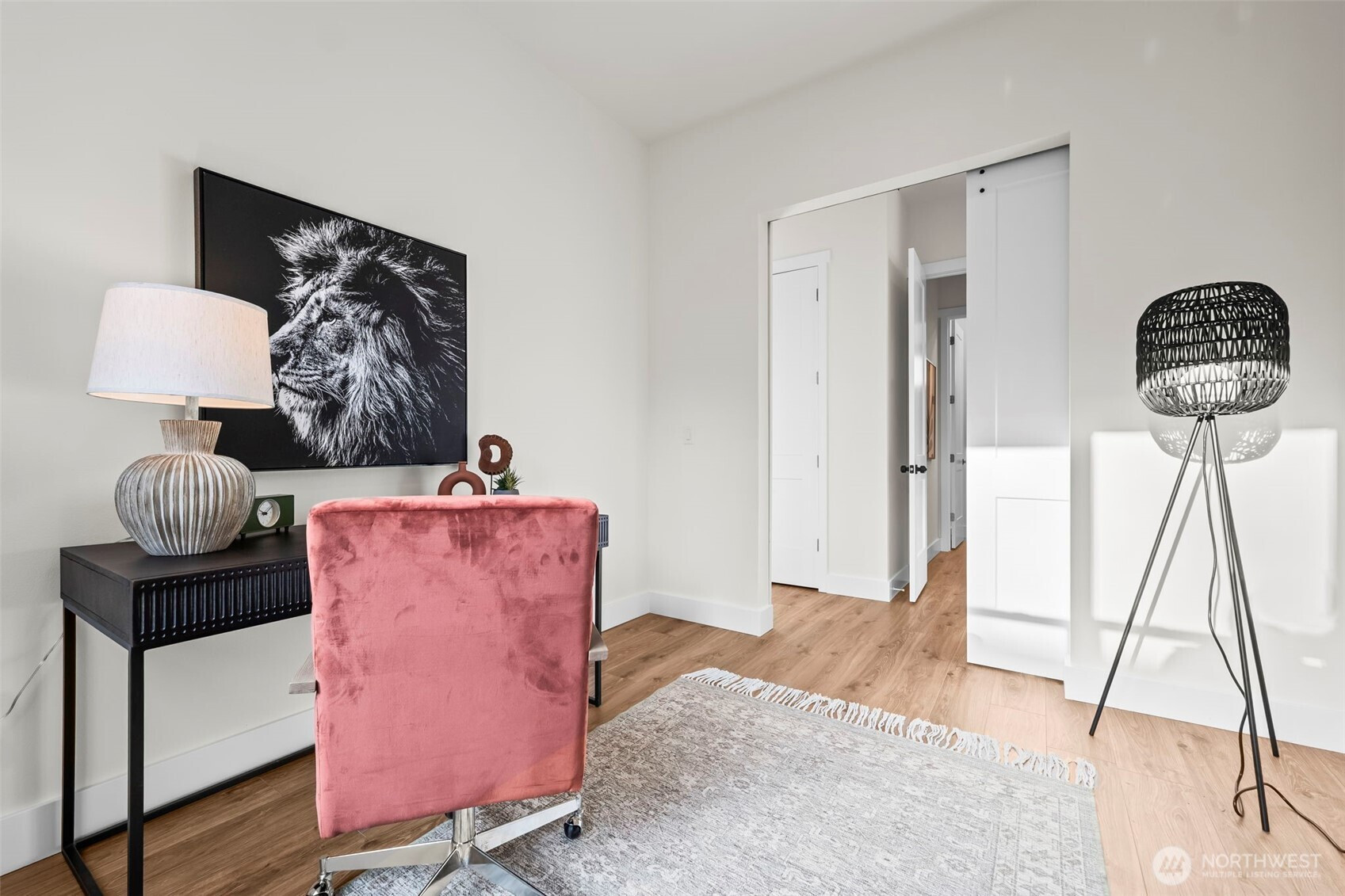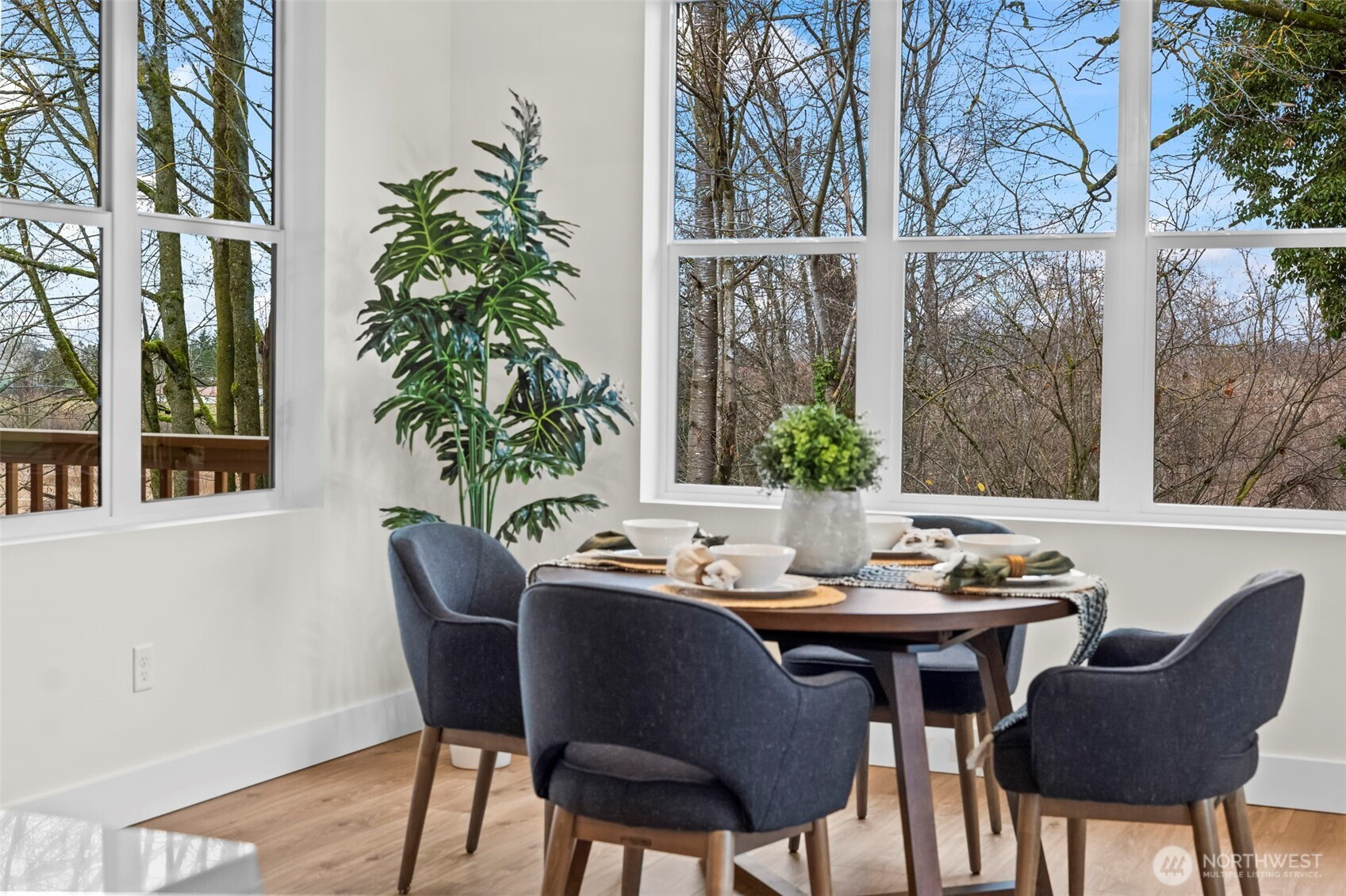 Stunning New Construction 4 bed 3 bath home on .78 acres in Enumclaw. Nestled in an established neighborhood, you'll experience privacy & a peaceful territorial view, unlike most new construction developments. Stylish board & batten exterior, w/ 2 car garage & a tall single bay detached garage. Step inside & experience the impressive great room with soaring ceilings, LVP flooring & solid wood doors. Kitchen features quartz counters, SS appliances, ample cabinetry & a large pantry. Main floor primary suite w/ gorgeous 5 piece bath & spacious closet, also dedicated office & full bath. 3 bedrooms & full bath upstairs. Cozy gas fireplace, plus efficient mini-split heat pumps in every room! Enjoy the beauty & low maintenance of new construction!