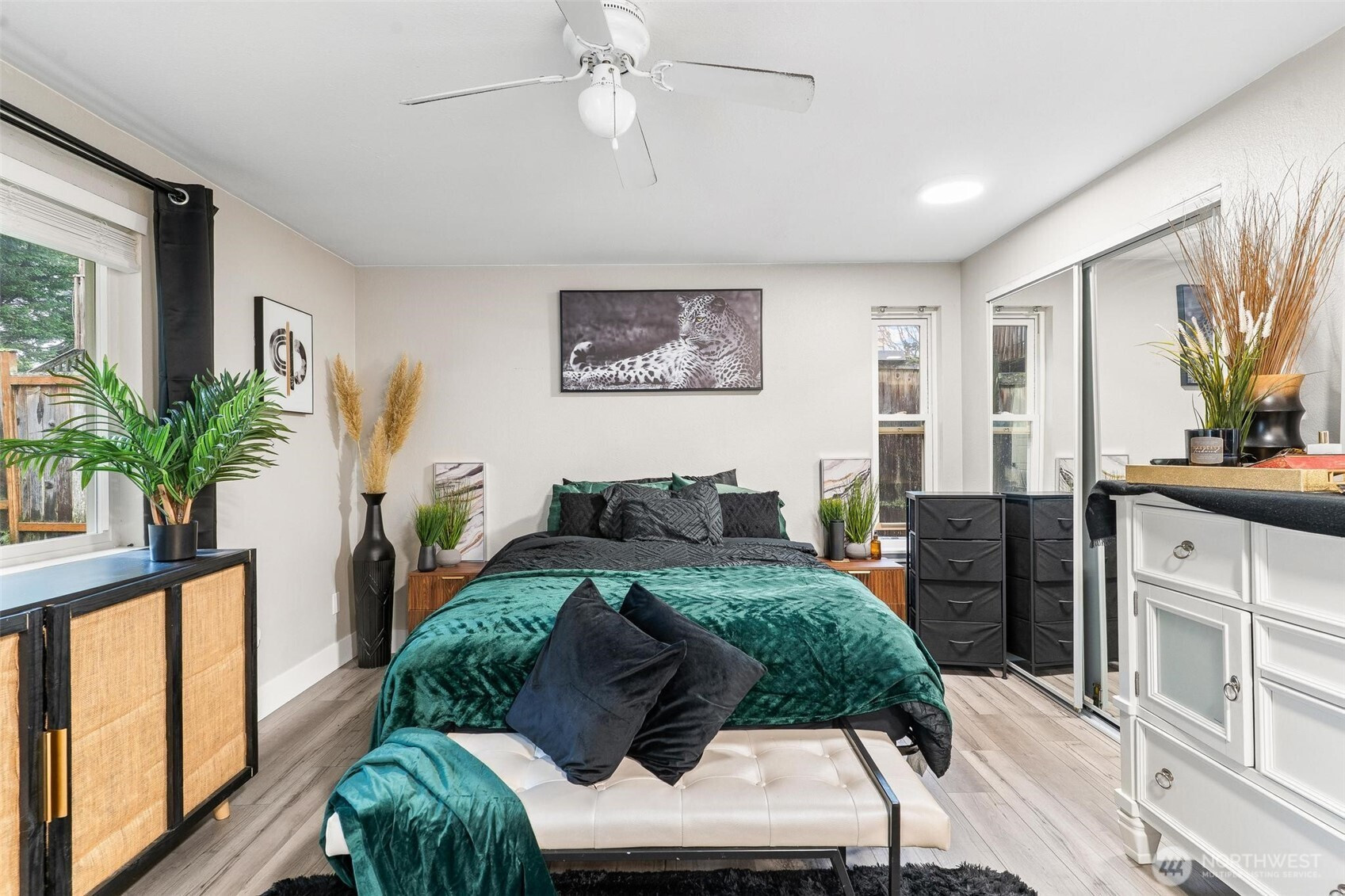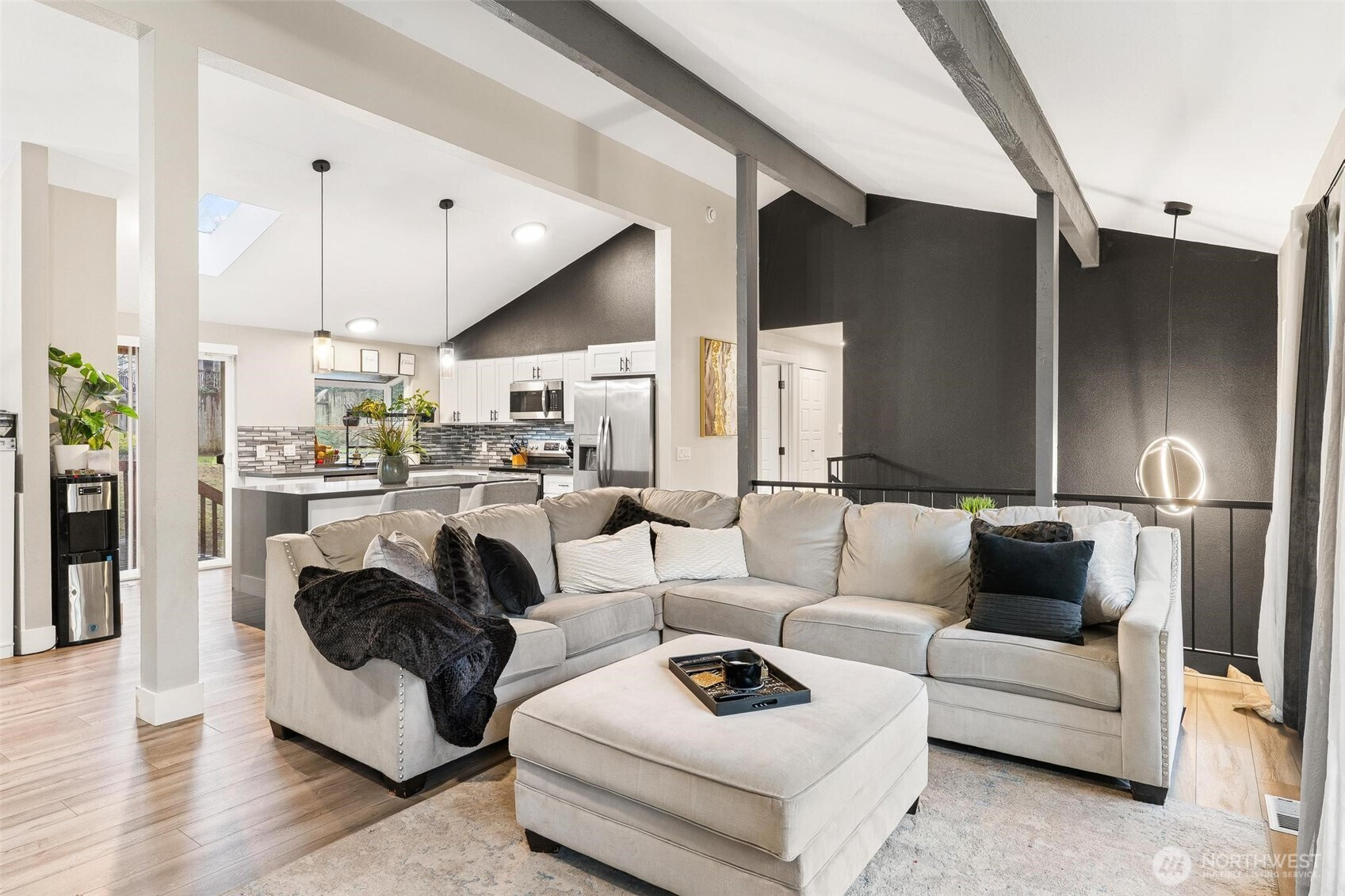 Modernized home offering immense opportunity with two separate living spaces. Enjoy open-concept living on the main floor, featuring a spacious kitchen island, sleek finishes, and a striking fireplace—mirrored by a second fireplace downstairs. Updates shine throughout, including an updated roof and refreshed bathrooms. The lower level provides a second kitchenette, open living area, custom closet, and bedroom, perfect for guests or multi-generational living. Ample storage throughout and a prime location near endless amenities and freeway access make this home an exceptional find. Rare Opportunity, Seller has approved DADU Plans!