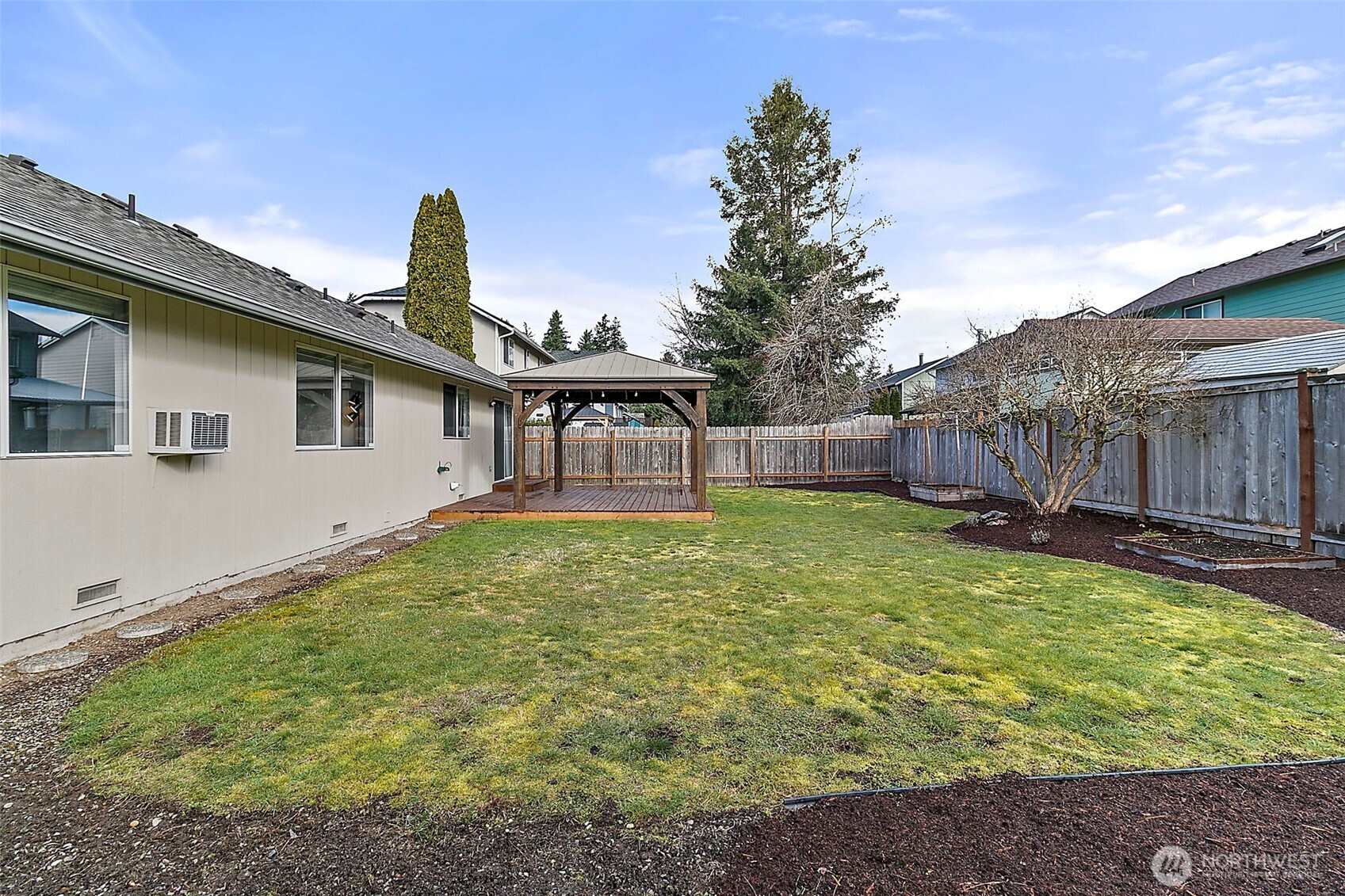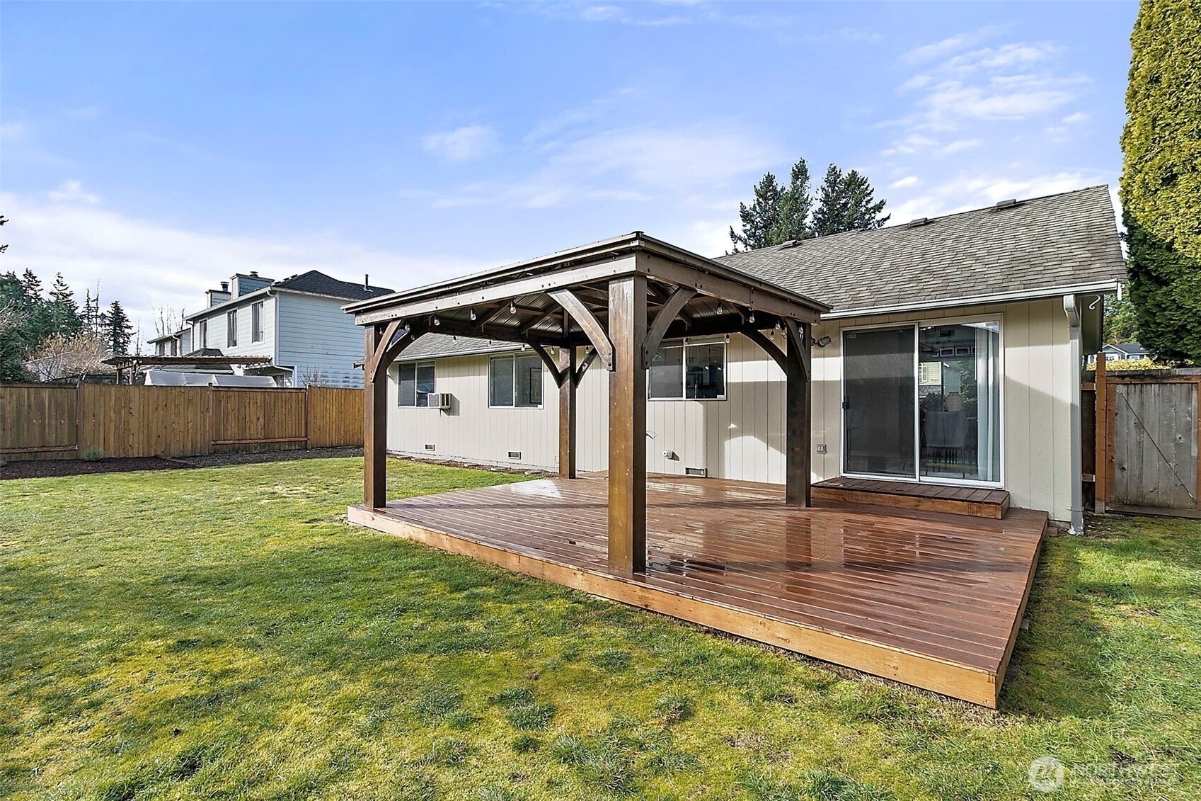 Welcome to this charming rambler nestled in the desirable Diamond Hills community of Maple Valley. This well-designed home offers a functional and inviting layout, featuring vaulted ceilings in the living and dining areas that flow into a bright kitchen filled with natural light. The primary suite includes a walk-in closet and a full bath. A brand new vanity has been installed in the guest bathroom. An attached two-car garage provides ample parking, storage, and everyday practicality. Step outside to enjoy a fully fenced backyard that offers a private setting—perfect for relaxing, entertaining, gardening, or hosting gatherings. Close distance to nearby parks, trails, and shopping. This home blends comfort, functionality, and location.