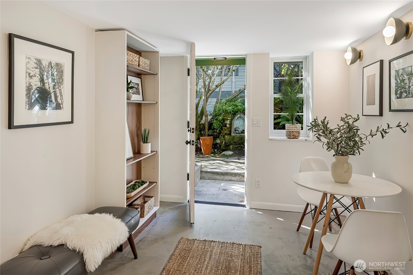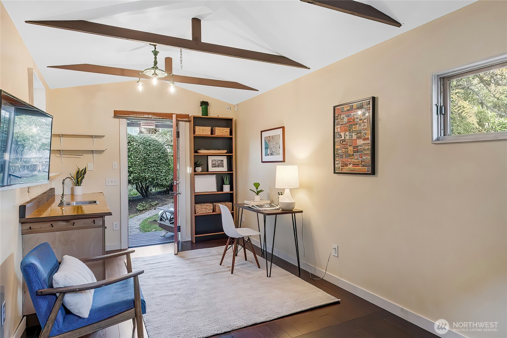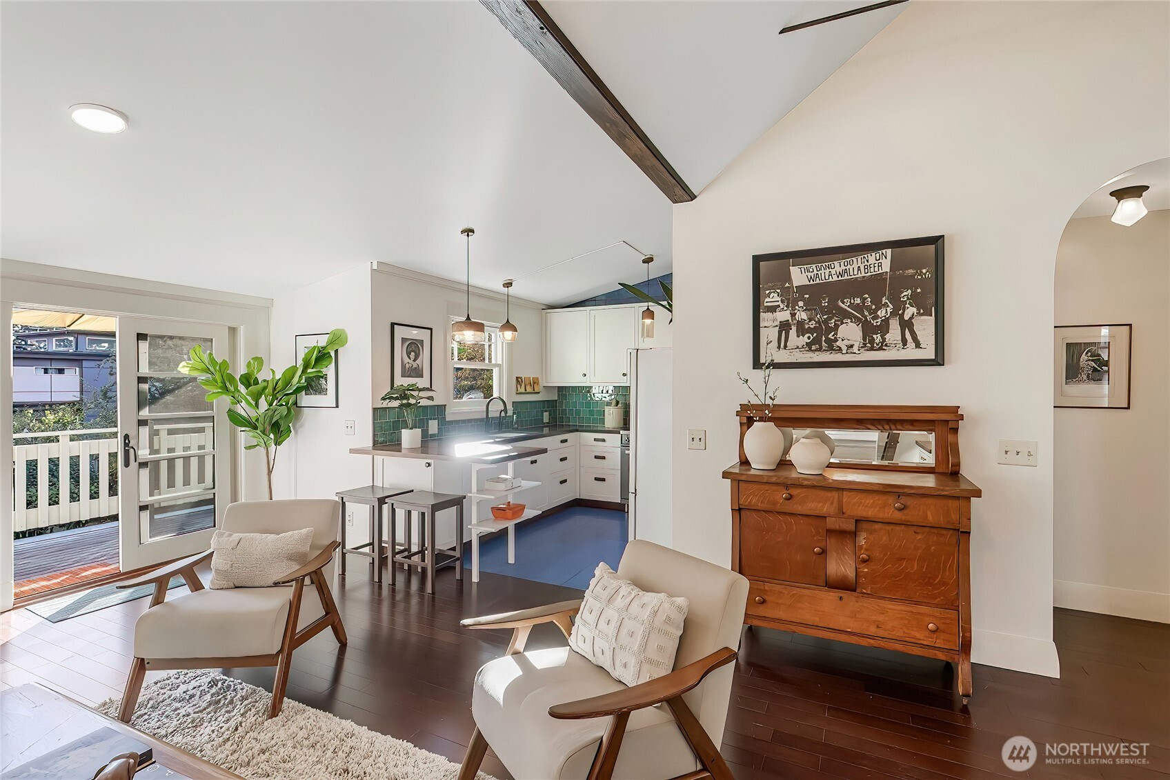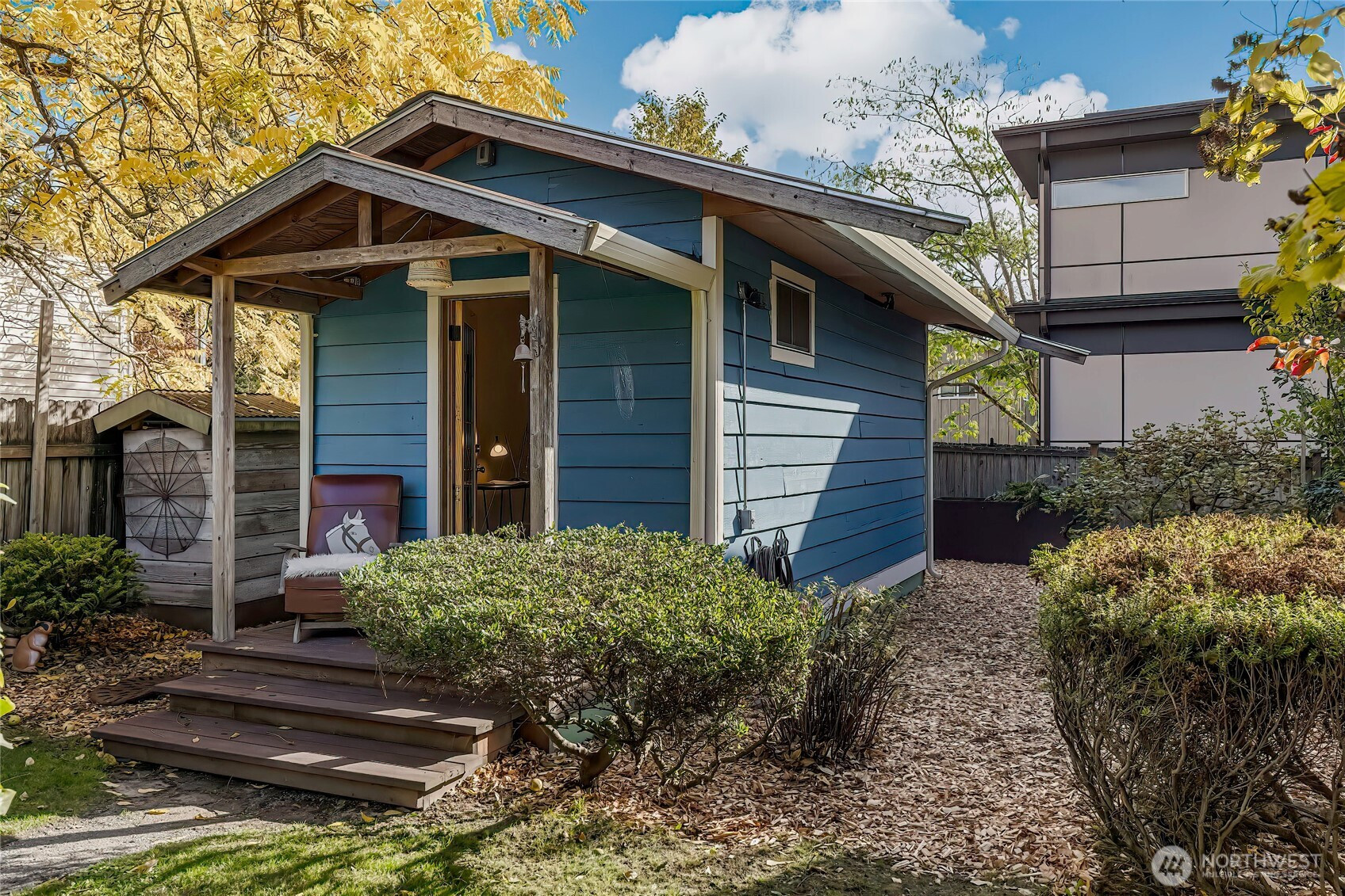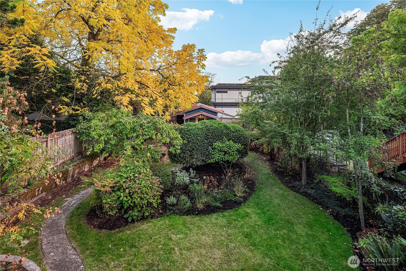 Soaring ceilings, deliberate finishes, & inspired craftsmanship define this Central Area home. The grand living area, anchored by a handsome built-in bookshelf w/ ladder, flows to a generous south-facing deck. The kitchen is a study in elegance & function, featuring induction cooking, custom cabinetry, & thoughtful detailing. A permitted lower-level ADU offers heated concrete floors, unique finishes & flexible living. The detached studio is open to endless possibilities. All systems updated, including electric, plumbing, heat, windows & more. Curated gardens create a rare in-city sanctuary, with a surprise waiting around every turn. Pre-inspected! This home blends thoughtful design with everyday ease just moments from downtown & light rail.