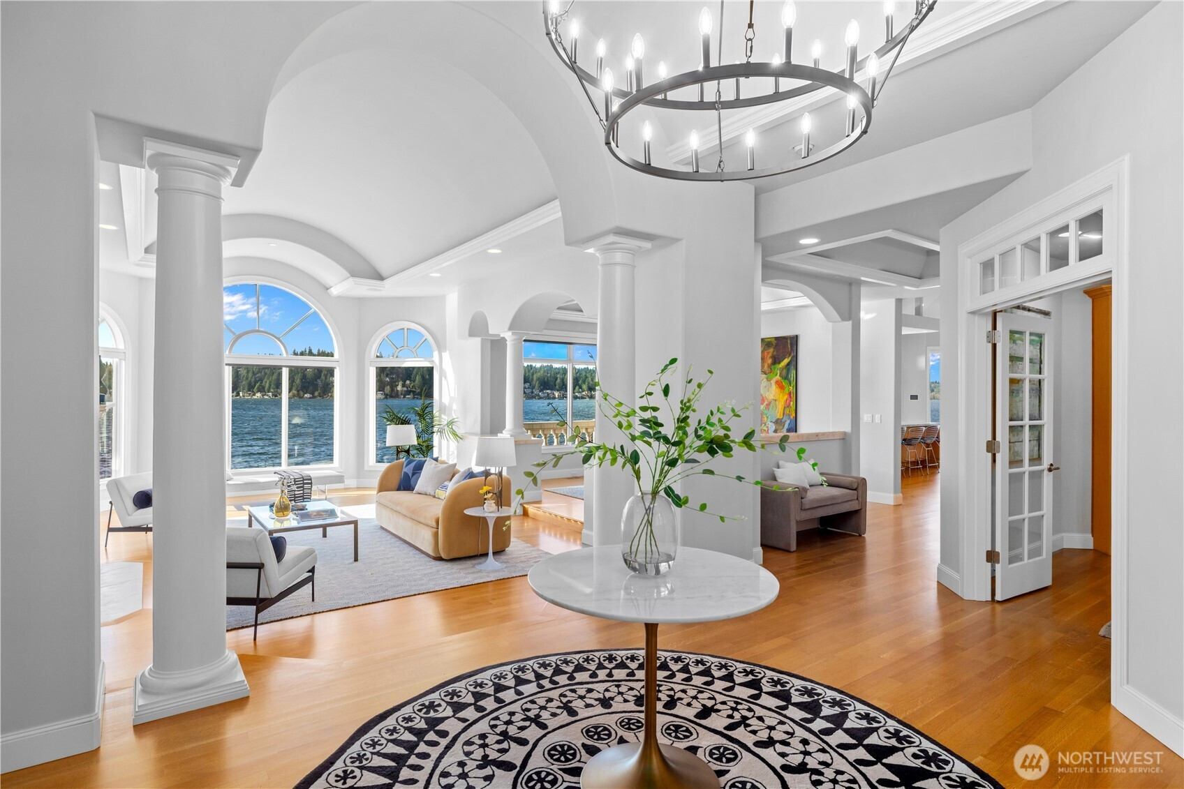 Along 120’ of Lake Sammamish shoreline, this gated waterfront estate blends modern ease with an irresistible connection to the water. Sunlight pours through arched windows, catching the rhythm of tumbling waves and the lake’s soft shimmer. Thoughtfully updated living spaces flow with ease—two contemporary kitchens, a lake-level entertaining hub with a bespoke wine wall, and two-lake-facing primary suites, including a tranquil main-level retreat. Outside, the covered pool, lush lawn, and private dock with boat lift invite inviting refreshing swims, peaceful pauses at the shore, and evenings washed in warm sunset color. Smart-home lighting, security, and audio enhance daily ease. A rare estate where the rhythm of lake life becomes your own.