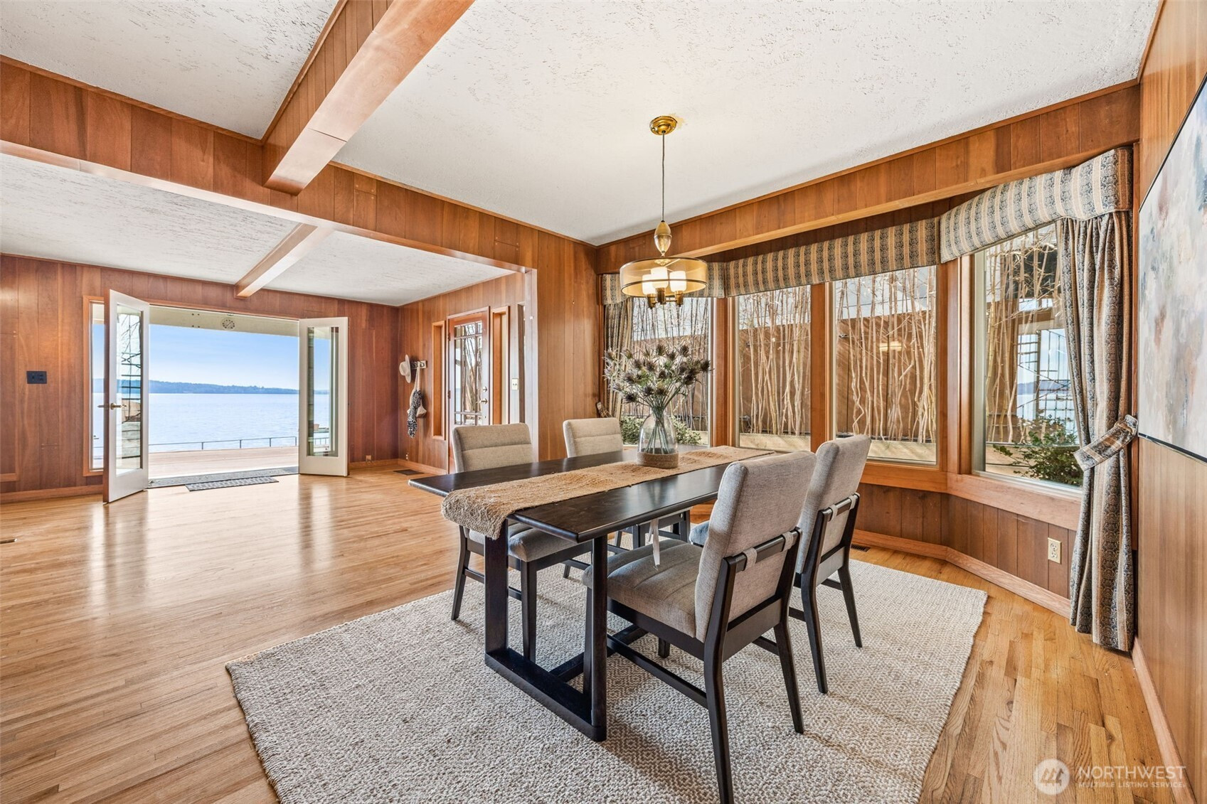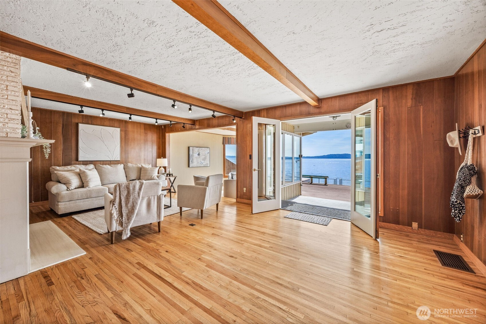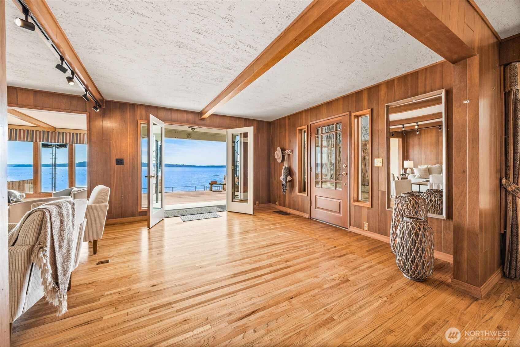 Welcome to this waterfront retreat in Three Tree Point! It's like living on a houseboat, only better. 40' of bulkhead beachfront with stunning views out to Puget Sound, top of Mt. Rainier and the Olympic Mountains! Entertain on the massive patio and deck combination with steps down to your own beach. Wide open entry with French doors bringing the outside in. Inviting formal living room with gas fireplace and adjacent sunroom, offer separate living areas with plenty of windows to take in the views. Drive-up 3-car garage with finished rooms above for home office, shop, exercise studio and more! Would make and ideal ADU/guest apartment (currently not plumbed for water/sewer). Enjoy year-round comfort with central A/C and gen. ready.