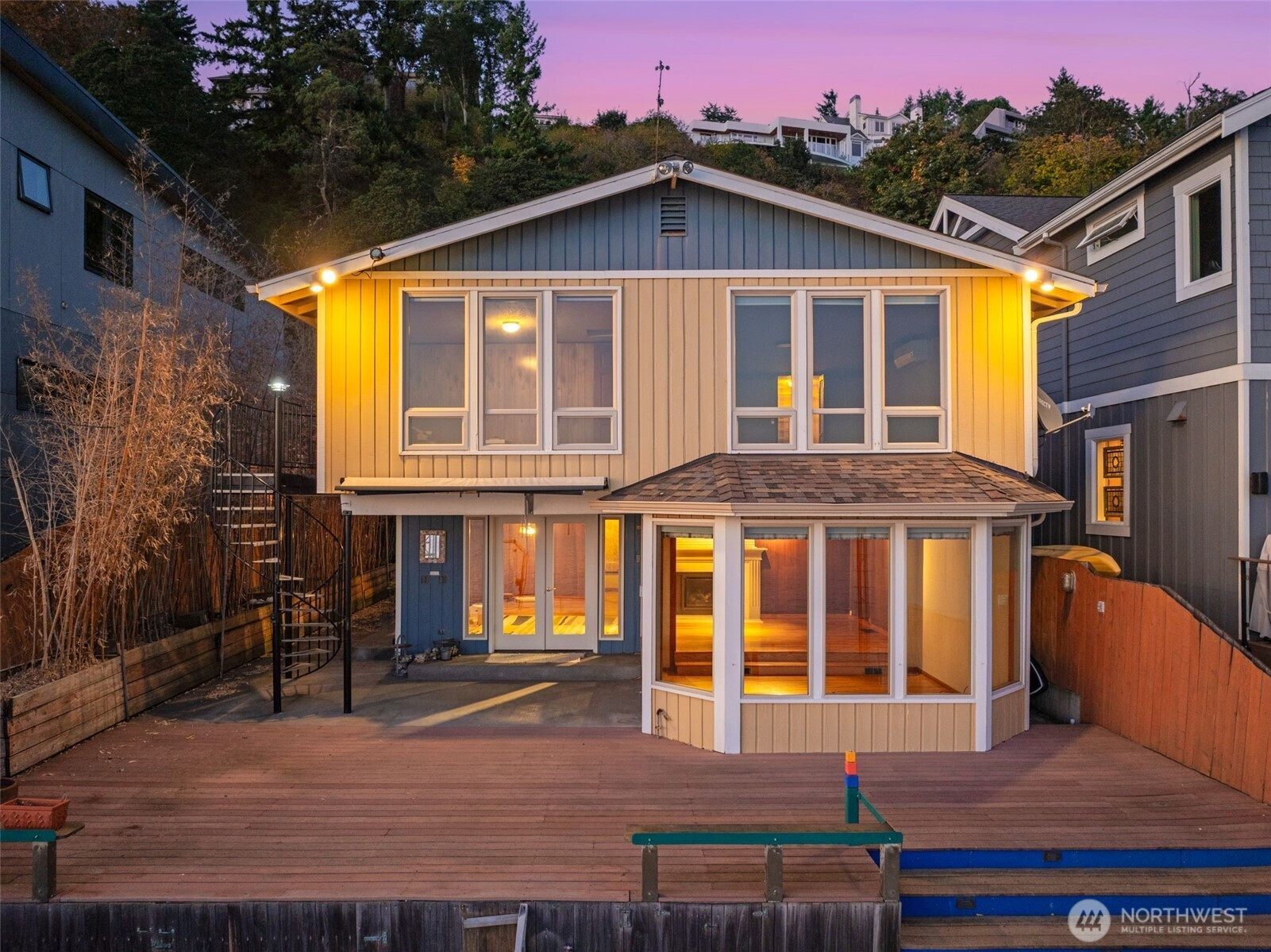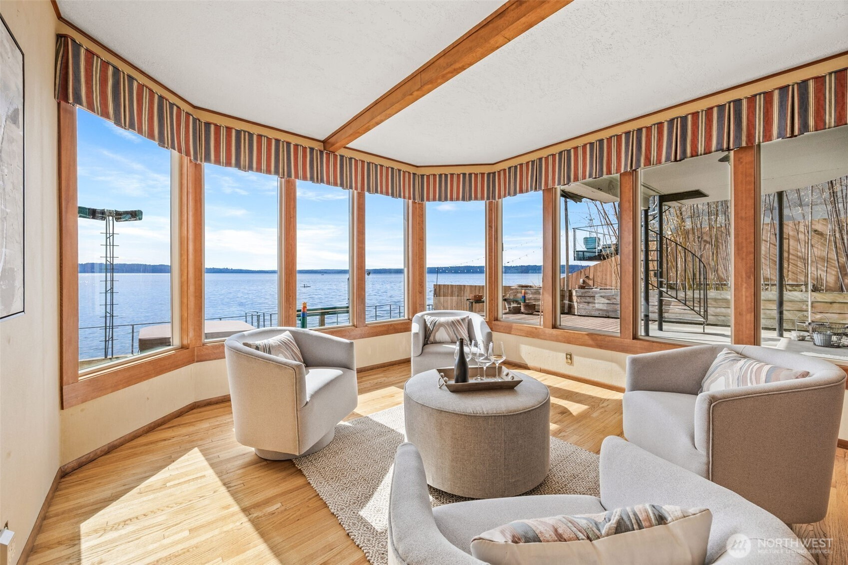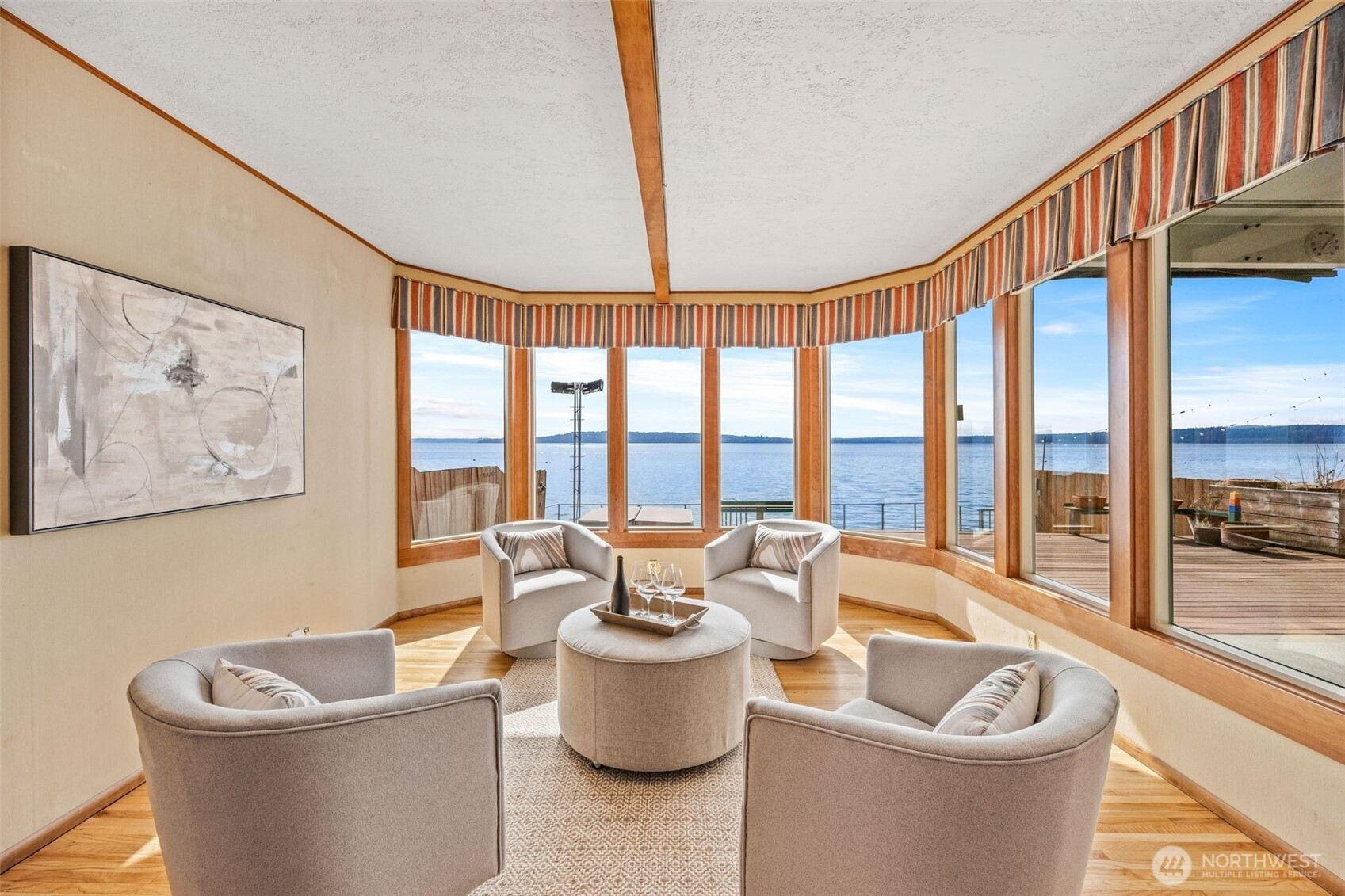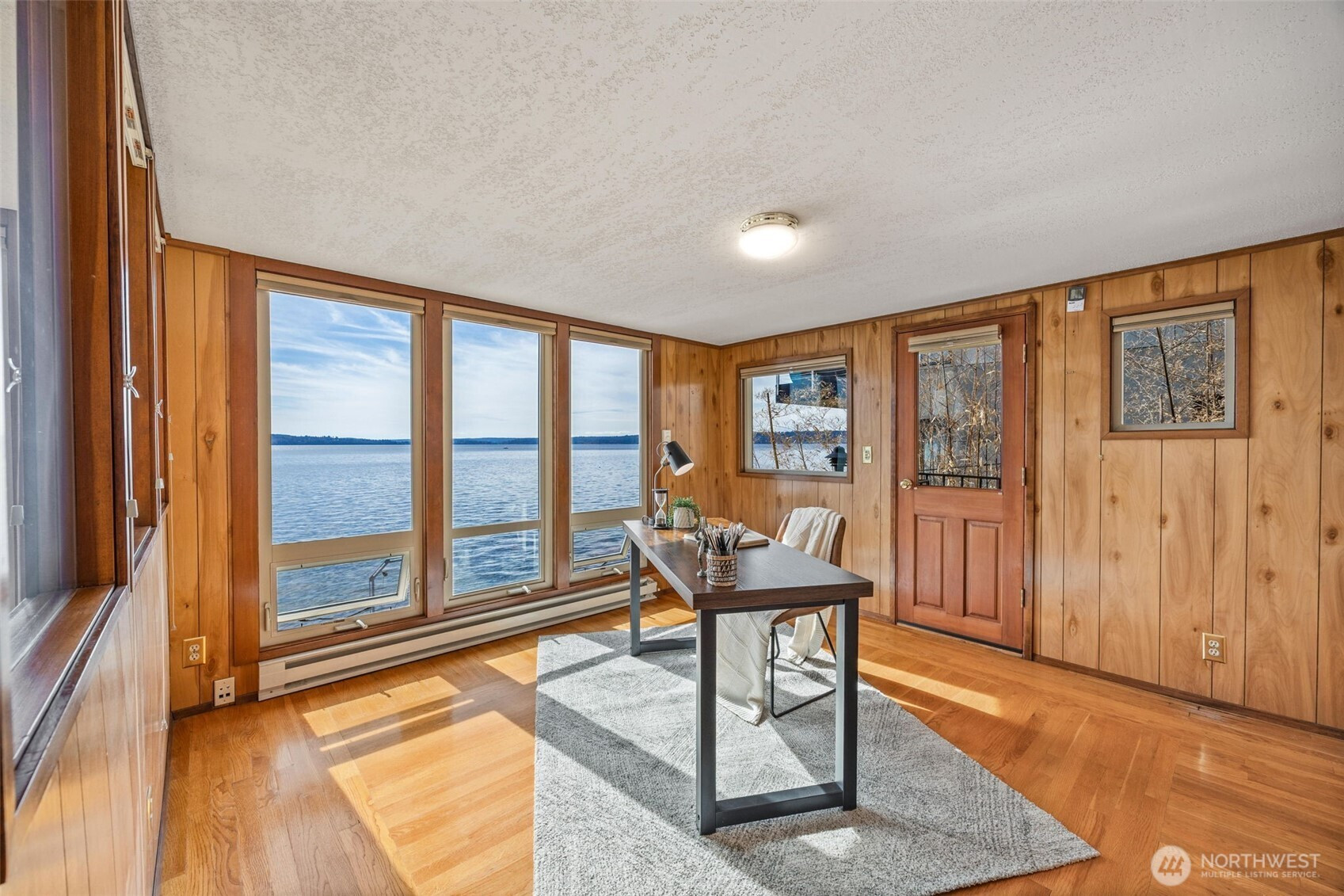 Welcome to this waterfront retreat in Three Tree Point! It's like living on a houseboat, only better. 40' of bulkhead beachfront with stunning views out to Puget Sound, top of Mt. Rainier and the Olympic Mountains! Entertain on the massive patio and deck combination with steps down to your own beach. Wide open entry with French doors bringing the outside in. Inviting formal living room with gas fireplace and adjacent sunroom, offer separate living areas with plenty of windows to take in the views. Drive-up 3-car garage with finished rooms above for home office, shop, exercise studio and more! Would make and ideal ADU/guest apartment (currently not plumbed for water/sewer). Enjoy year-round comfort with central A/C and gen. ready.