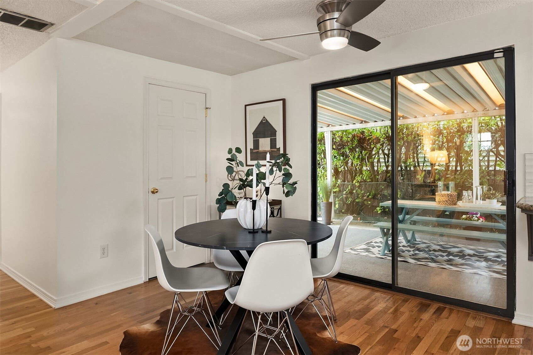 Experience the charm and convenience of this delightful single level three bedroom home located in the heart of the sought after Westwood community. Quietly set back from the street on a large and mature landscaped corner lot with beautiful hardwood floors and a cozy wood- burning fireplace. Sweet kitchen with granite and stainless appliances allows for easy access to the attached garage. Slider off dining area opens to a covered porch and deck for outdoor dining and entertaining year-round. Generous primary bedroom + 2 more bright and sunny bedrooms make for the ideal lay-out. Fully fenced yard ensures privacy and security. Ideally located near parks, playfields and Westwood Village. Convenient access to the WS bridge. Come and enjoy all that West Seattle has to offer.