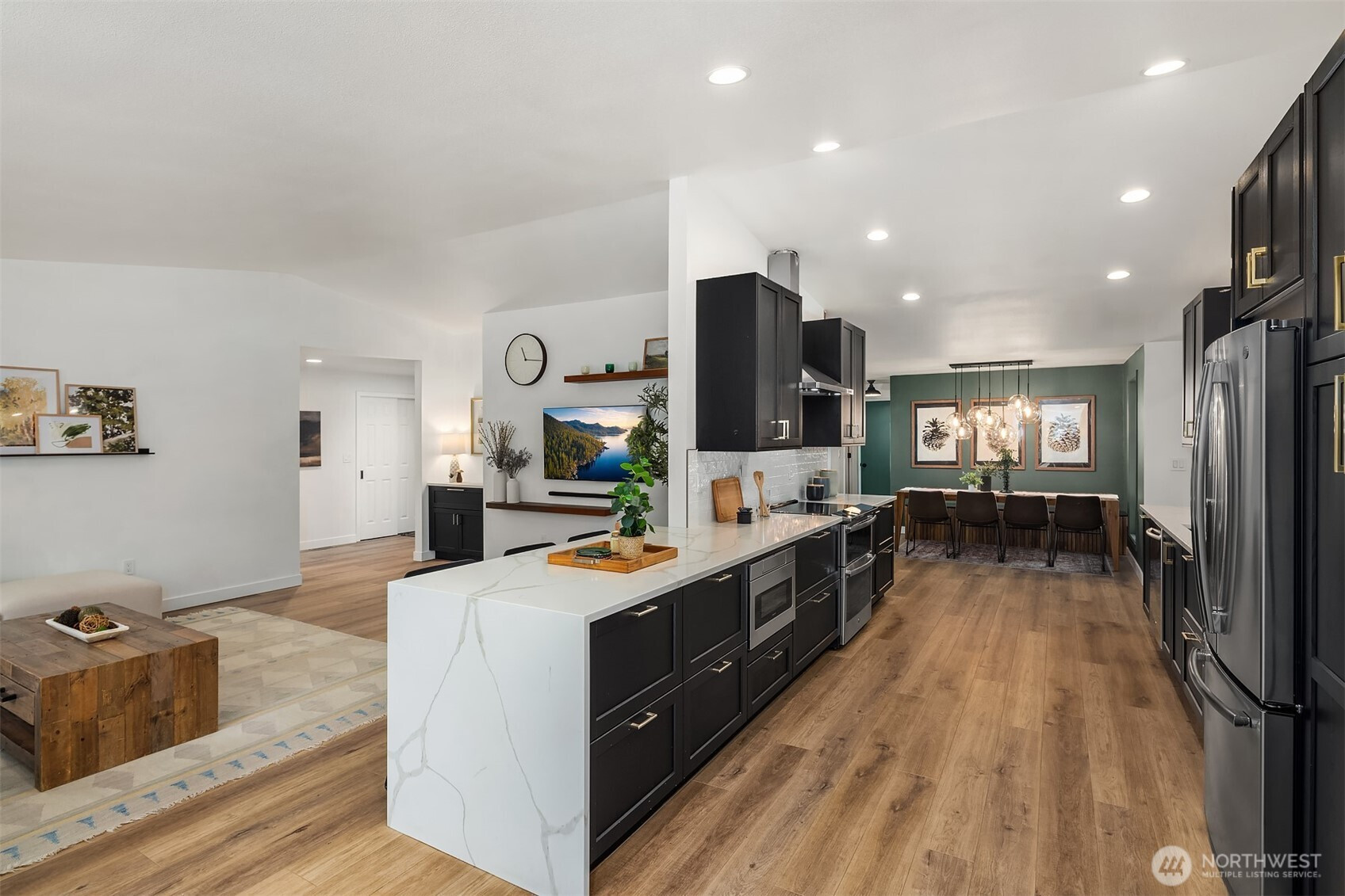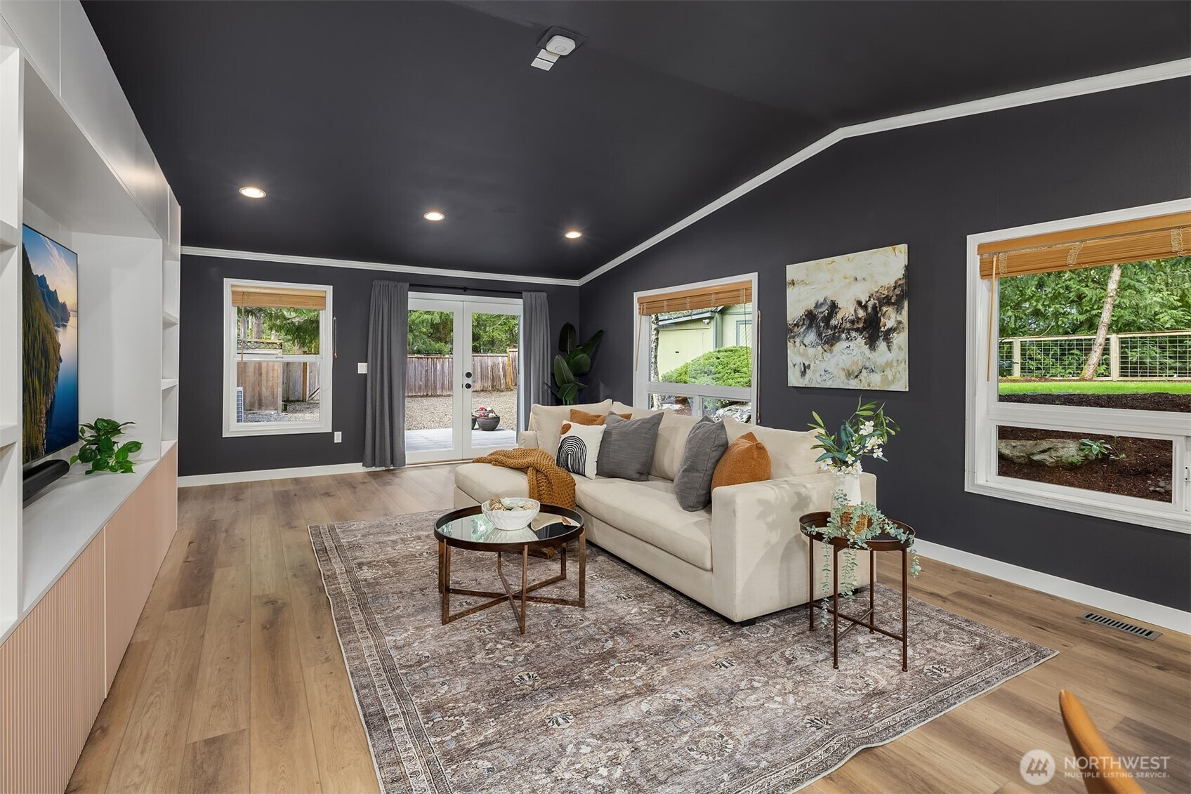 Pristine Sammamish retreat on over 3/4 acre lot! Enjoy the convenience of single level living with the elegance of modern design. Inviting, sunlit interior highlights a spacious family room that opens to the designer chef's kitchen, complete with quartz countertops, subway tile backsplash and stainless appliances. The formal dining and living rooms offer comfort and elegance for entertaining or everyday living. Large bonus room with a vaulted ceiling provides space for media, playroom or lounging. Generous primary with luxurious ensuite bath, complete with heated floors. Three additional bedrooms. Fully fenced yard includes a little something for everyone - play structure, storage shed, fitness room, garden space plus boat or RV parking. Central A/C & generator ensure year-round comfort. Access to top rated Issaquah schools, Beaver Lake Park, nearby shops & dining. A true gem, don't miss it!