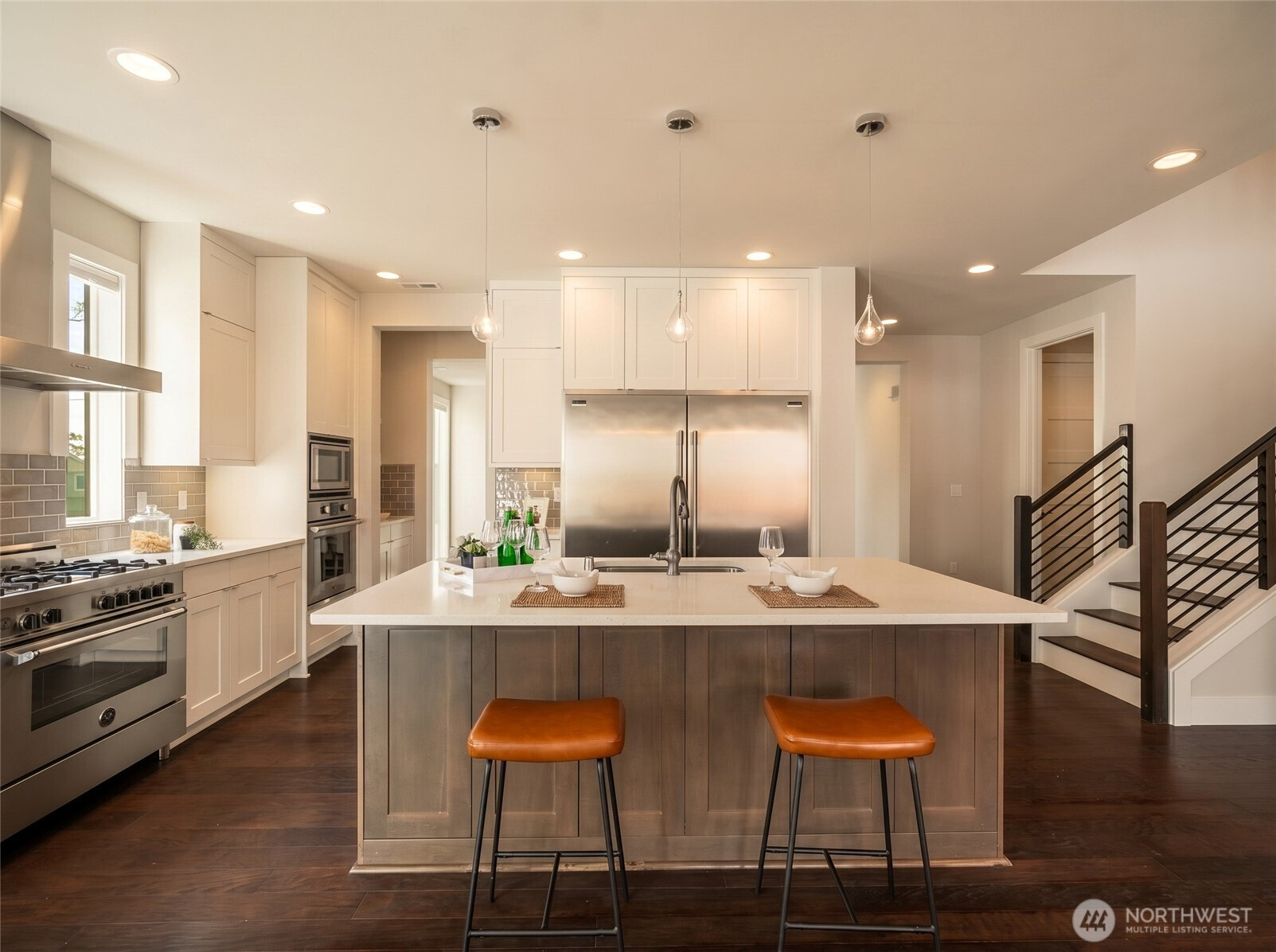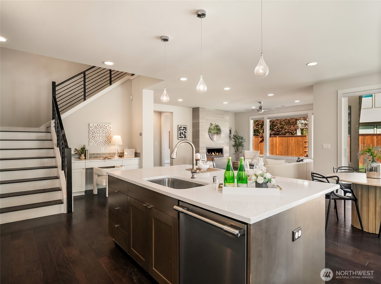Built with quality craftsmanship and designed for lasting comfort, this stunning Northwest Contemporary in Kennydale offers exceptional space, smart functionality, and beautiful lake-and-mountain outlooks. Designed with an ideal east-west orientation, this expansive home enjoys gorgeous natural light, Lake Washington views from two bedrooms, and unforgettable sunsets over the Olympic Mountains. The main level features a den, guest room, formal dining room, and a gourmet kitchen with oversized island, double ovens, commercial-grade appliances, and abundant storage, all flowing seamlessly into the vaulted great room with gas fireplace. Upstairs, a light-filled loft and bonus room add even more flexibility, while the generous primary suite captures sweeping views and includes a luxurious bath with heated floors and a walk-in closet. Thoughtfully designed with highly efficient use of space, covered outdoor living, a level fenced yard, and a 3-car tandem garage. Tucked on a quiet, low-traffic street with quick access to I-405, Downtown Bellevue, Sea-Tac, and Seattle.