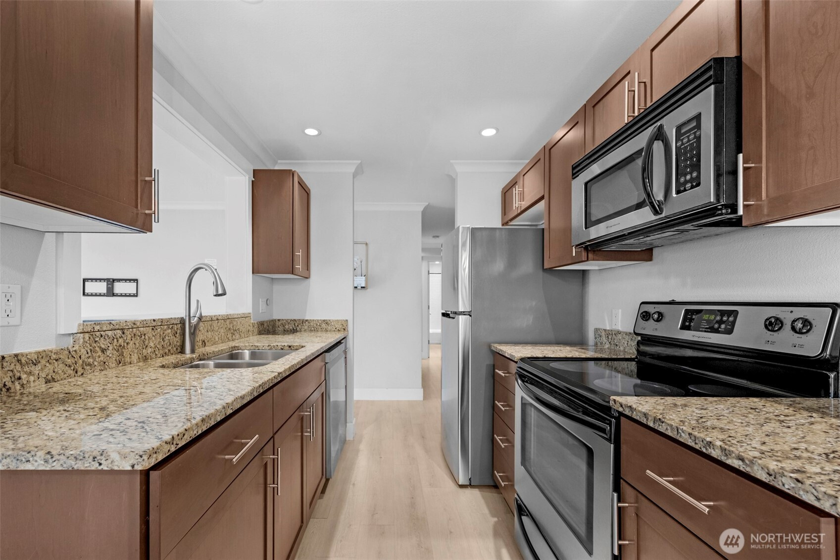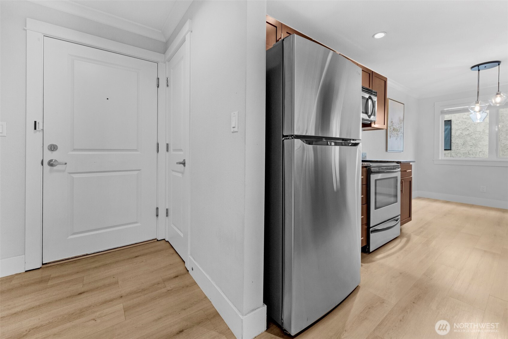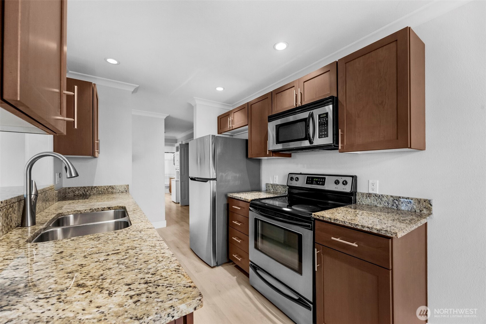 (503) 893-8874Welcome to this bright and stylish two-bedroom corner end-unit featuring 2022 LVP flooring, upgraded modern lighting, and only one shared wall for added privacy! The inviting living room flows into a kitchen with stainless steel appliances, granite countertops, and direct access to a spacious covered balcony—perfect for relaxing or entertaining. Enjoy the convenience of an in-unit washer/dryer and a designated parking space, with HOA covering WSG. Nestled in the heart of Ballard, a walker’s paradise, you’re moments from trendy shops, parks, the Sunday Market, and incredible dining!