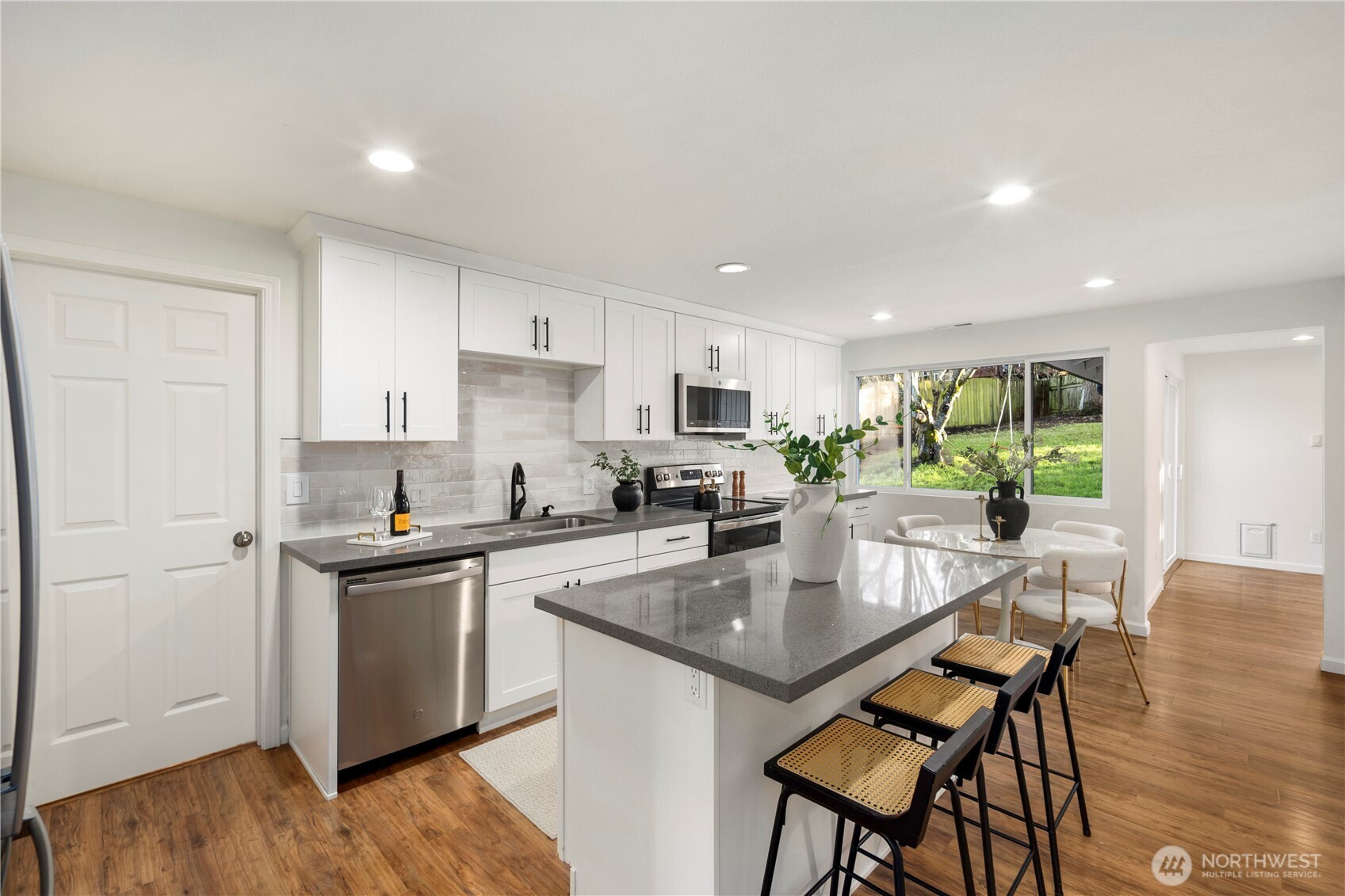 Welcome to your beautifully updated three-bedroom rambler in a peaceful yet ultra-convenient Federal Way location! Freshly painted and move-in ready, this 1,150-square-foot gem.features open concept floor plan with tons of natural light, beautiful bright kitchen with SS Appliances, Laminate flooring through-out, exquisite tile in the bathroom and a attached 1-car garage. New furnace with A/C, water heater and Appliances. Located minutes from nearby amenities, I-5 & 509. Easy commuter location.