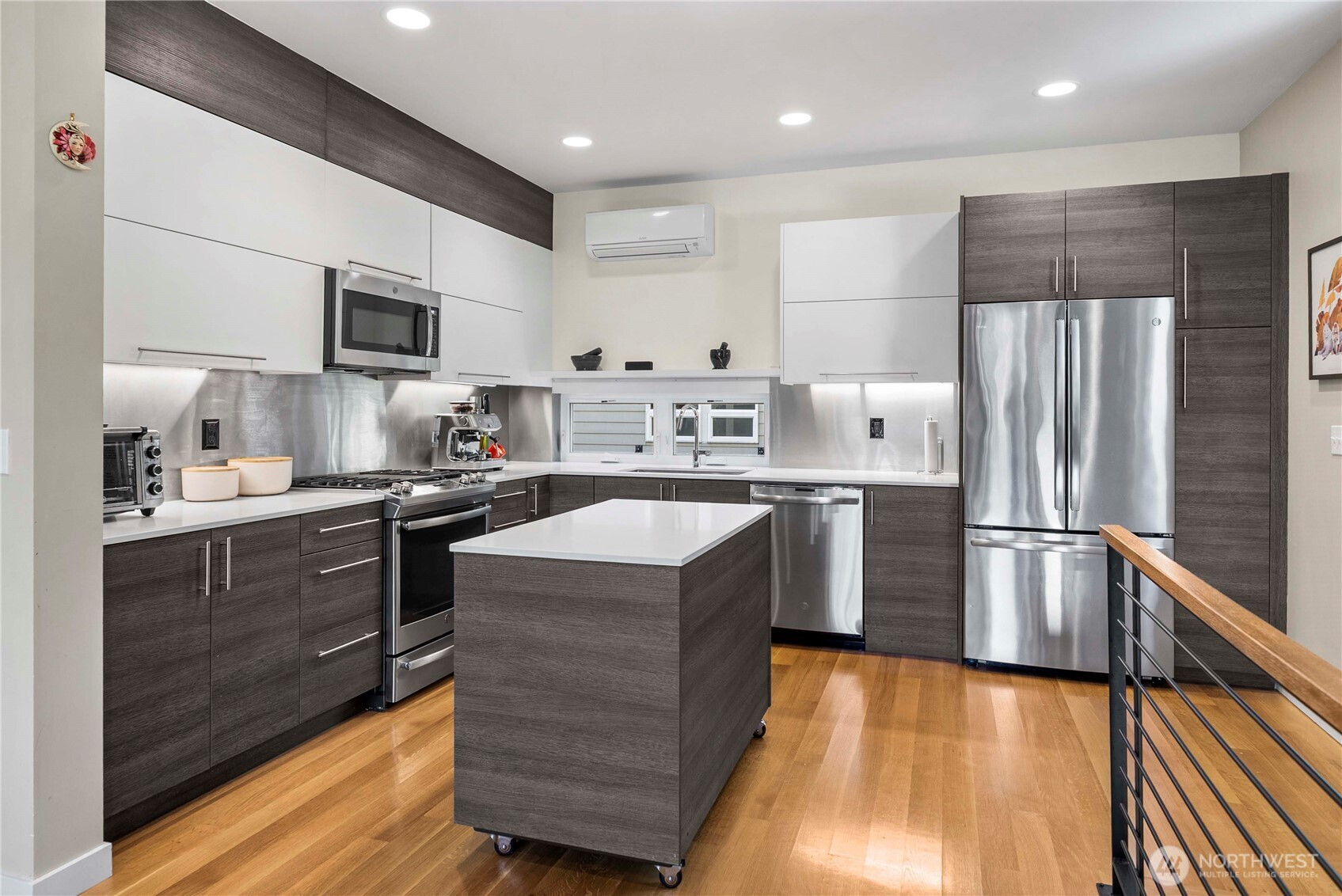 Right in the heart of Queen Anne, this sleek corner-unit town home blends smart design with vibrant city living. The open main level offers space to truly live in, featuring a chef’s kitchen with quartz island, lift-up cabinets, stainless steel backsplash, and a barn wood-paneled fireplace. Upstairs, the primary suite and second bedroom lead to an XL rooftop deck with sweeping park and territorial views—your go-to spot for sunsets, rooftop dinners, and gatherings. A flexible third bedroom is ideal for a WFH setup or guest retreat. Mini-split A/C ensures year-round comfort. Enjoy dedicated parking plus a bonus carport and small storage space, all with NO HOA fees. Just steps to cafés, restaurants, bars, boutiques, and transit, with parks like Kerry Park and Queen Anne Play field nearby. Quick access to downtown, SPU, and Fremont. This is more than a home—it’s a lifestyle upgrade in one of Seattle’s most desirable neighborhoods.