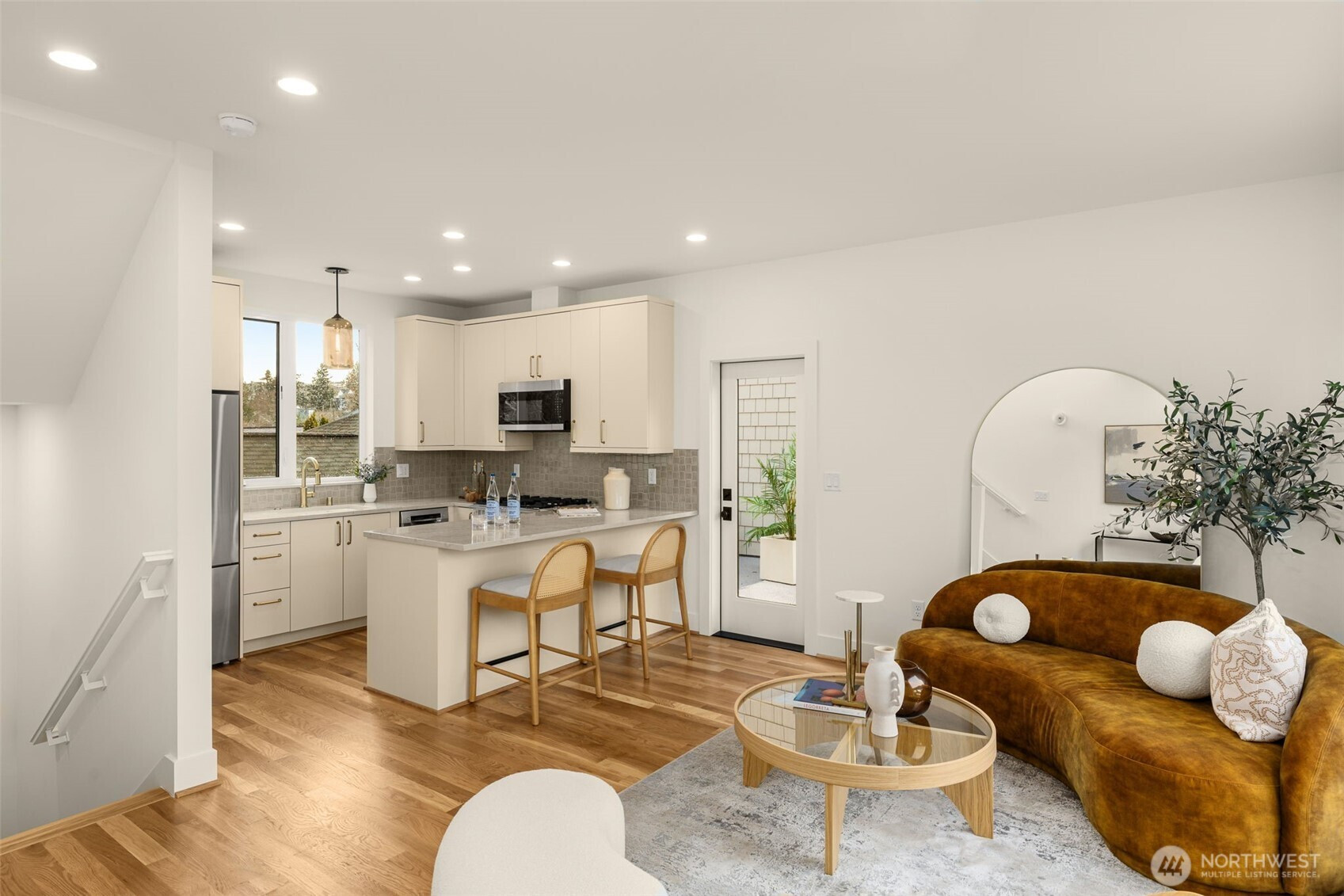 Thoughtfully designed new construction townhome in the heart of Magnolia, combining modern style, functional living, and rare private garage parking. This 1,125 SF home lives larger than its footprint thanks to an efficient layout and smart separation of space. The entry level features a private entrance and versatile bedroom or flex space with a full bath, ideal for guests, remote work, or flexible use. The main living level is bright and open, featuring a modern kitchen, dining area, and comfortable living space that flows to an unusually large private deck. Rare for homes of this type, the expansive outdoor space creates seamless indoor-outdoor living and provides the perfect setting for year-round Pacific Northwest enjoyment. The top floor is dedicated to the primary suite with a walk-in closet and private bath, creating a quiet retreat above the main living areas. Quality finishes throughout include quartz countertops, real oak hardwood floors, CAT5 wiring, security system, and designer cabinetry. A private garage and fully fenced yard complete this exceptional Magnolia offering, just minutes from Magnolia Village, Discovery Park, Ella Bailey Park, and the neighborhood cafés and shops that define this vibrant community.