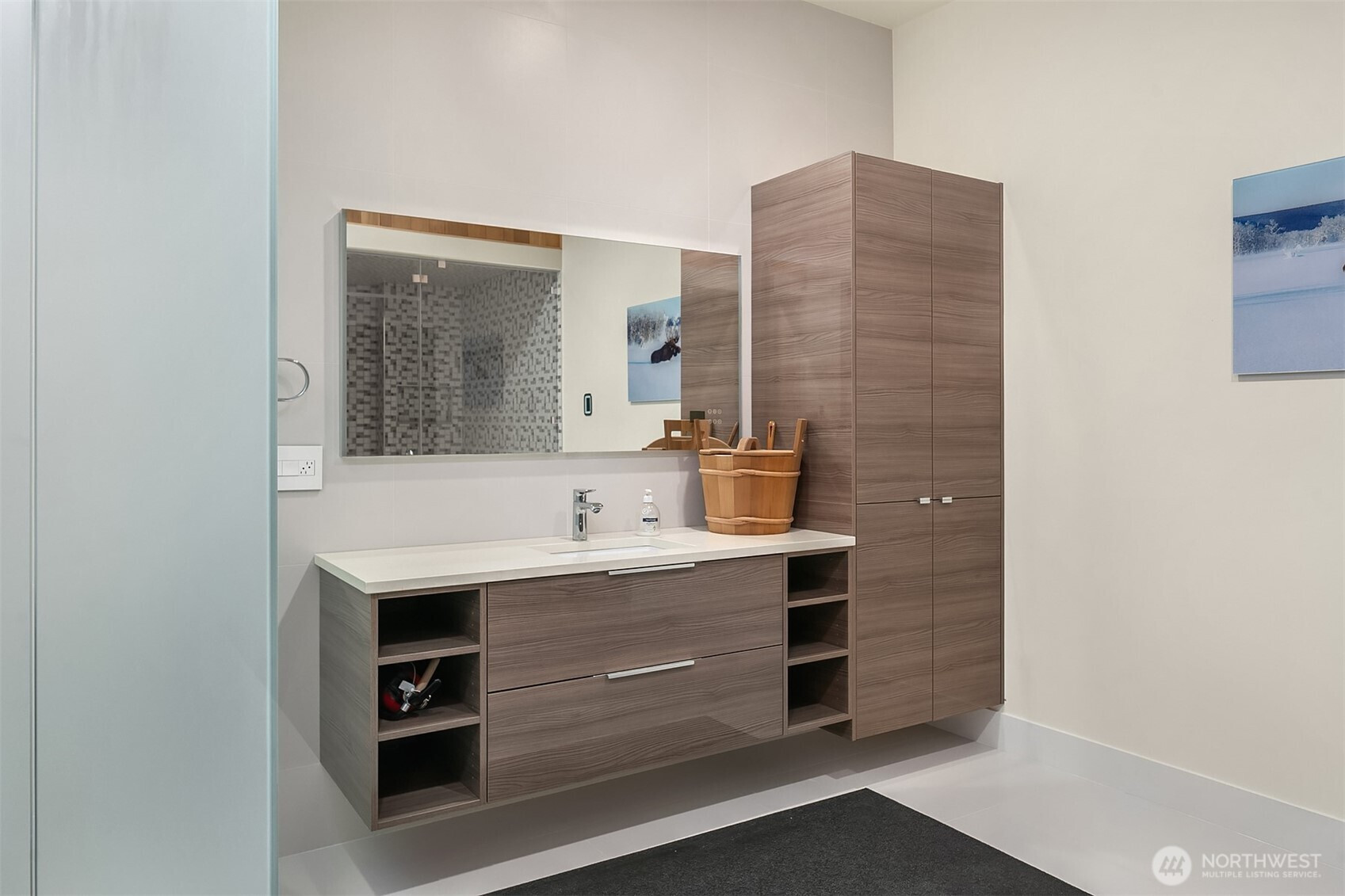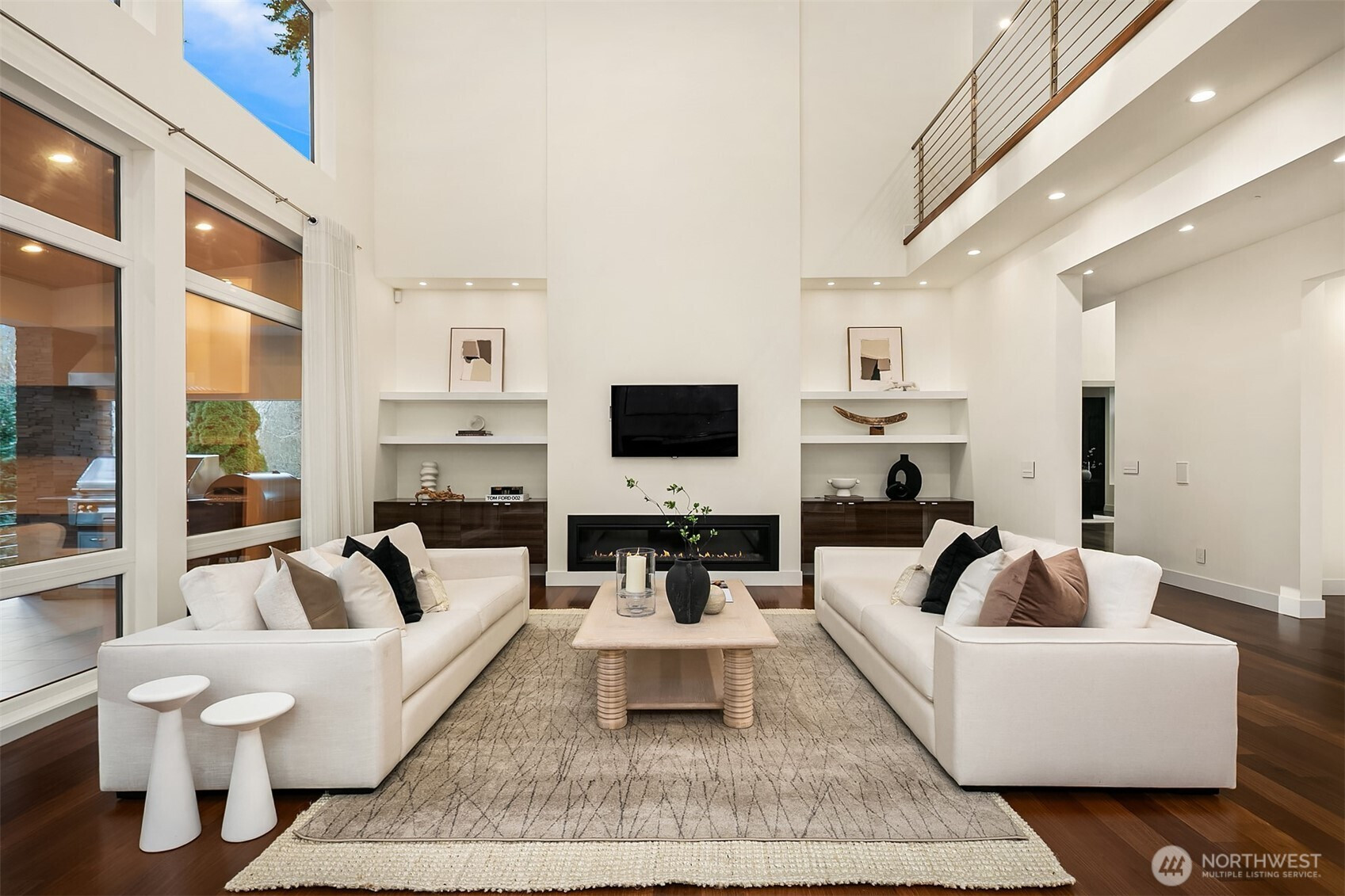 A statement in scale, design, & precision, this custom-built estate spans over 8,300sf of elevated living where no detail was overlooked. Designed for both grand entertaining & effortless everyday living, the home unfolds across 3 levels with soaring spaces, seamless smart home integration, & refined materials like dark cherry hardwoods & imported Italian cabinetry, windows & doors throughout the entire home. A dramatic great room with 20ft+ ceilings & gas fireplace on the main level flows to a covered deck with a built in BBQ area. The great room is complemented by a luxurious chef’s kitchen with top tier Miele appliances, including a speed oven, 2 dishwashers, & induction cooktop, formal & informal dining spaces, an office, & an elevator that takes you to each level. The main floor primary suite is designed for true convienence, with a gas fireplace, custom walk-in closet, & a 5 piece bathroom with heated floors & large curbless shower. A sculptural floating steel and wood staircase leads you upstairs to spacious ensuite bedrooms & a generous bonus room. The lower level is dedicated to wellness & recreation with a gym, sauna, & steam room, with an guest suite & rec space. Access to a covered patio & a sprawling backyard with irrigation create endless opportunities. With a laundry room on each level, generator, security, 8 zones of heating, & 3 car garage with generous 20+ car parking outside, this is luxury living at an exceptional scale.