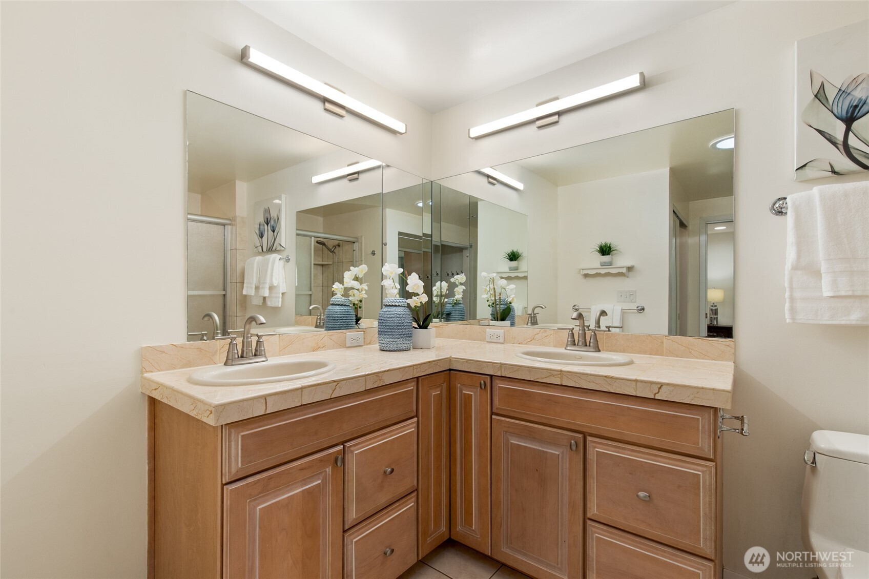 Tucked on a coveted corner lot within a quiet cul-de-sac, this beautifully well-maintained Sammamish home with thoughtful refreshes offers comfort, space, and versatility on nearly ½ acre in desirable Sunny Hills Estates. A welcoming slate entryway sets the tone, while well-placed windows throughout fill the home with abundant natural light. The fully permitted upstairs bonus retreat is a standout feature with vaulted ceilings, skylights, wet bar, and ½ bath — ideal for entertaining, media, or a private sanctuary. The kitchen shines with brand-new quartz countertops and backsplash, stainless steel appliances, and hardwood floors. Significant updates, including a brand-new roof and recently painted exterior, reflect pride of ownership and meticulous maintenance. Formal and casual living spaces provide a functional layout for gatherings and everyday living. The generous primary suite features an ensuite bath, while the fully fenced yard offers room to relax and savor your own garden setting with well-tended apple trees, blueberry, and huckleberry bushes. Dual driveways provide abundant parking for guests. Central A/C and a generator ensure year-round comfort. Ideally located near Beaver Lake Park, shops, dining, and within the highly regarded Issaquah School District. A rare opportunity in one of Sammamish’s most desirable neighborhoods.
