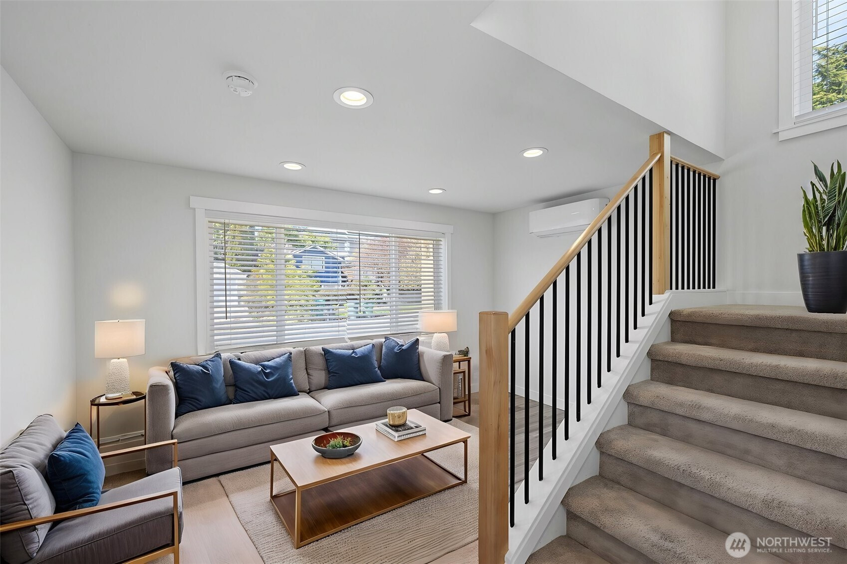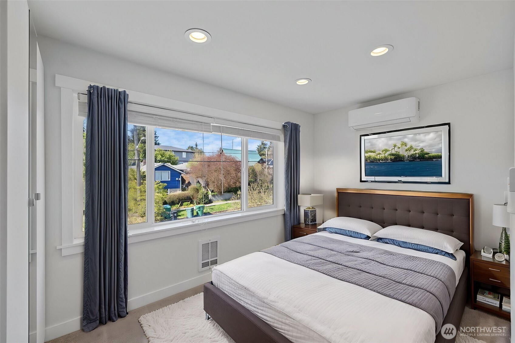 Discover this delightful 800 sq. ft. home, perfectly located on a quiet residential street in the heart of Ballard. Offering easy access to shopping, parks, top-notch restaurants, and the beloved Ballard Sunday Market, this property is a rare find for anyone looking for a cozy home in a prime location. The main floor greets you with a light-filled kitchen featuring white shaker cabinets and stainless steel appliances. Upstairs, you’ll find two bedrooms, a full bathroom, and ample storage space to meet your needs. Modern mini-split heating and cooling systems ensure year-round comfort on both levels. Small but fenced yard and parking is a breeze with a dedicated driveway spot and plenty of street parking available.