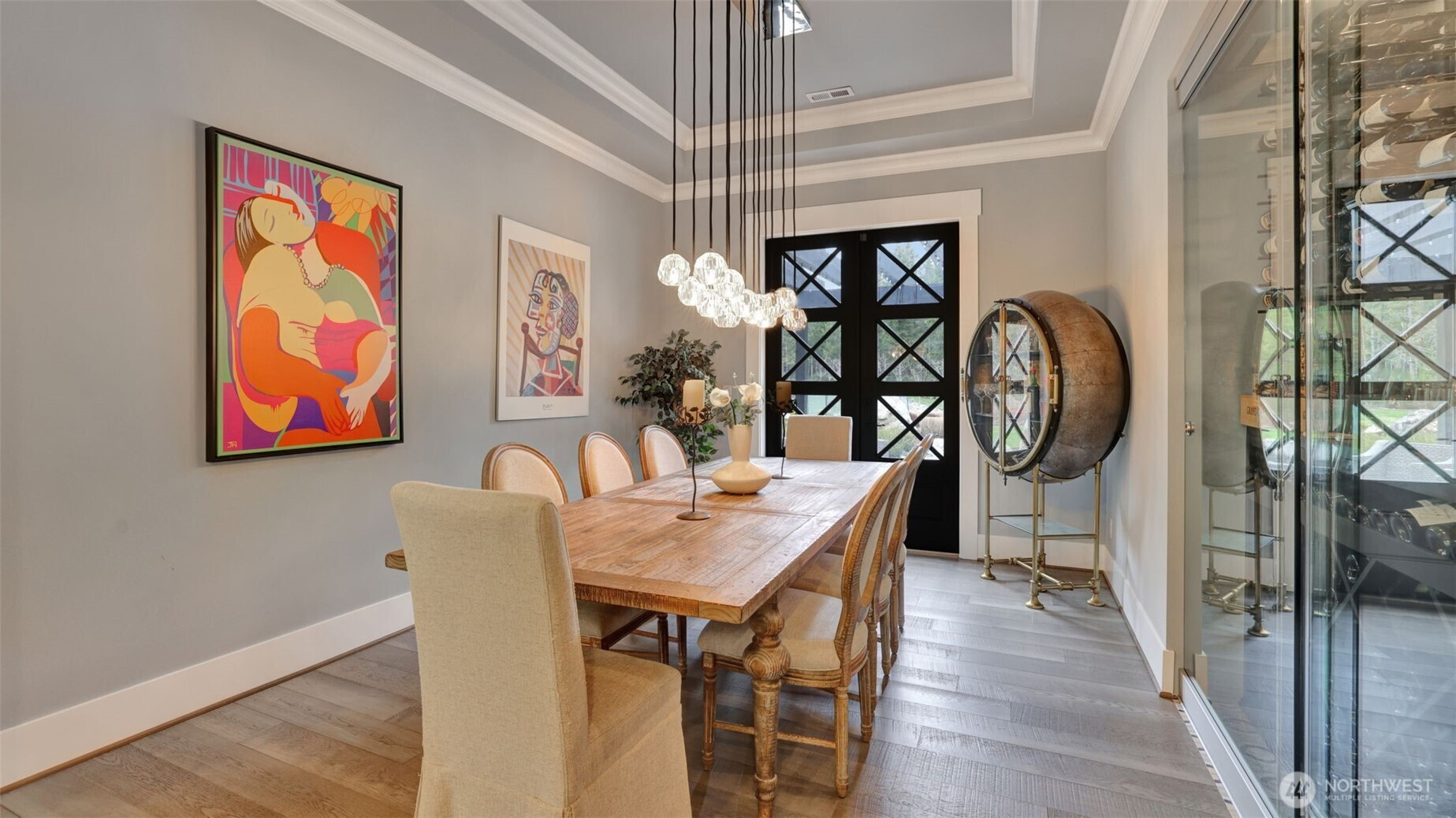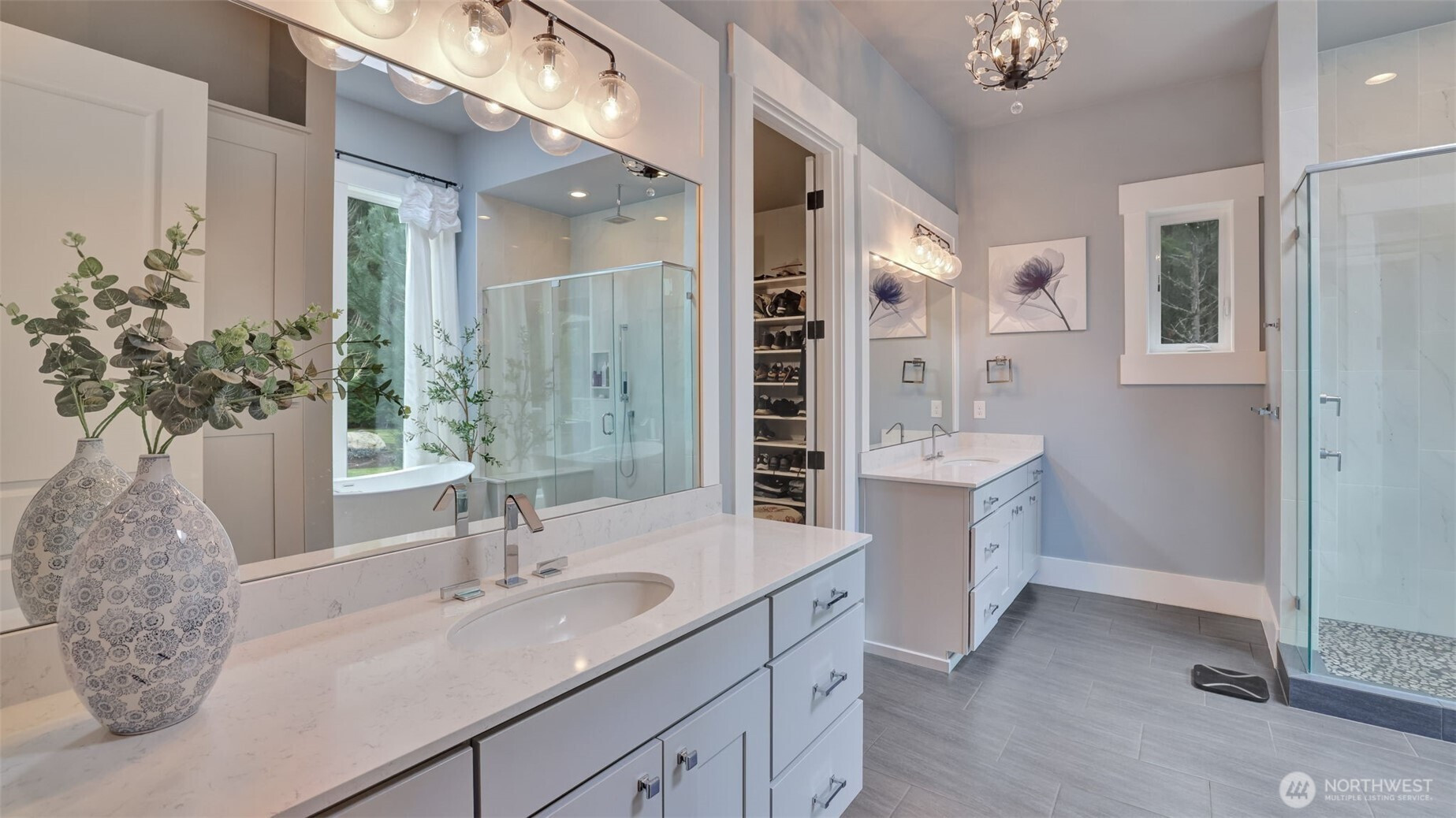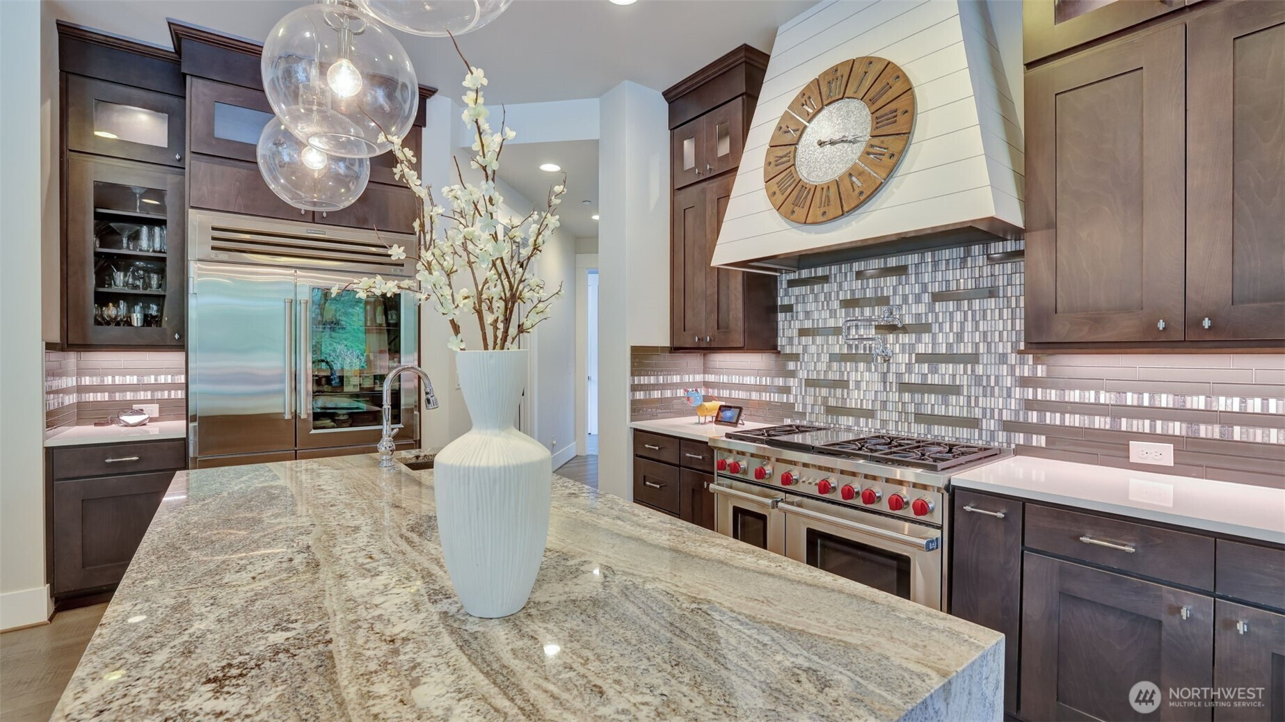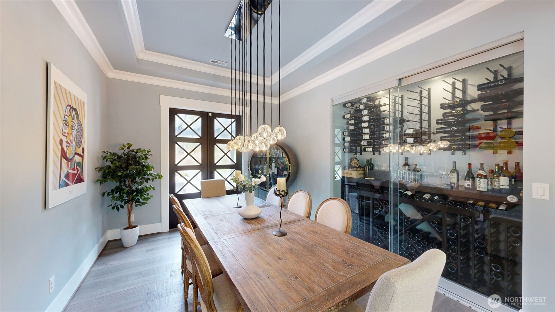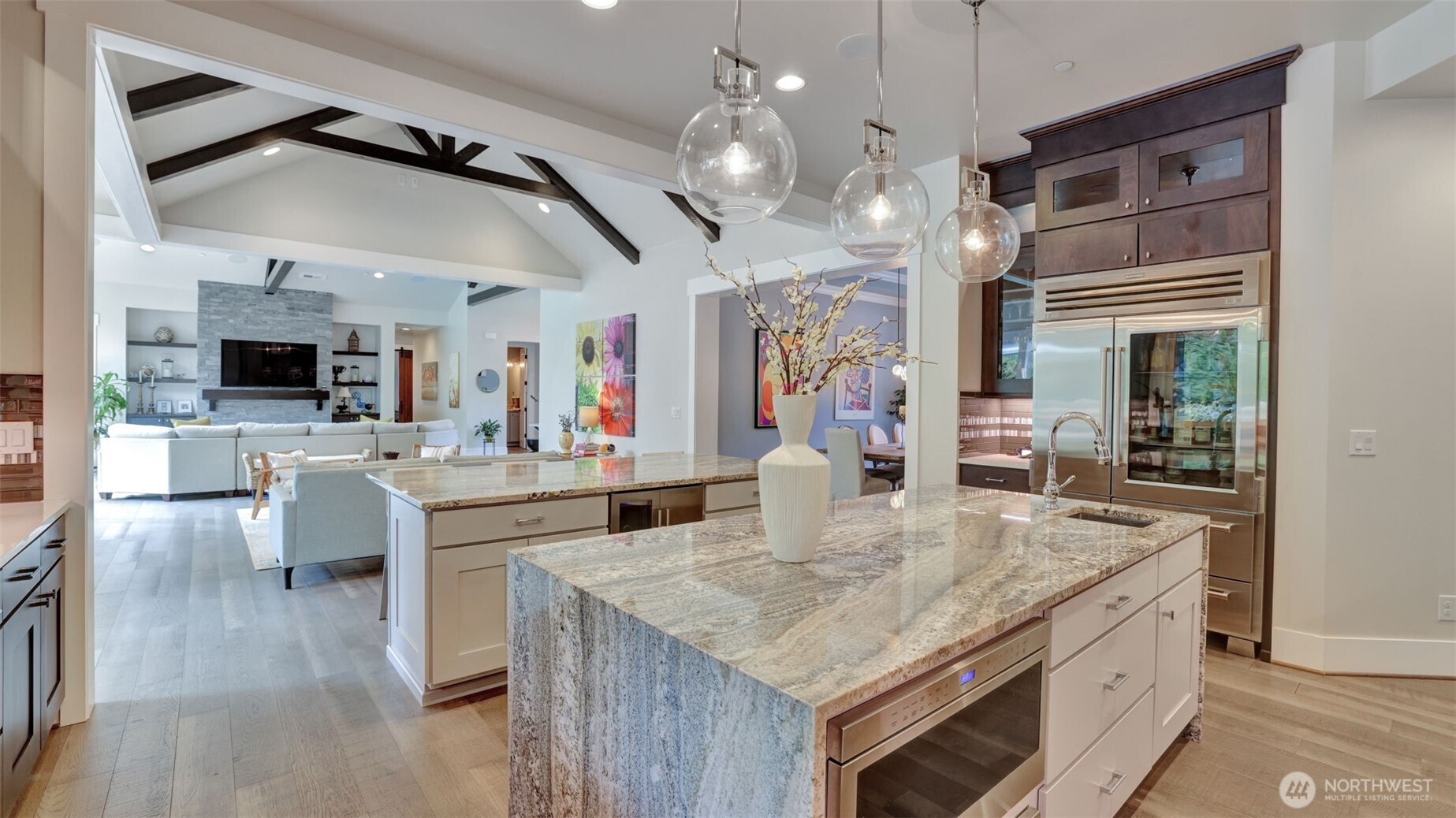 Set on nearly five acres of serene Pacific Northwest landscape, this 4,560 sq.ft. custom residence embodies contemporary elegance with a sense of arrival. A grand, surfaced drive leads to the home’s striking façade, where clean architectural lines hint at the sophistication within. Step into a breathtaking great room defined by vaulted ceilings, exposed wood beams, and floor-to-ceiling windows that frame a meticulously curated backyard oasis. The chef’s kitchen is a showpiece, appointed with Wolf appliances, dual prep and serving islands, and a Sub-Zero Pro refrigerator—an entertainer’s dream. A formal dining room with a temperature-controlled wine wall creates an unforgettable setting for gatherings. The primary suite offers true indulgence with a private fireplace and spa-inspired ensuite. Additional ensuite bedrooms, a flexible bonus room, and a spacious recreation room above the five-car garage provide exceptional versatility. Outdoor living reaches resort caliber with a swim spa, hot tub, and a covered, heated kitchen designed for year-round enjoyment. This is a sanctuary for those who value privacy, refinement, and amenities crafted to the highest standard.