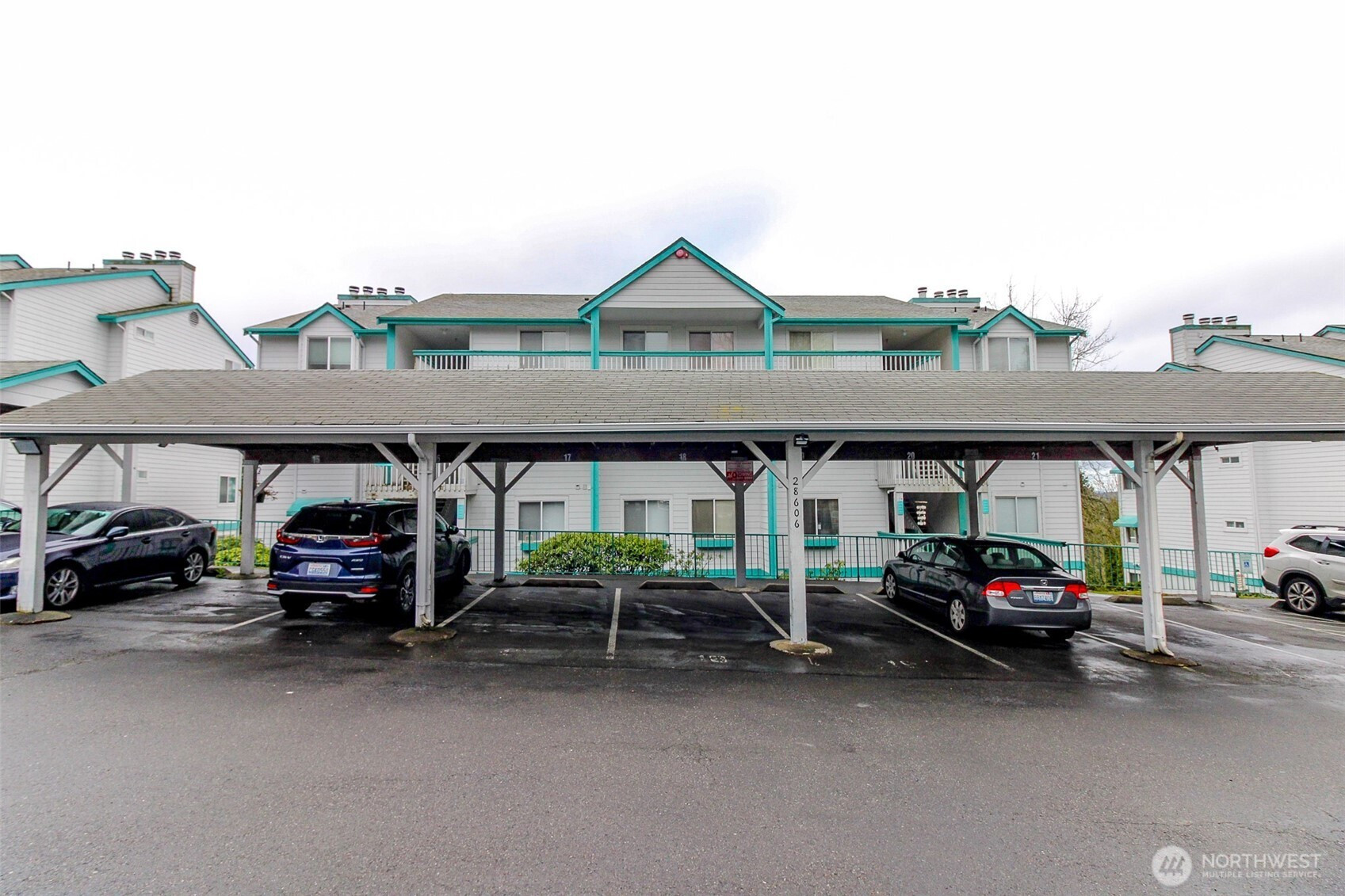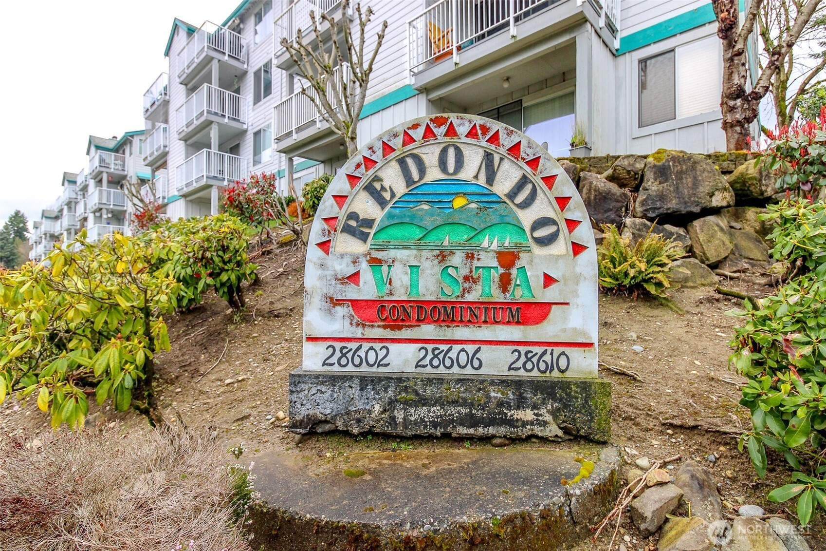 Sweeping Puget Sound view from this nicely updated two bedroom condo. Updated unit has well appointed kitchen, with neutral cabinets and granite counters throughout. Kitchen and dining room overlook view, and open to living room with fireplace. Great location, easy access to freeways, and shopping.