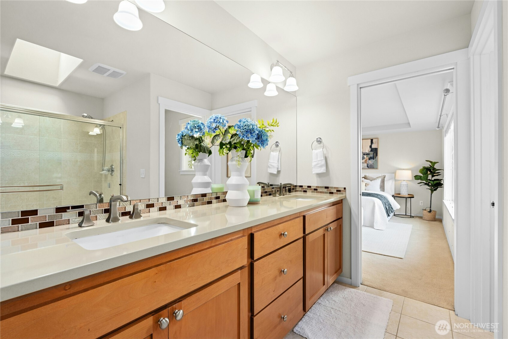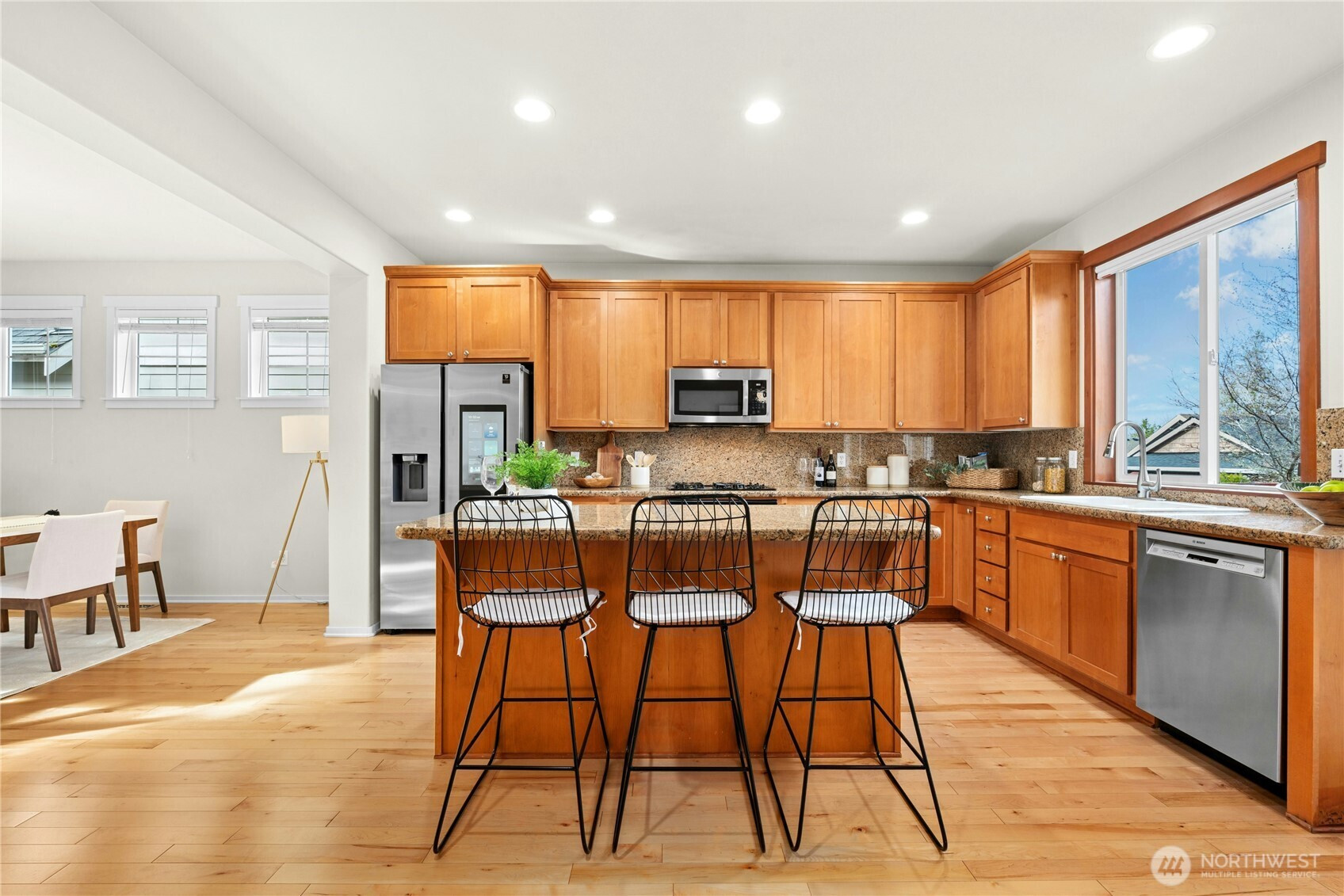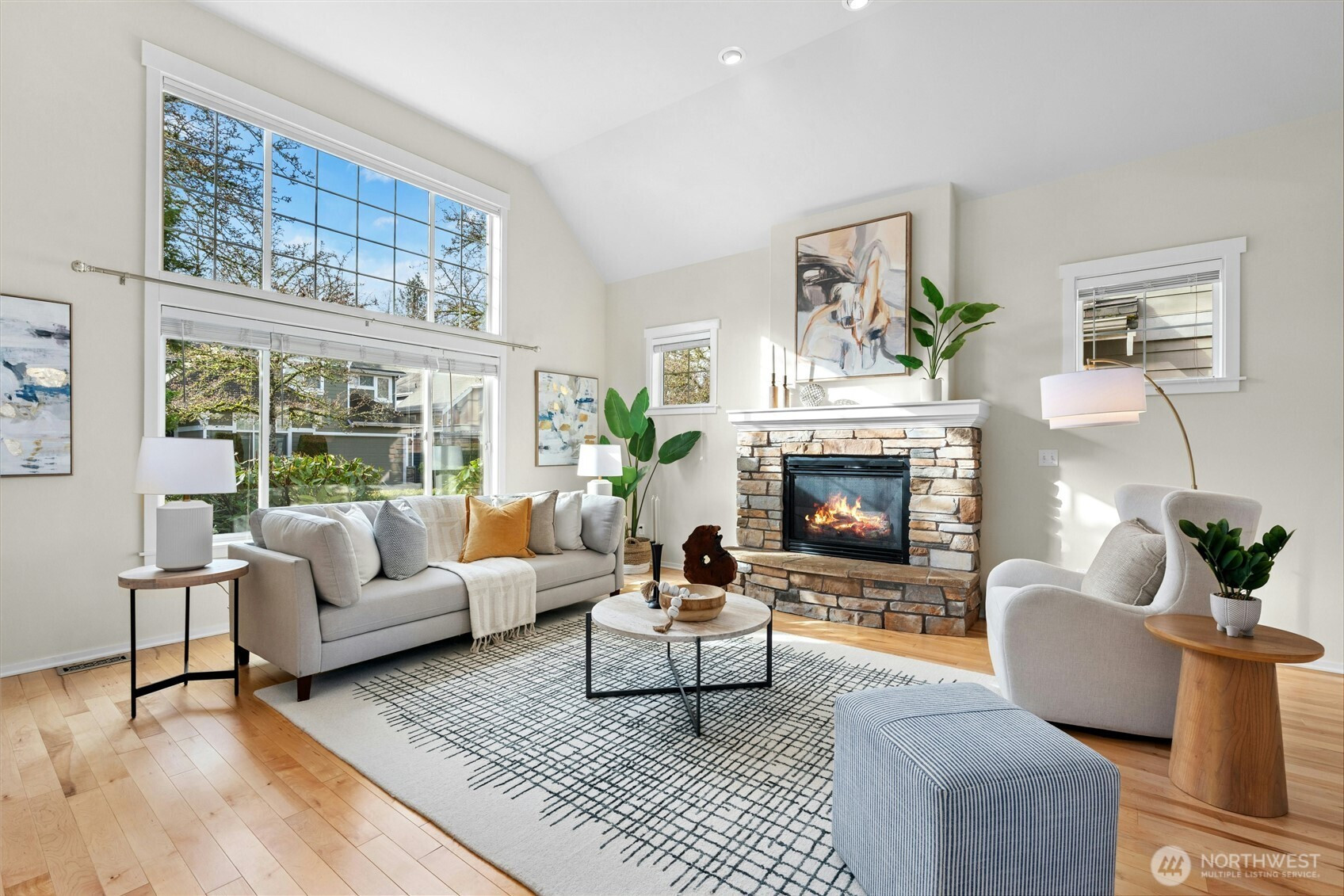 Fall in love with this Hard-To-Find 4-bedroom Burnstead resale. Located in the heart of Issaquah Highlands on Logan St. BRAND NEW ROOF just installed with 30 year warranty! Well appointed, in impeccable condition with light and bright floor plan. Amazing 2-story home with soaring entry welcomes to vaulted living/great-room design with formal dining and office/den through French doors. Spacious and warm kitchen complete with island, breakfast nook, walk-in pantry and newer appliances. Hardwood flooring throughout the main level, plus matching hardwood floors at staircase and upstairs hallway areas. Upstairs finds all bedrooms including primary suite with northerly territorial and Mt. Baker views, primary bath and walk-in closet with built-ins. Updated quartz countertops and sinks at bathrooms. 14' X 14' X 8' attic storage with pull-down ladder. Fully fenced backyard with brand-new fencing. Newer furnace and A/C. All appliances stay. Oversized 2-car garage includes overhead storage and Tesla charger. Top rated schools, close to parks, trails, shops, dining and more!