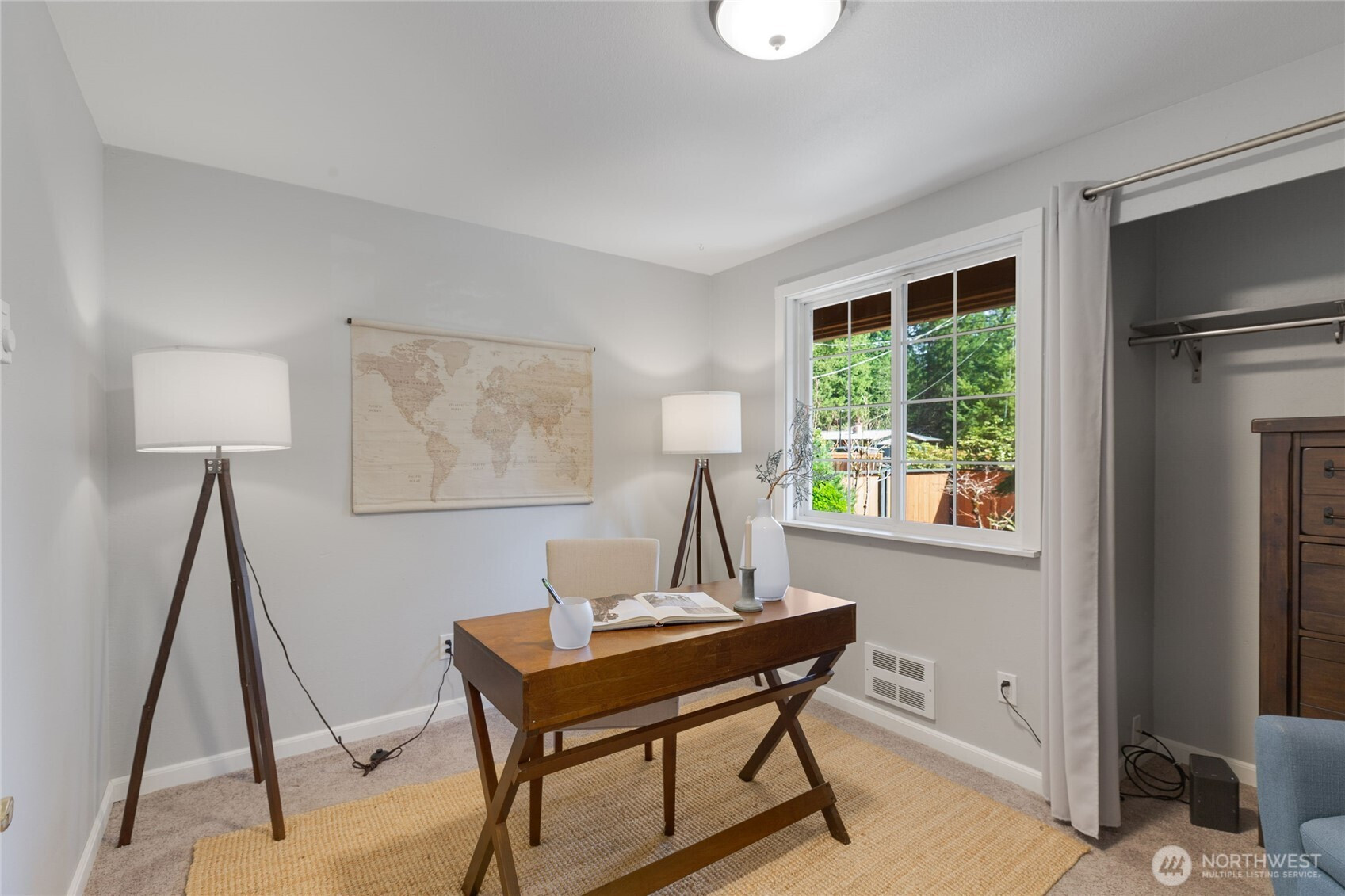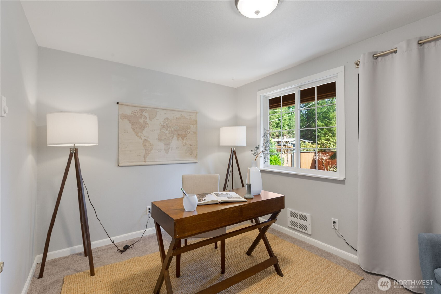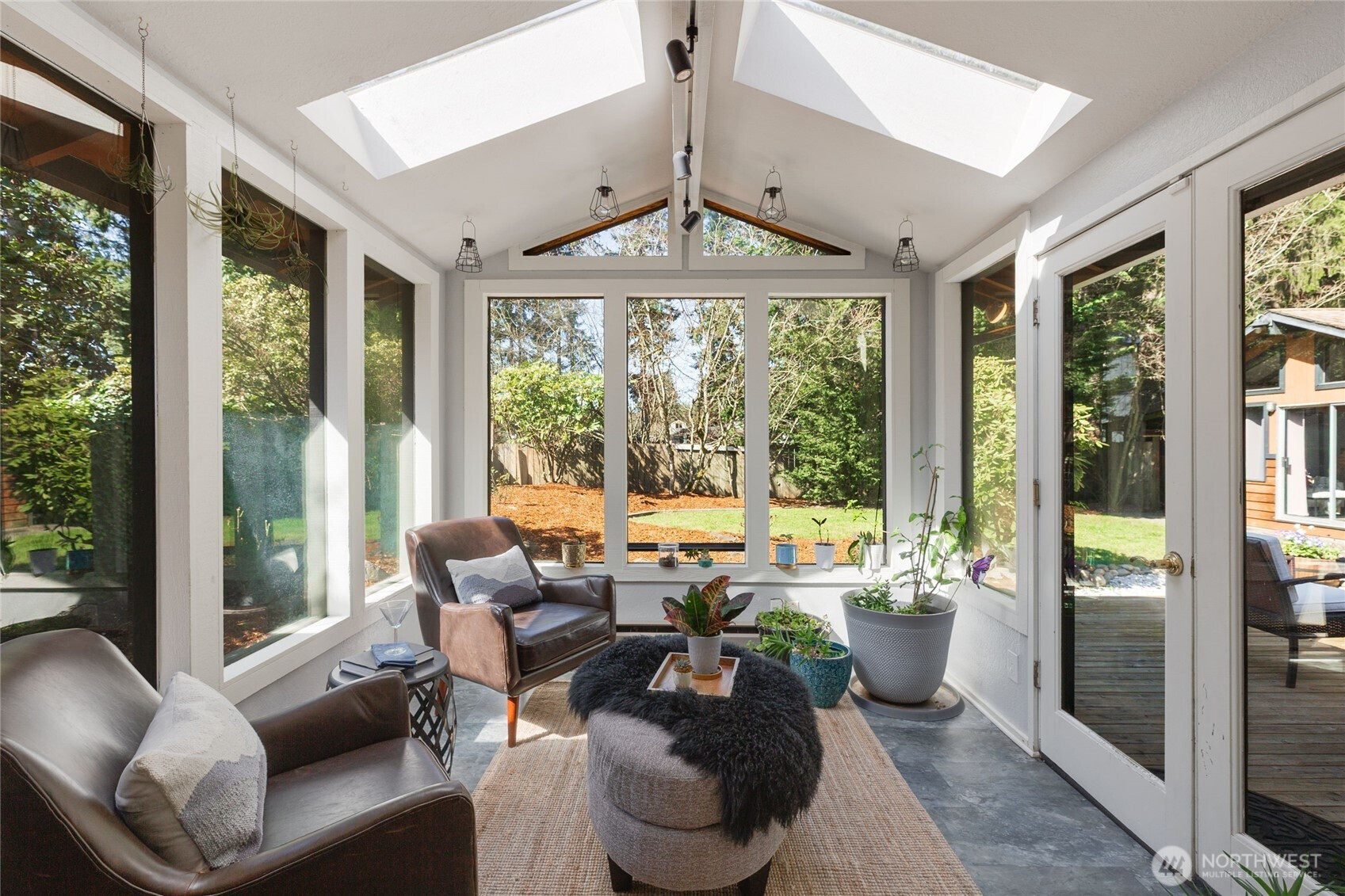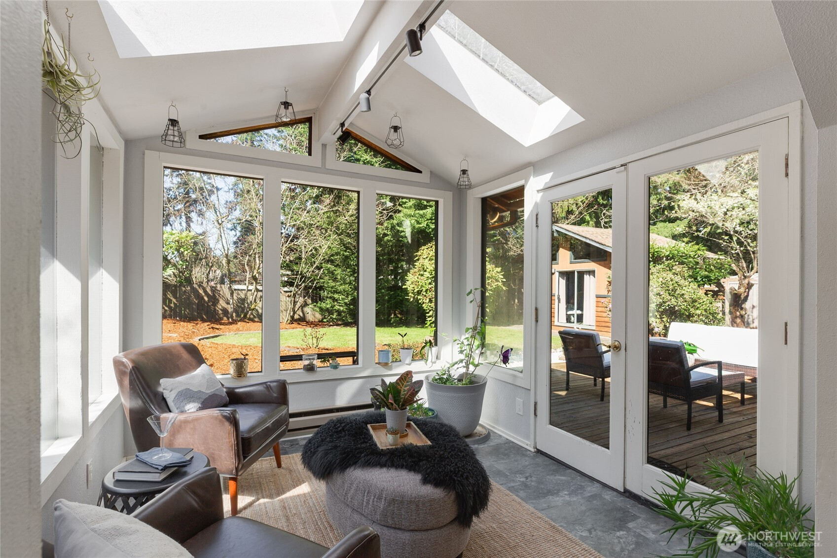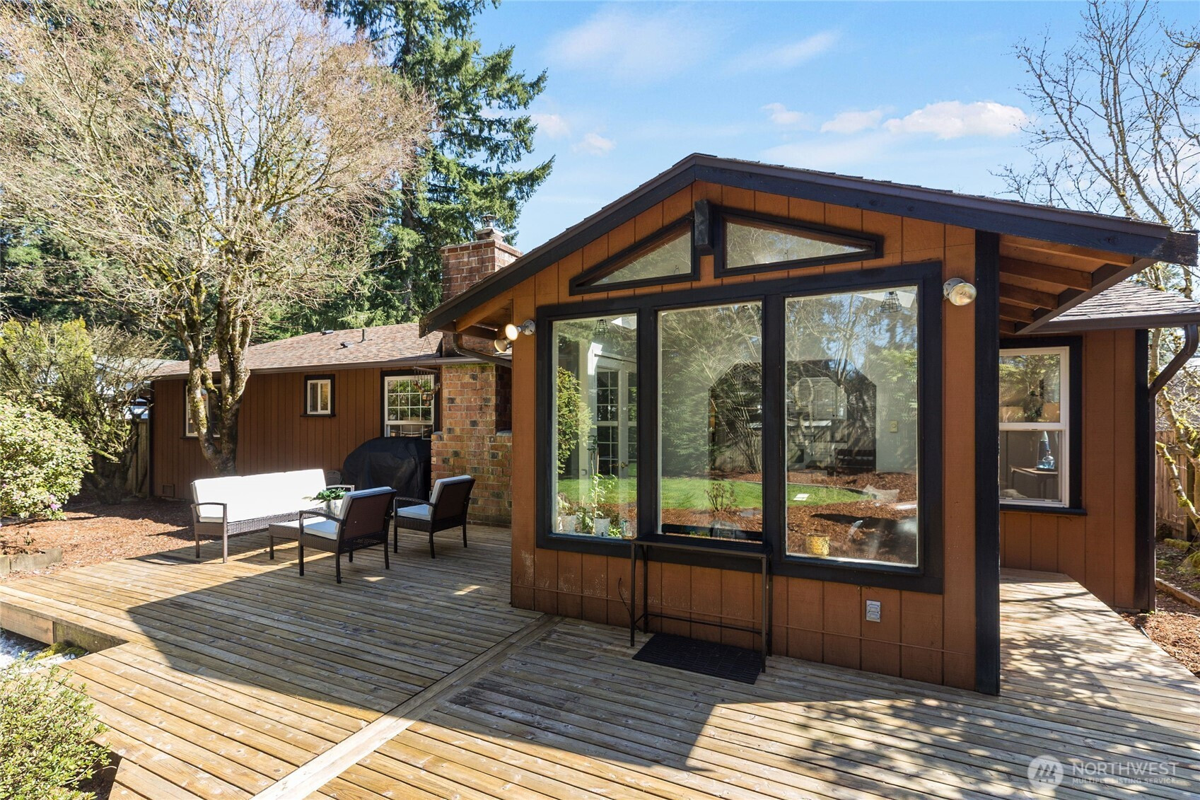Welcome to this inviting single-story rambler conveniently located near Lake Sawyer, with easy access to Maple Valley and Black Diamond. This 3-bedroom, 2-bathroom home features an atrium-style room off the dining area with French doors and an additional approximately 200 square foot loft-style studio in the backyard. It sits on a generous .23-acre level lot with room for relaxation and storage. Inside, abundant natural light streams through skylights and windows, highlighting the open and functional floor plan. The bright kitchen offers ample cabinetry and flows seamlessly into the spacious living room and adjoining dining area. The primary bedroom includes an updated bathroom with granite counters and a walk-in shower. A flexible third bedroom with French doors opens off the entry, while the second bedroom and full bathroom complete the layout.The fully fenced backyard includes garden space, a deck, and storage sheds. Upon arrival, you are greeted by an elevated garden bed, ready to customize. In the summer enjoy the fragrant lilacs, vibrant roses, and the small plum tree that adds a touch of sweet charm and seasonal bounty to the space. Additional outdoor features include an attached two-car garage, a carport, and plenty of space for an RV or boat. This property is within walking distance to the local elementary school and close to hiking trails, and just minutes from multiple grocery stores and daily conveniences. A comfortable single-level home offering versatile living.