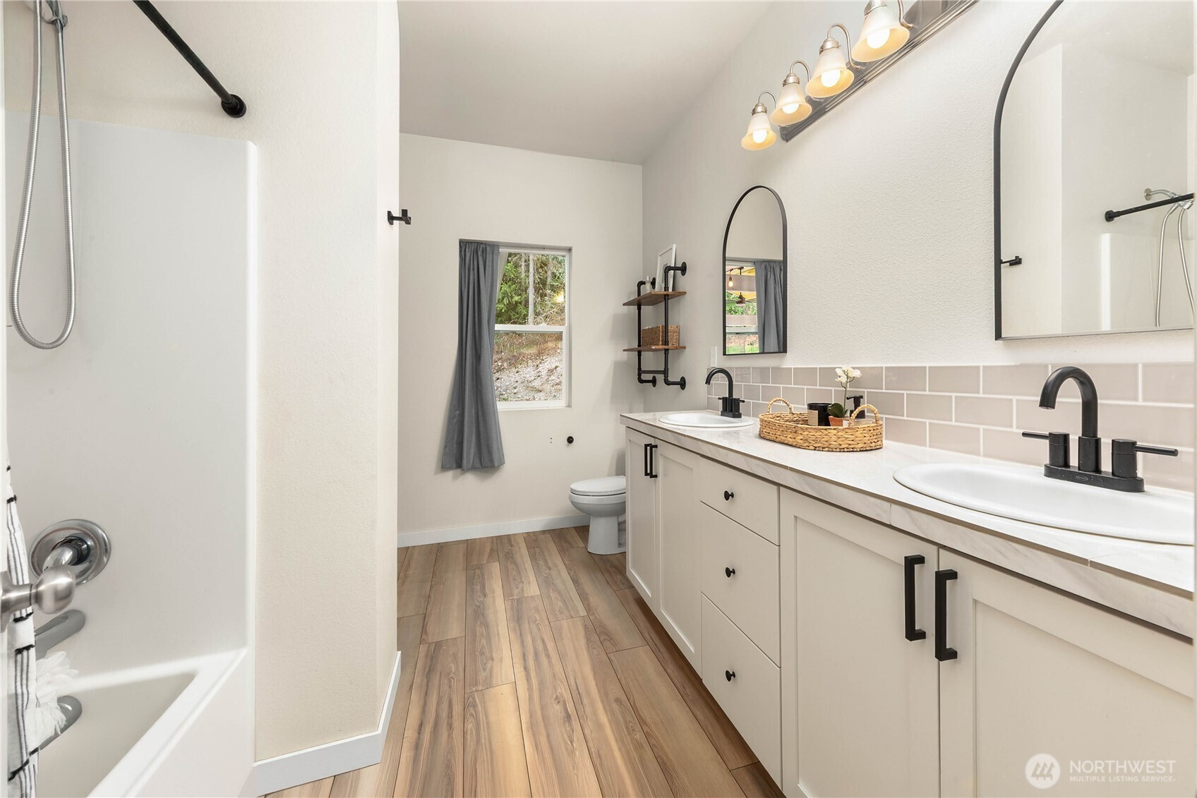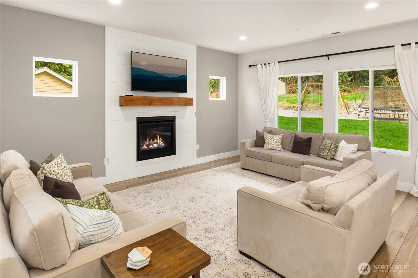 Welcome to your private sanctuary on nearly forty acres of pristine Duvall acreage with exceptional potential for future development. This stunning 2019 built home features five bedrooms, three and a half bathrooms, and dual primary suites, one on the main floor and one on the upper level, offering flexibility for any lifestyle. Surrounded by towering evergreens and mature trees, this 3,190 square foot home delivers authentic Pacific Northwest rural living while remaining conveniently close to downtown Duvall and all the Eastside has to offer. The open concept main floor showcases quality finishes with abundant natural light flowing throughout. A chef's kitchen with white shaker cabinetry, quartz countertops, herringbone tile backsplash, and stainless steel appliances seamlessly connects to the spacious great room featuring a shiplap gas fireplace with warm wood mantle. Step outside to the stunning covered patio with wood-planked ceiling and ceiling fans, perfect for year-round entertaining and outdoor living. Main floor also includes a dedicated home office with built-in cabinetry. Upstairs offers generous open flex space easily adapted to recreation, office, or playroom needs. The two-story shop features garage space below and a finished flex room with projection screen above. Additional storage shed completes the property. This rare offering masterfully combines newer construction, private acreage, quality finishes, and unmatched proximity to town and regional amenities.