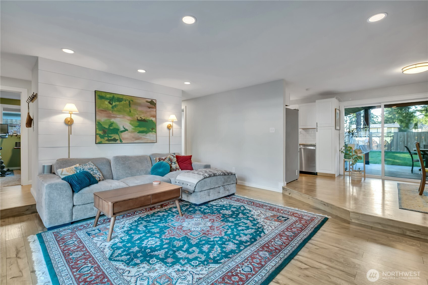 This charming, meticulously maintained 3-bedroom rambler is a true gem, tucked on a quiet dead-end street near an elementary school. Thoughtful updates and pride of ownership shine throughout. Enjoy seamless indoor-outdoor living with the custom 18x20 covered patio, featuring built-in speakers, skylights, heater, TV, and recessed lighting—perfect for year-round entertaining. The updated kitchen offers granite countertops, stainless steel appliances, and a classic subway tile backsplash. Stylish details continue with a custom barn door in the primary bedroom and an updated bath with quartz counters. Additional features include gas forced-air furnace, central A/C, RV parking, a large paved driveway, shed, firepit, and garden space—providing both comfort and convenience. Peaceful location just minutes from shopping, dining, and everyday amenities.