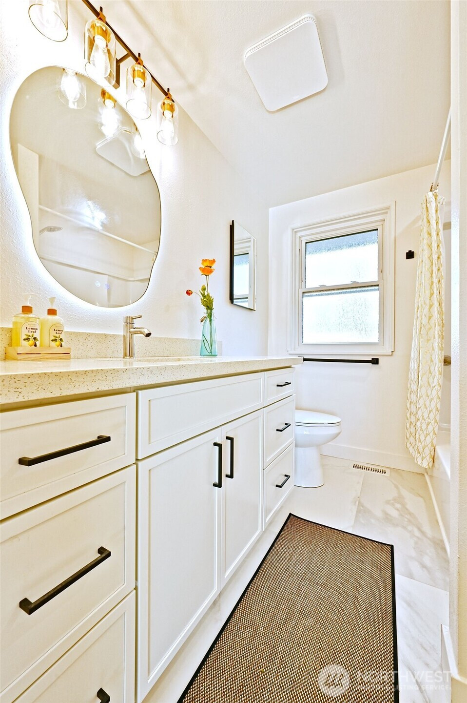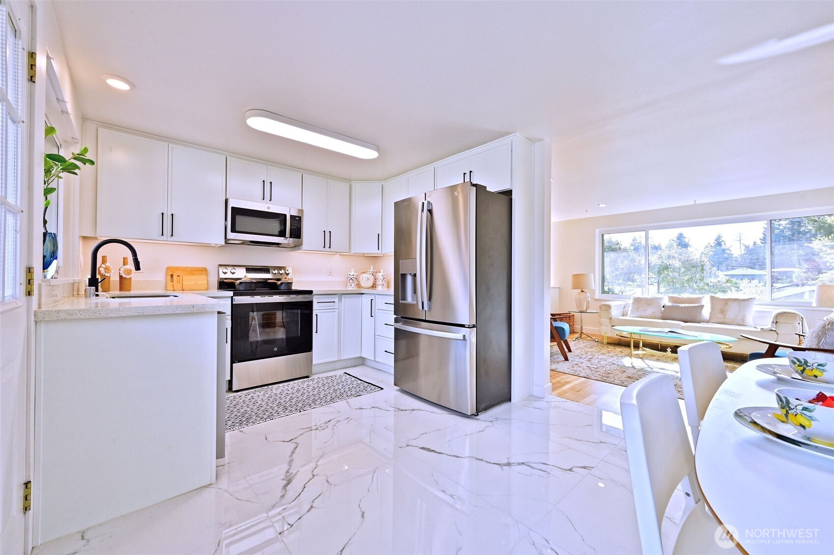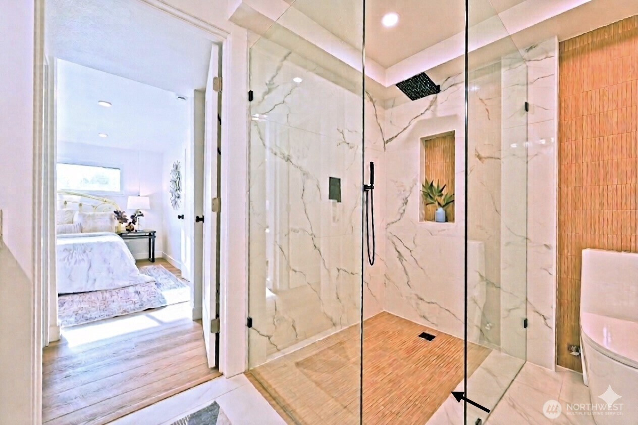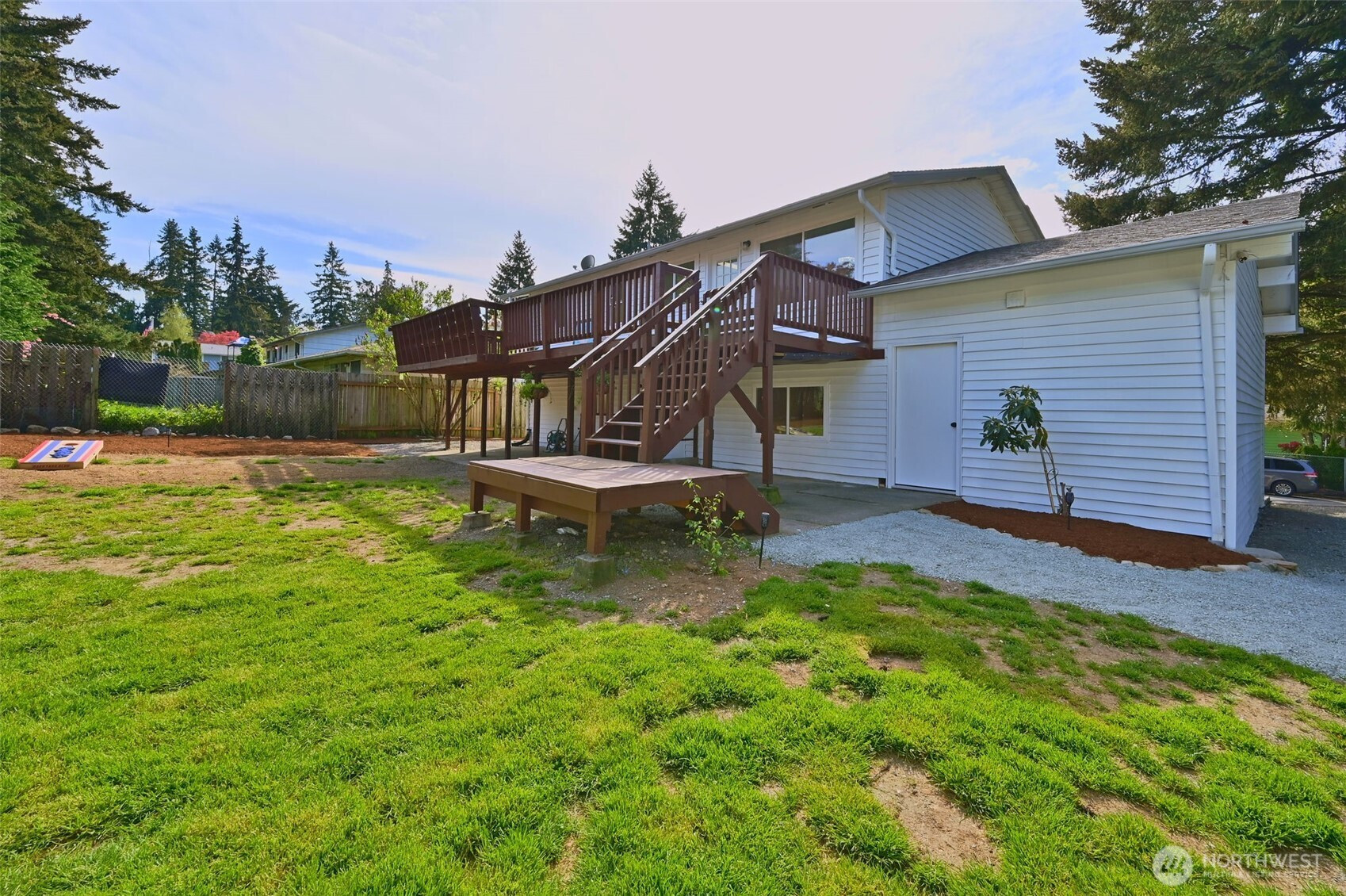 Reimagined for the way you actually live. Sitting on Auburn's sought-after West Hill, this 4-bed, 2-bath home delivers space, style, and location putting you minutes from I-5 and Highway 167, making Seattle, Bellevue, Tacoma, and SeaTac Airport. The Sounder commuter rail is nearby for car-free days into the city, and the Outlet Collection Seattle for shopping, dining, and errands. Upstairs, the main living level is bright and airy. Two bedrooms, a full bath, and a living room that opens effortlessly into the kitchen and dining area. A full-width deck spanning the entire back of the home overlooking the Lilacs about to burst into bloom, and a beautifully matched shed anchors the yard with charm and function. The lower level was designed for real life. A generous family room, a primary suite that feels like a retreat with a gorgeous, modern luxury bathroom and a large walk-in closet. A 4th bedroom- a dedicated laundry room opens directly to the backyard. Outside, the landscaping is lush and thoughtfully done. Move-in ready, beautifully finished, and perfectly positioned in a sweet spot of tranquility and residential calm, yet connected to everything.