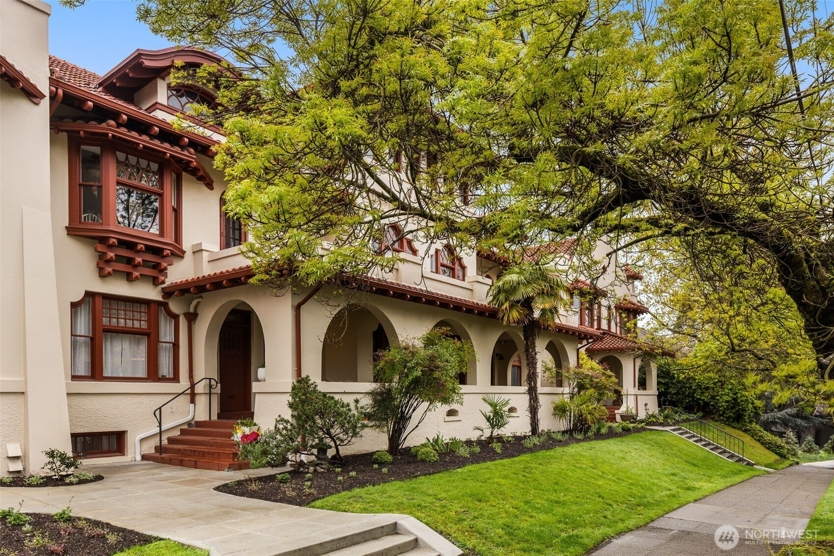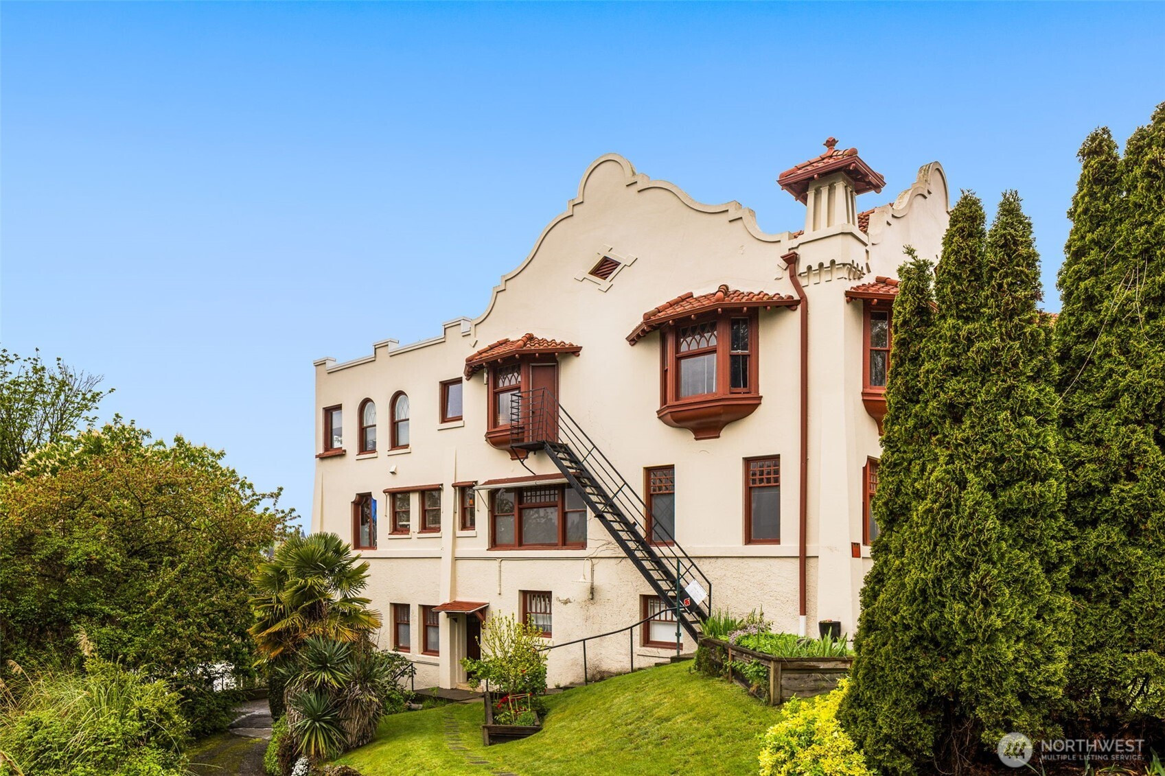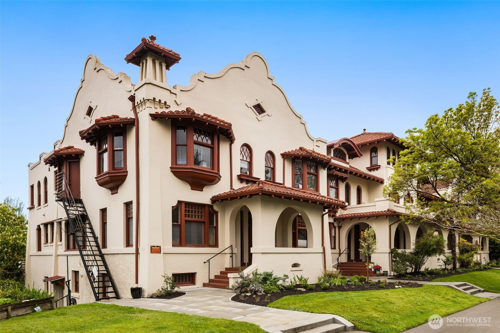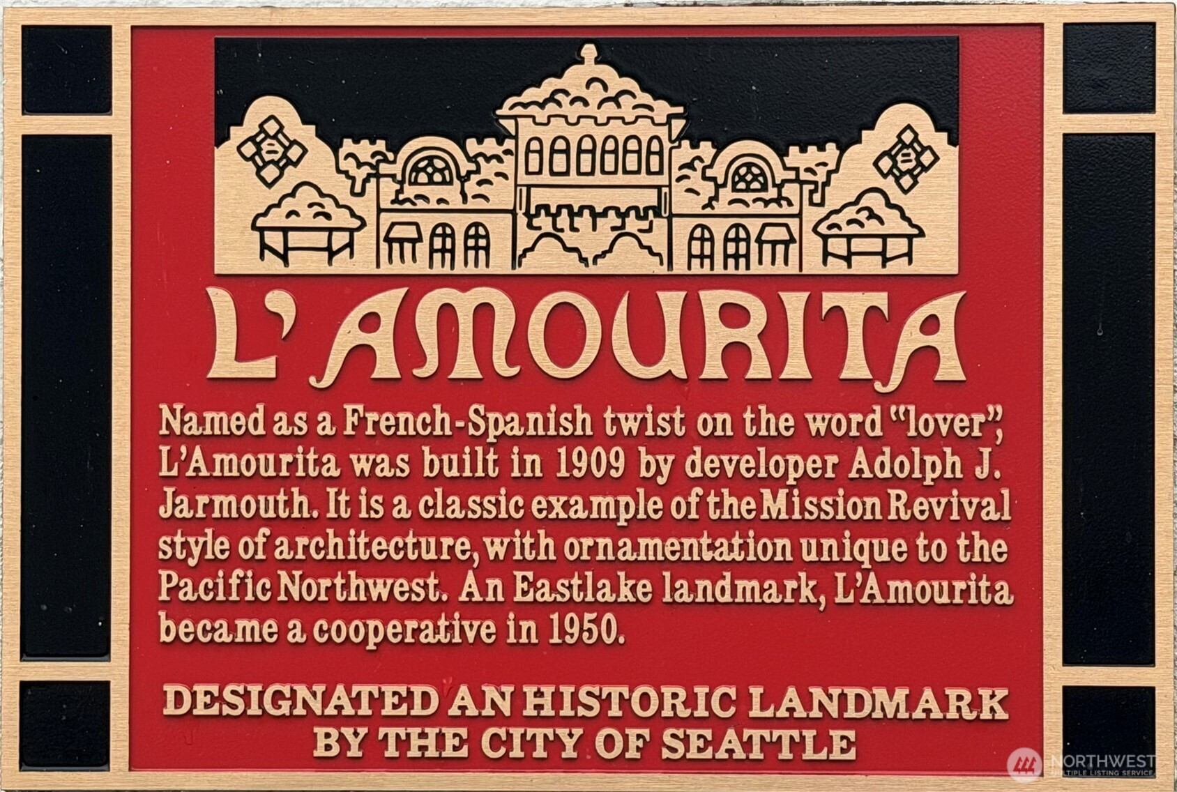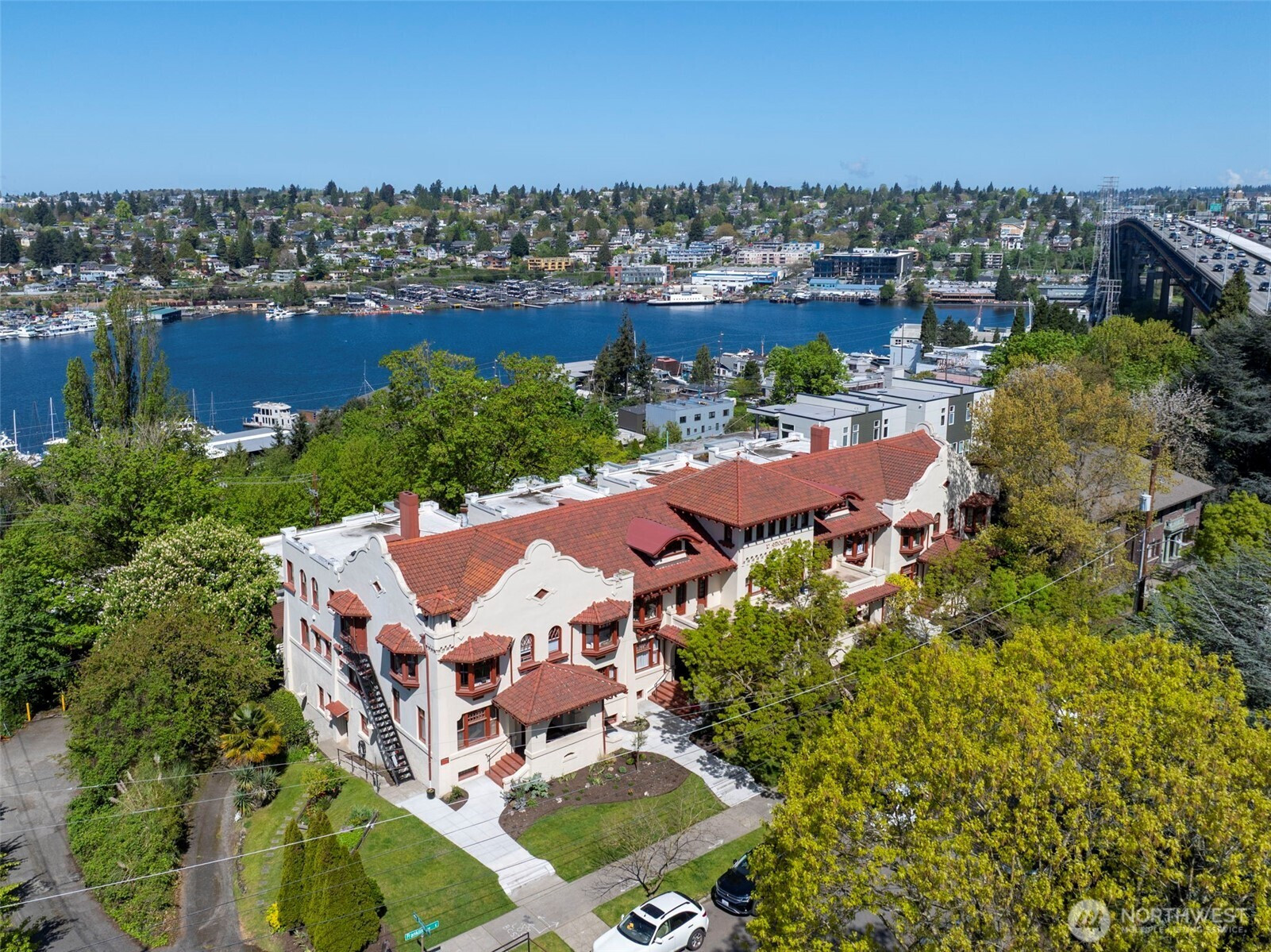 Welcome to the L'Amourita, a striking Seattle Historic Landmark built in 1909 in the Spanish Mission Revival style. The exterior features stucco walls, decorative parapets & a terracotta tiled roof. Inside, unit 2909A has been lovingly restored. Layers of paint were stripped from the trim bring beautiful old-growth millwork back to its original luster. Vintage light fixtures & hardware preserved, mahogany inlaid hardwood floors refinished, & the original windows restored. The kitchen, bathroom & basement have undergone a full renovation (new plumbing, wiring & panel) sensitively blending original details w/ modern amenities. In the kitchen, you’ll find white quartz countertops, push-button replica light switches, tile backsplashes, gas range, & all high-end appliances. The bath offers a deep soaking tub surrounded by subway-tiled walls, elegant brass fixtures & hexagon ceramic tiled floors. The west facing bedroom includes a closet w/ a professional organizing system & windows offering views of Lake Union, Gasworks Park, Queen Anne, & the co-op's inviting courtyard below. This home also features formal living & dining rooms, as well as a lower level w/ a W/D & versatile space perfect for an office &/or media room. Take in sunset views in the back courtyard & gardens. Eastlake restaurants & cafes are blocks away & Capitol Hill, UW, & Downtown just around the corner. Storage, bike & laundry room. Friendly neighbors that welcome cats. Monthly fee's include HOD's + Taxes & Ins!