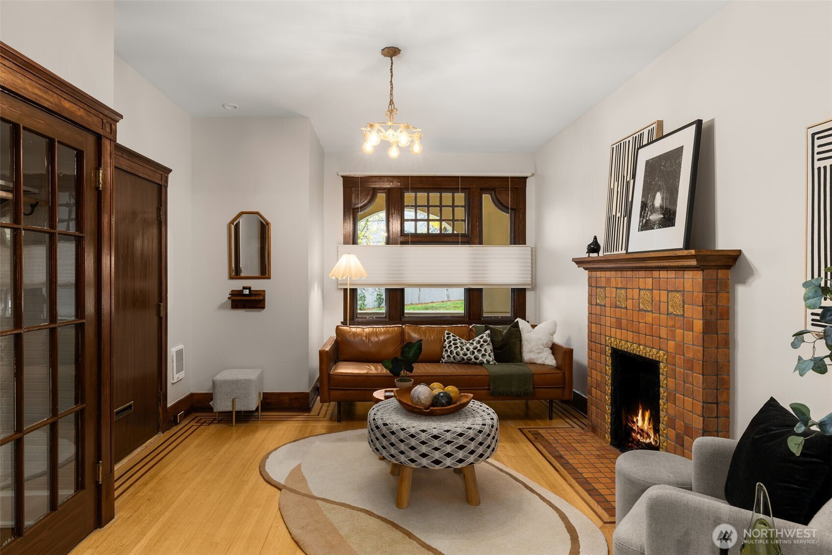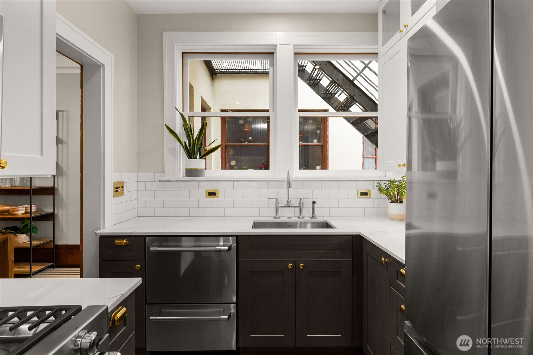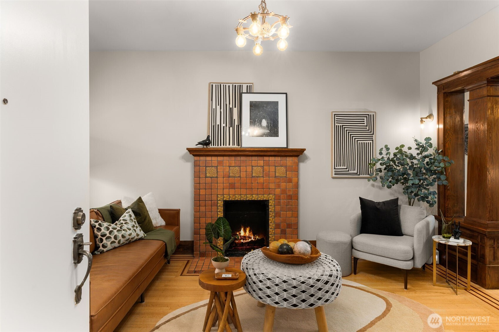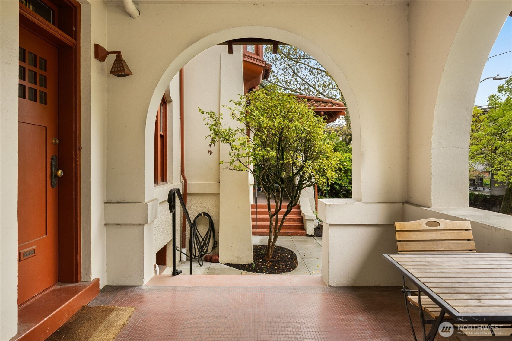 Welcome to the L'Amourita, a striking Seattle Historic Landmark built in 1909 in the Spanish Mission Revival style. The exterior features stucco walls, decorative parapets & a terracotta tiled roof. Inside, unit 2909A has been lovingly restored. Layers of paint were stripped from the trim bring beautiful old-growth millwork back to its original luster. Vintage light fixtures & hardware preserved, mahogany inlaid hardwood floors refinished, & the original windows restored. The kitchen, bathroom & basement have undergone a full renovation (new plumbing, wiring & panel) sensitively blending original details w/ modern amenities. In the kitchen, you’ll find white quartz countertops, push-button replica light switches, tile backsplashes, gas range, & all high-end appliances. The bath offers a deep soaking tub surrounded by subway-tiled walls, elegant brass fixtures & hexagon ceramic tiled floors. The west facing bedroom includes a closet w/ a professional organizing system & windows offering views of Lake Union, Gasworks Park, Queen Anne, & the co-op's inviting courtyard below. This home also features formal living & dining rooms, as well as a lower level w/ a W/D & versatile space perfect for an office &/or media room. Take in sunset views in the back courtyard & gardens. Eastlake restaurants & cafes are blocks away & Capitol Hill, UW, & Downtown just around the corner. Storage, bike & laundry room. Friendly neighbors that welcome cats. Monthly fee's include HOD's + Taxes & Ins!