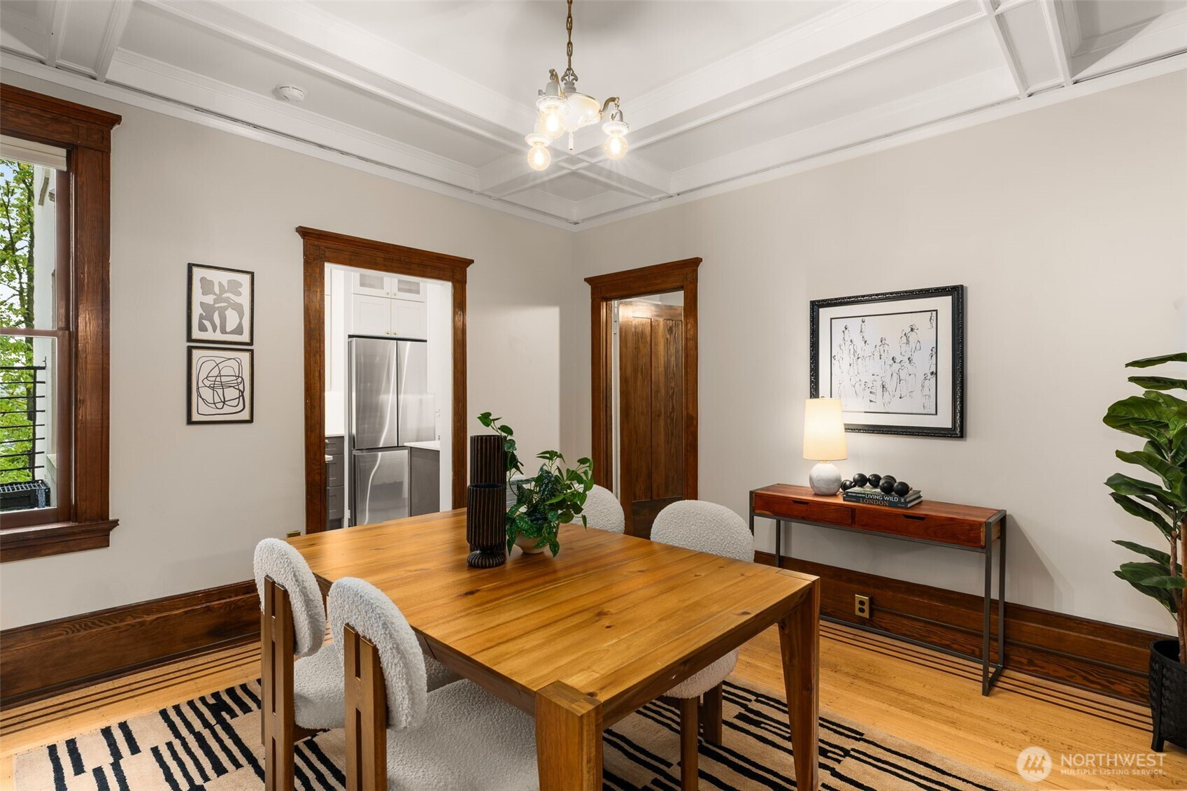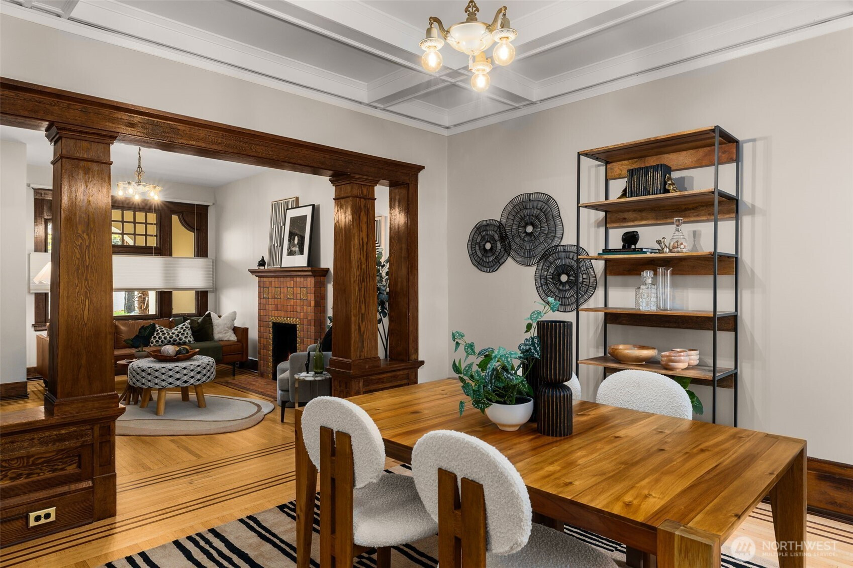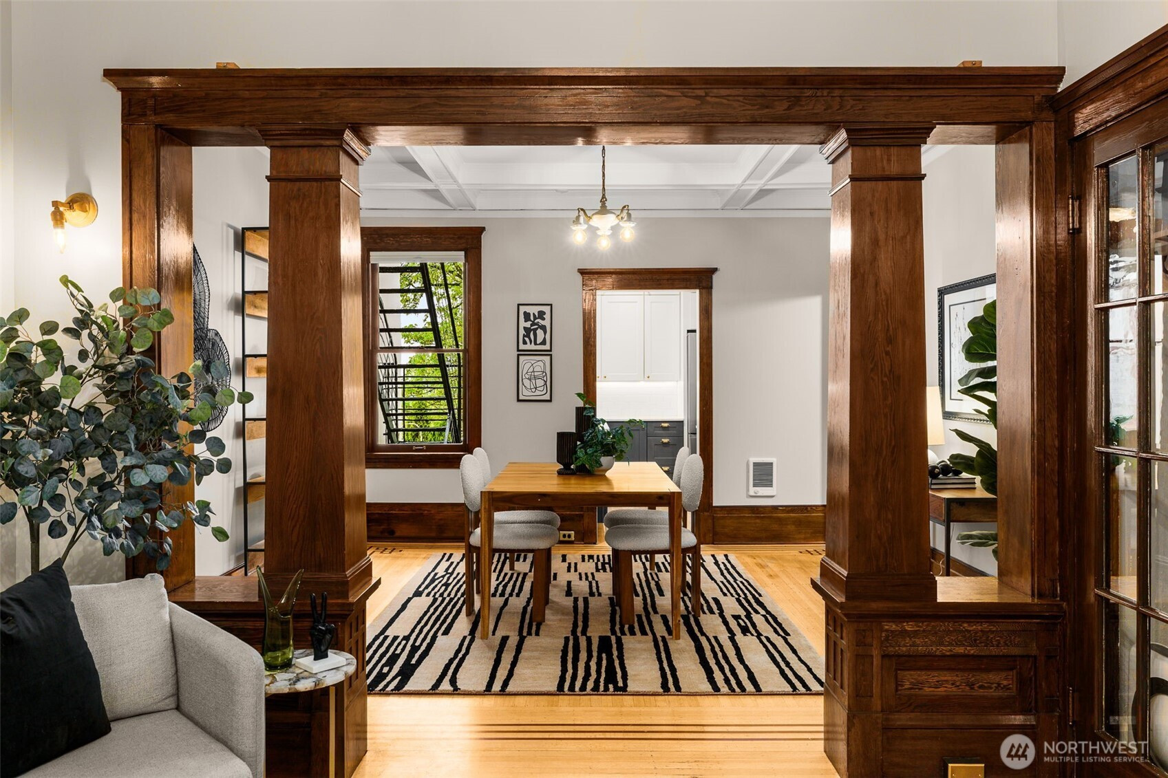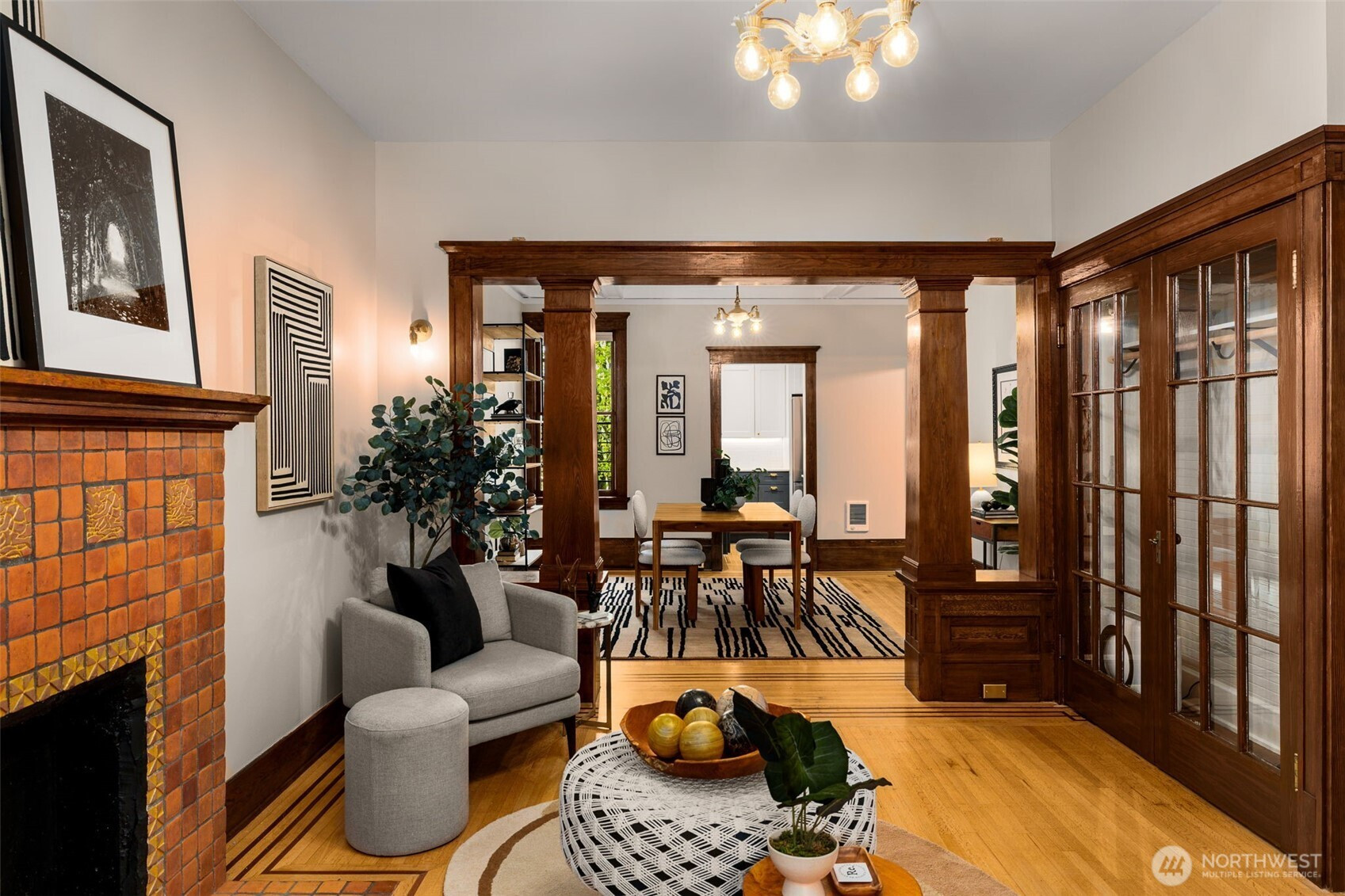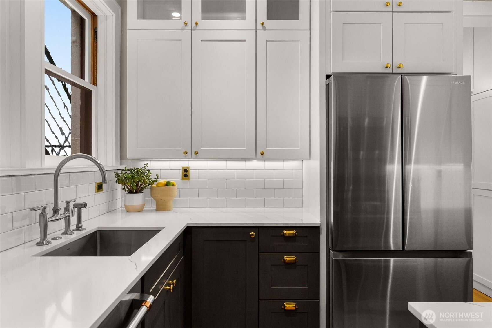 Welcome to the L'Amourita, a striking Seattle Historic Landmark built in 1909 in the Spanish Mission Revival style. The exterior features stucco walls, decorative parapets & a terracotta tiled roof. Inside, unit 2909A has been lovingly restored. Layers of paint were stripped from the trim bring beautiful old-growth millwork back to its original luster. Vintage light fixtures & hardware preserved, mahogany inlaid hardwood floors refinished, & the original windows restored. The kitchen, bathroom & basement have undergone a full renovation (new plumbing, wiring & panel) sensitively blending original details w/ modern amenities. In the kitchen, you’ll find white quartz countertops, push-button replica light switches, tile backsplashes, gas range, & all high-end appliances. The bath offers a deep soaking tub surrounded by subway-tiled walls, elegant brass fixtures & hexagon ceramic tiled floors. The west facing bedroom includes a closet w/ a professional organizing system & windows offering views of Lake Union, Gasworks Park, Queen Anne, & the co-op's inviting courtyard below. This home also features formal living & dining rooms, as well as a lower level w/ a W/D & versatile space perfect for an office &/or media room. Take in sunset views in the back courtyard & gardens. Eastlake restaurants & cafes are blocks away & Capitol Hill, UW, & Downtown just around the corner. Storage, bike & laundry room. Friendly neighbors that welcome cats. Monthly fee's include HOD's + Taxes & Ins!