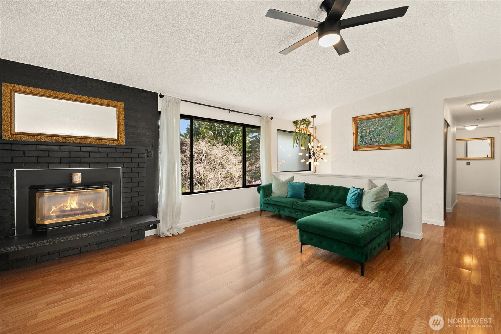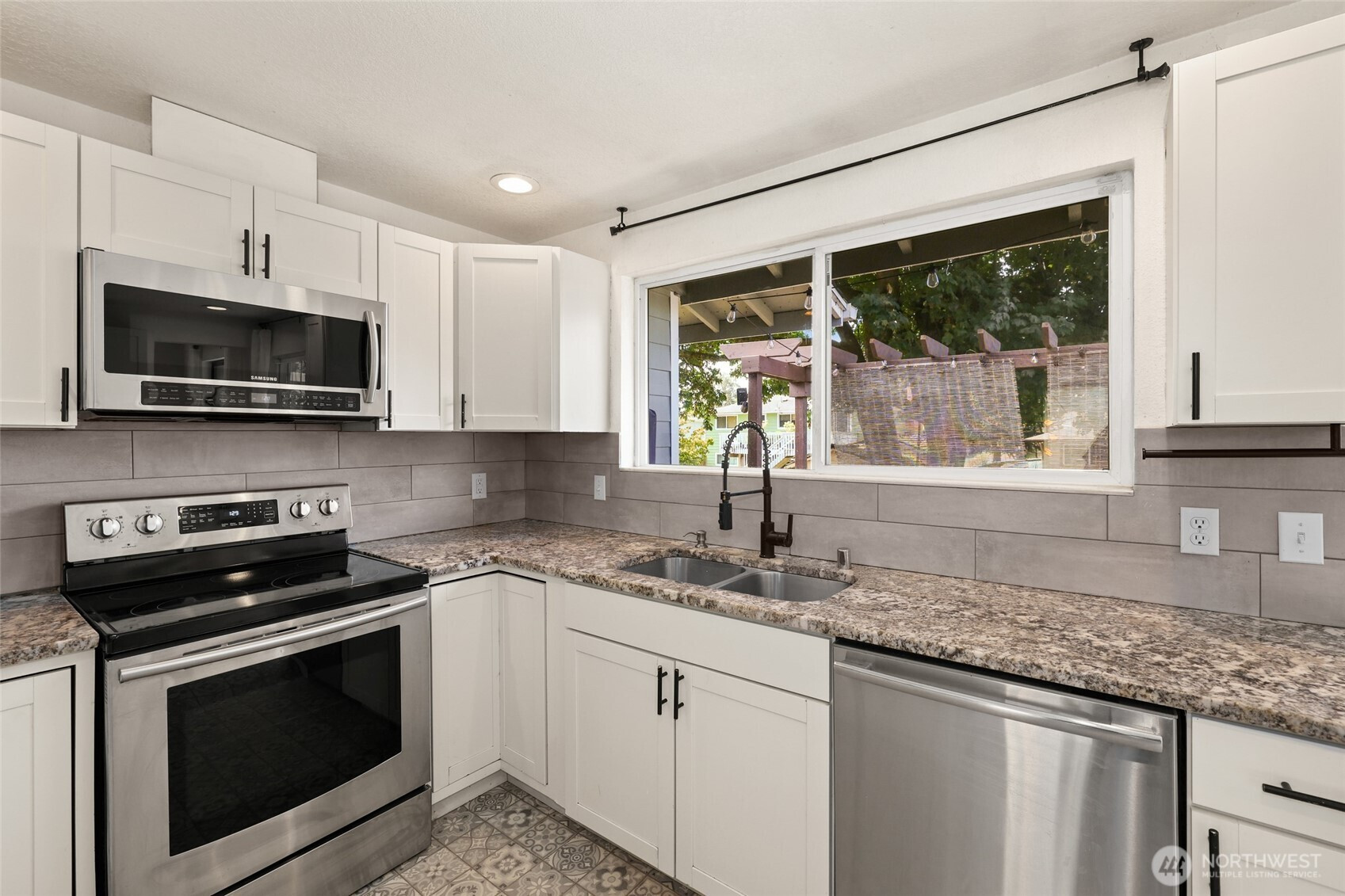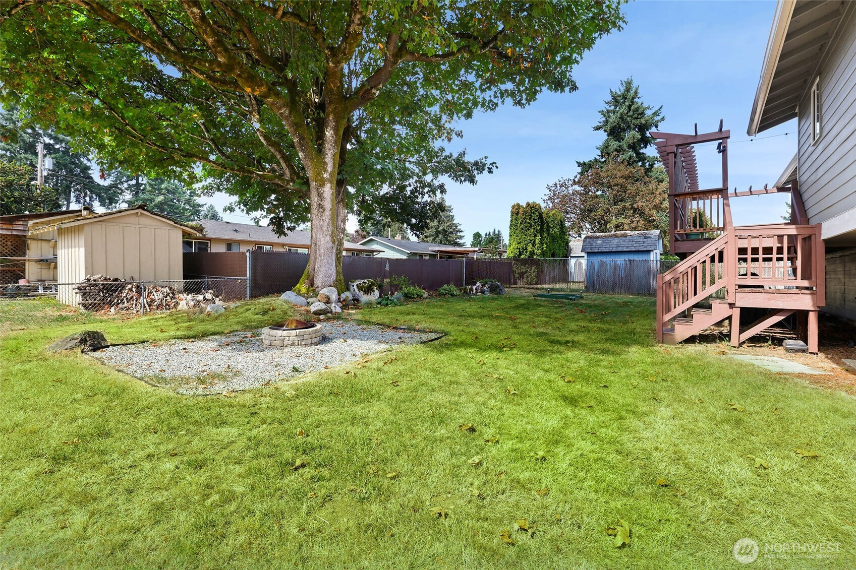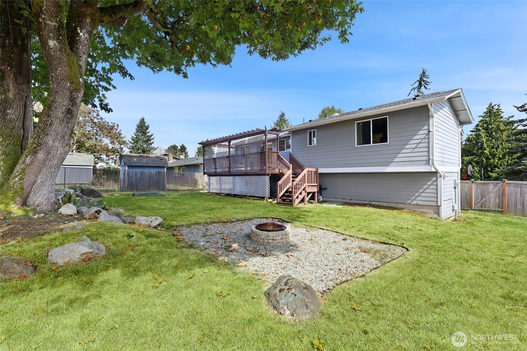 Welcome to this charming split-level home featuring a beautifully remodeled kitchen with granite countertops, white cabinets, and all appliances included. The inviting layout opens to a spacious deck overlooking the fully fenced backyard with a firepit, perfect for entertaining. The primary suite offers a private retreat with an attached bathroom, while two cozy wood-burning fireplaces—one upstairs and one down—add warmth and character. A large driveway with plenty of parking plus a garage provides convenience. Located on wide, tree-lined streets with sidewalks, this home is close to the high school and ideal for commuting. Recent updates include a brand-new furnace this year, ensuring comfort and peace of mind.